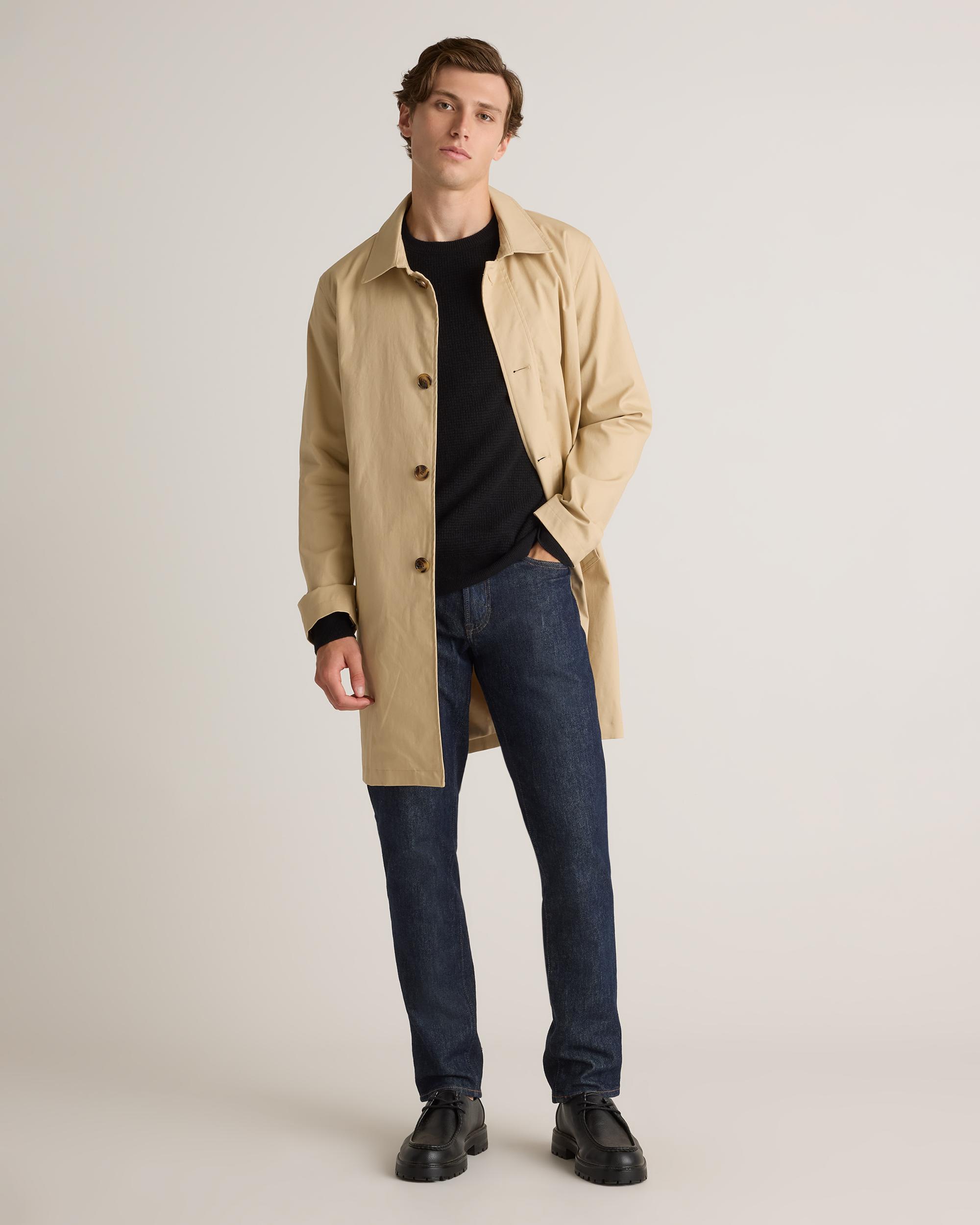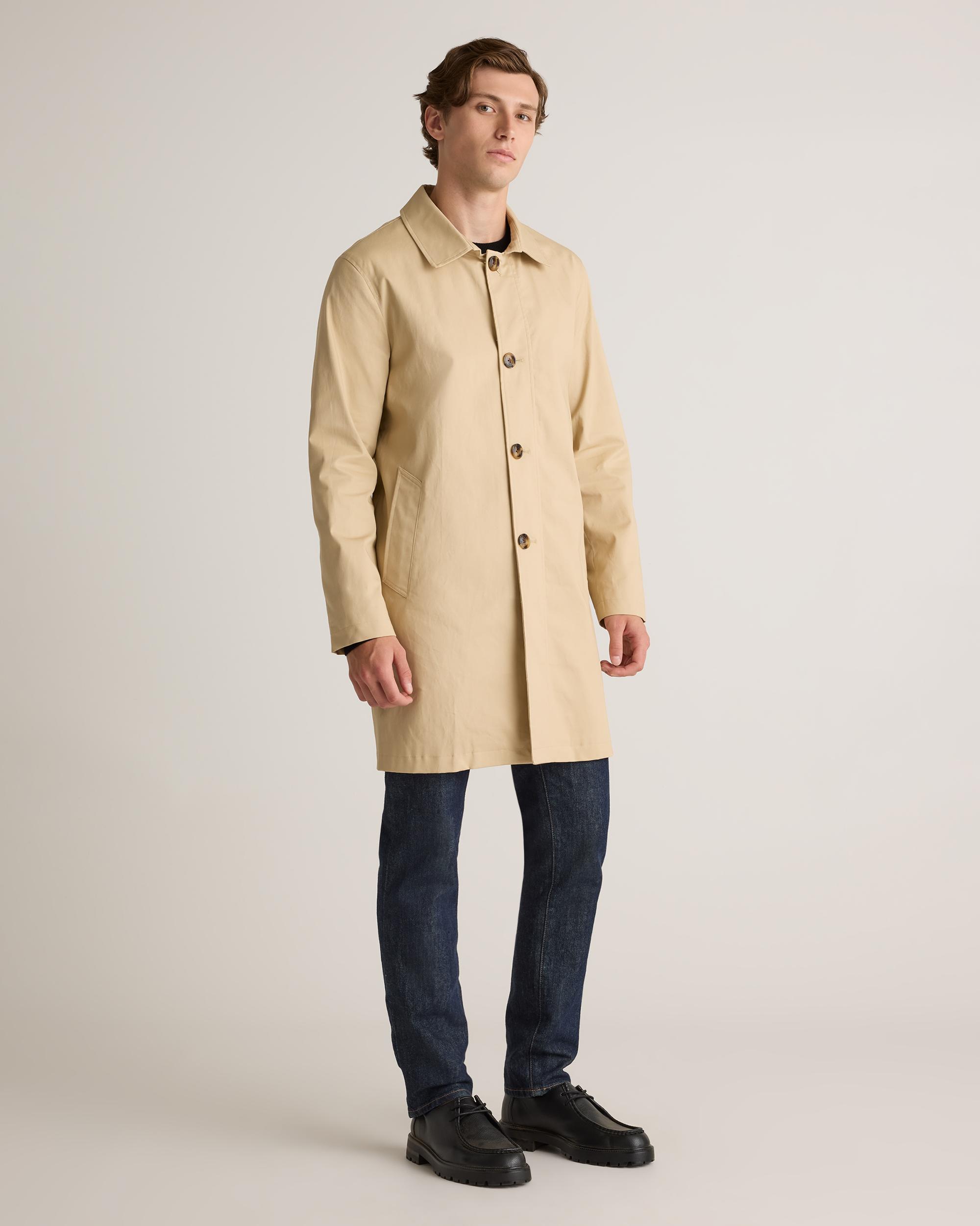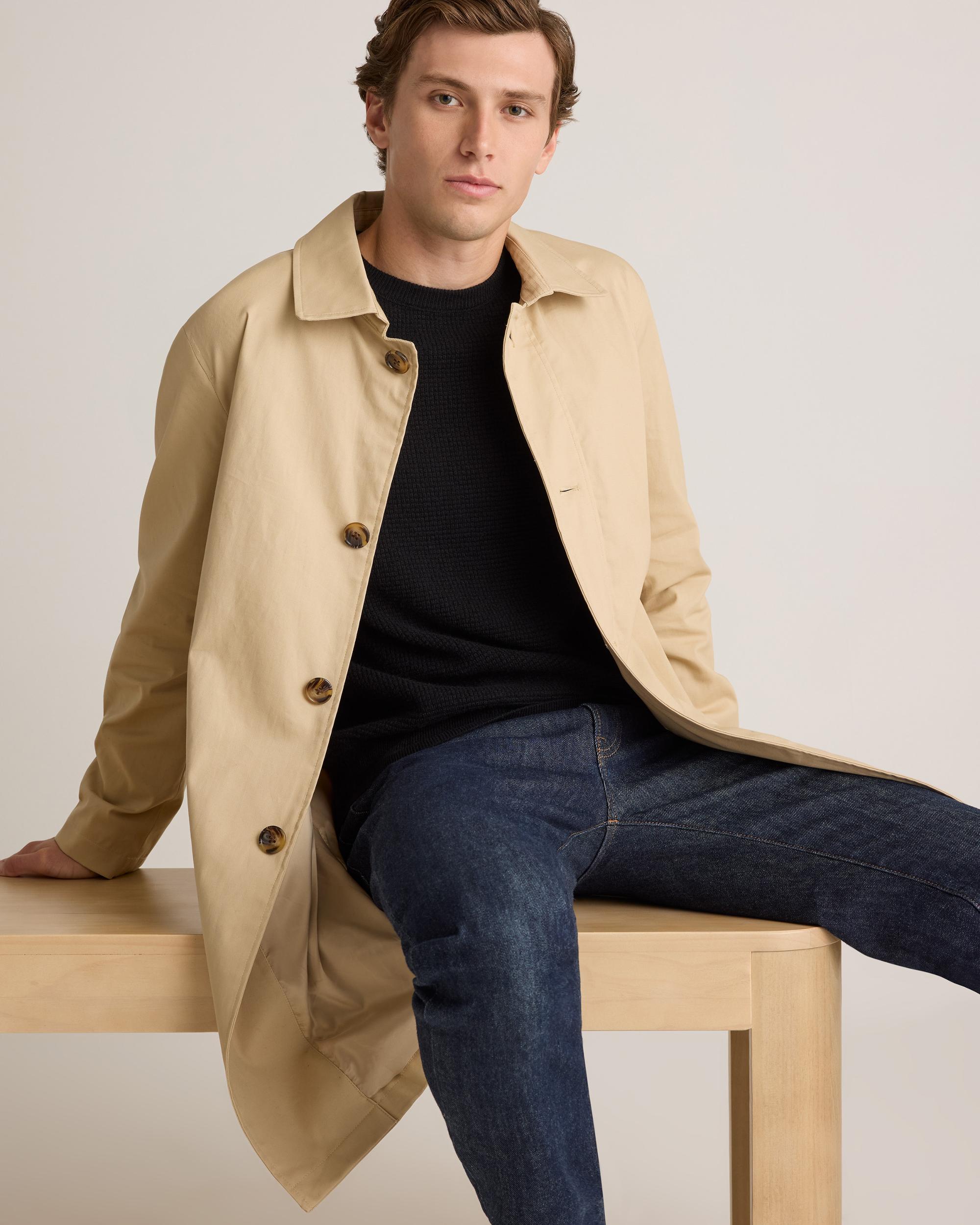 Rain or shine, our Comfort Stretch Trench Coat is your new wardrobe staple. Fashion meets function with the water-resistant finish and stretch fabric, plus, the lightweight lining makes it the perfect transitional layer. It's a timeless piece you'll wear year after year. Prefer a different length? Check out our long version. | Quince | Men's Comfort Stretch Trench Coat in Light Khaki, Size XXL, Organic Cotton