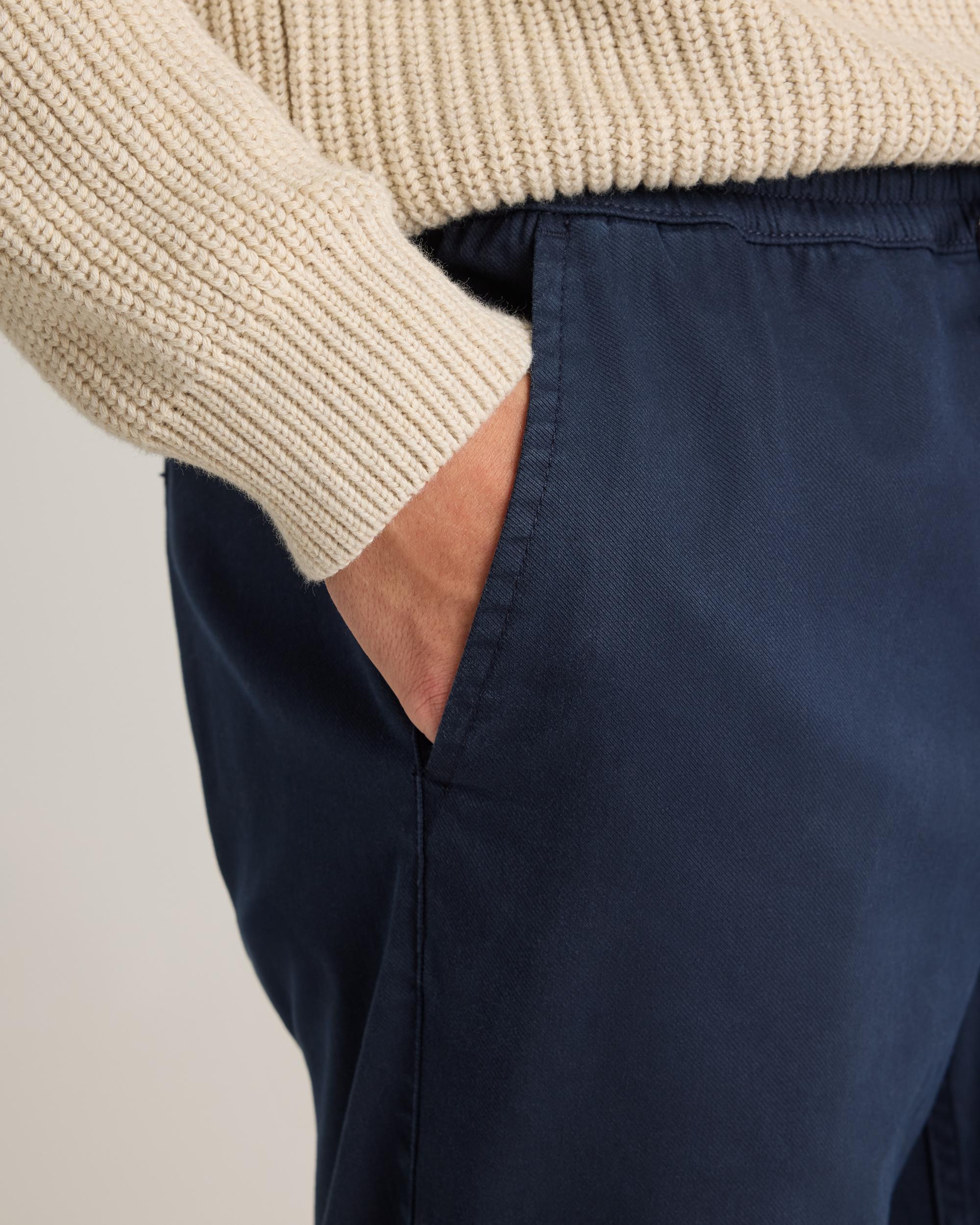 Elevate your casual wardrobe with our Men’s Organic Cotton Drawstring Weekend Chino. Designed for the modern man who appreciates both style and comfort, these slim chinos seamlessly blend classic appeal with contemporary flair. | Quince | Men's Cotton Chino Drawstring Pants in Admiral, Size XXL, Organic Cotton