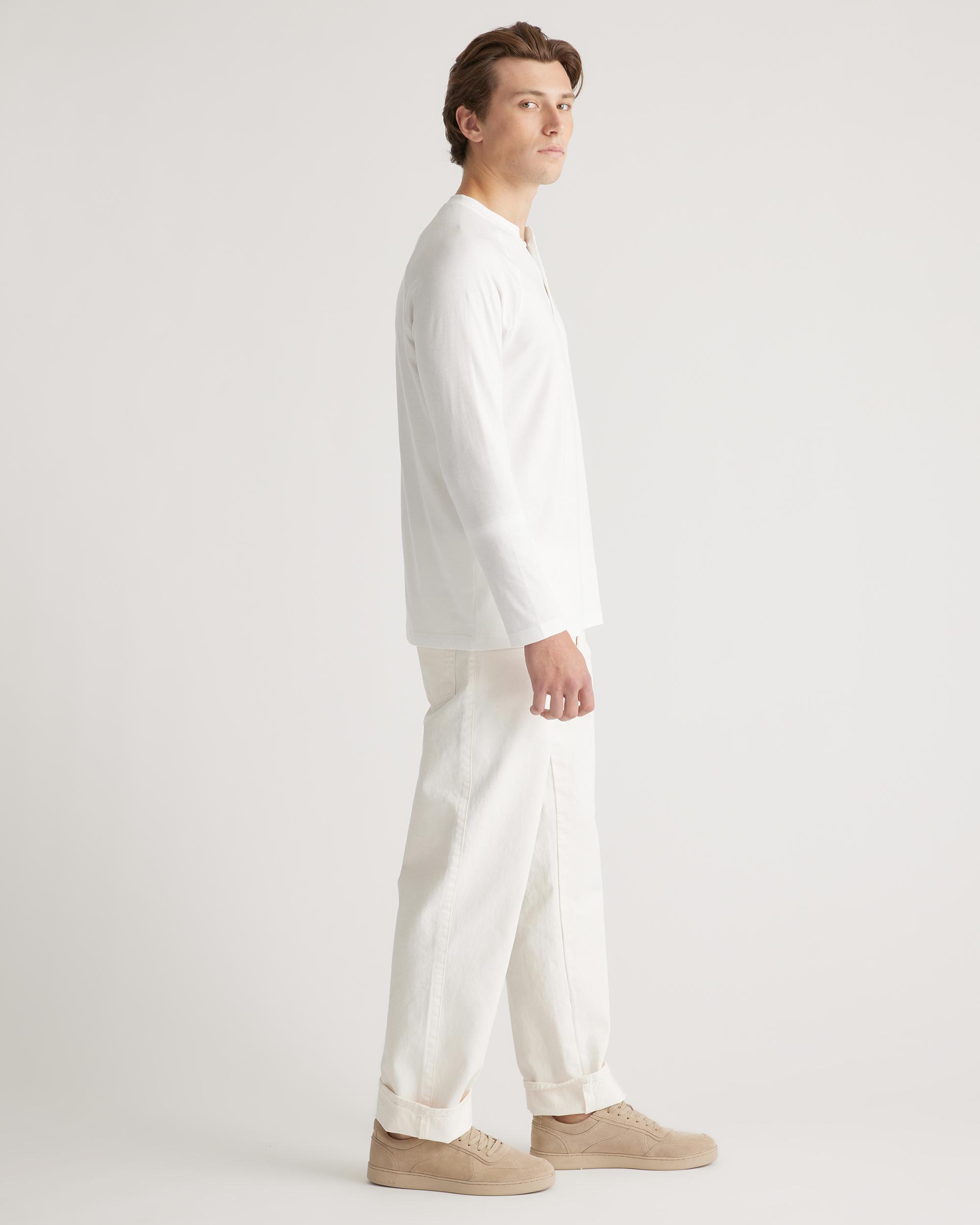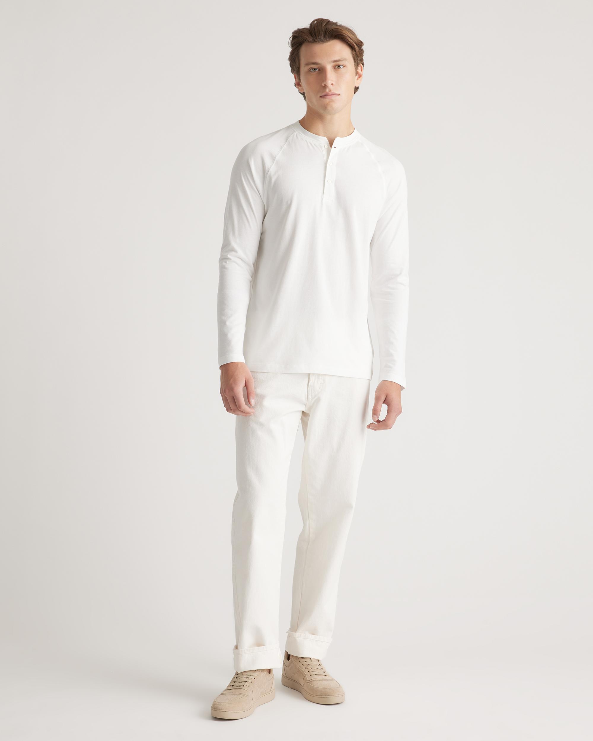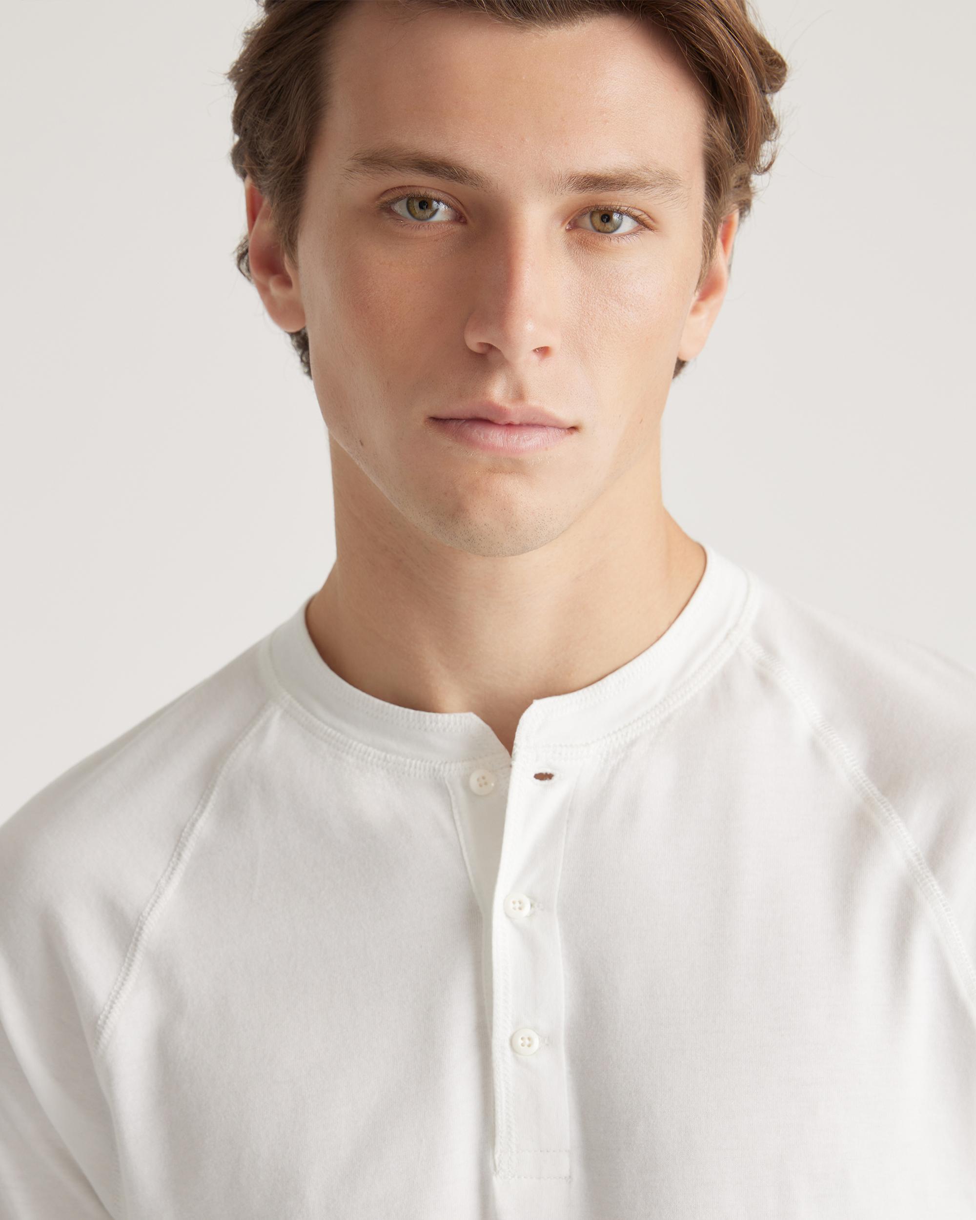 Upgrade your wardrobe basics with our Cotton Modal Long Sleeve Henley Tee. This super-soft blend of cotton and modal is incredibly lightweight and breathable, and the classic henley silhouette makes this shirt perfect on its own or as a base layer. Meet your new favorite elevated wardrobe staple. | Quince | Men's Cotton Modal Long Sleeve Henley T-Shirt in White, Size Medium, Cotton/Modal