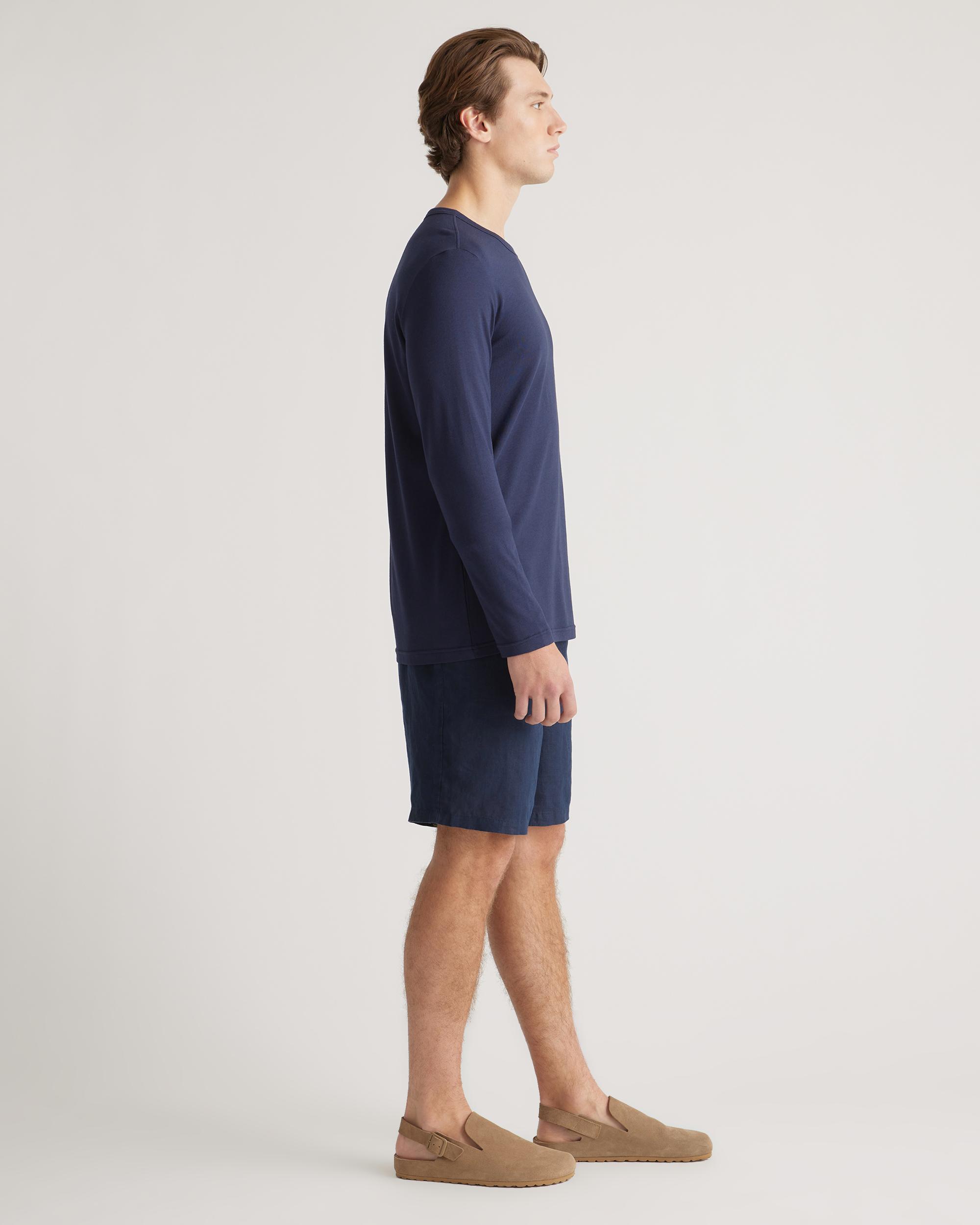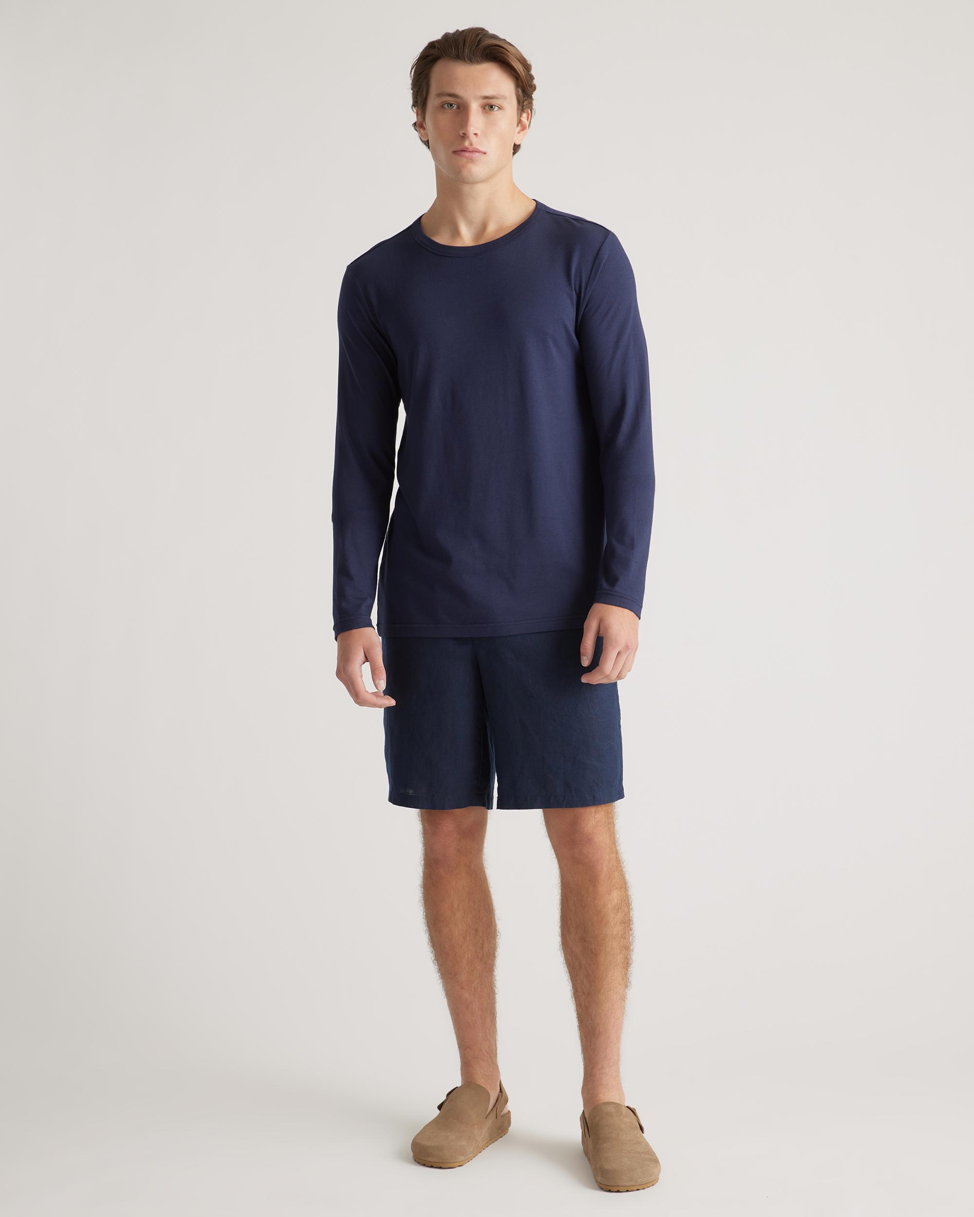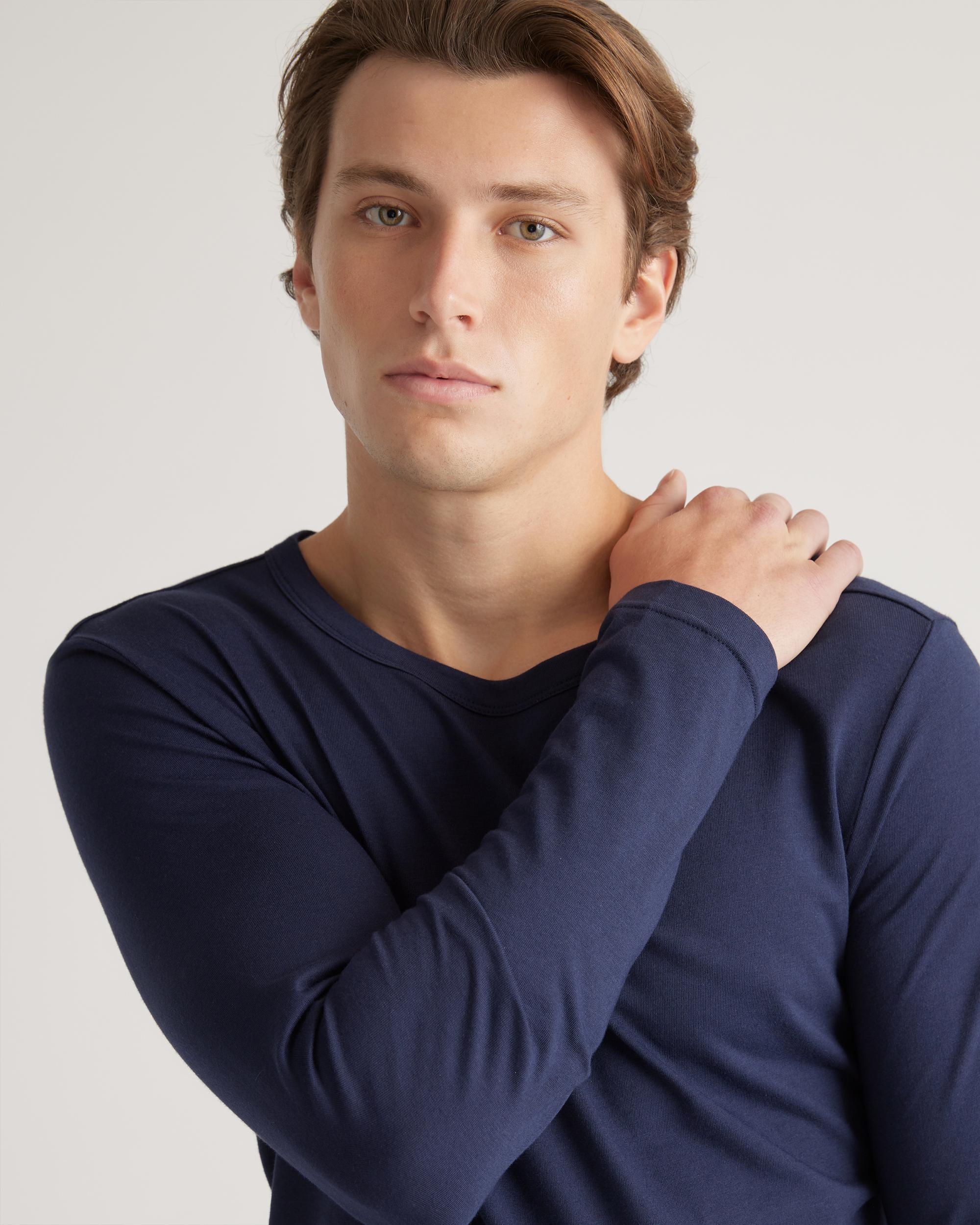 Upgrade your wardrobe basics with our Cotton Modal Long Sleeve Tee. This super-soft blend of cotton and modal is incredibly lightweight and breathable, and the classic long sleeve crewneck silhouette makes this shirt perfect on its own or as a base layer. Meet your new favorite elevated wardrobe staple. | Quince | Men's Cotton Modal Long Sleeve T-Shirt in Navy, Size Medium, Cotton/Modal