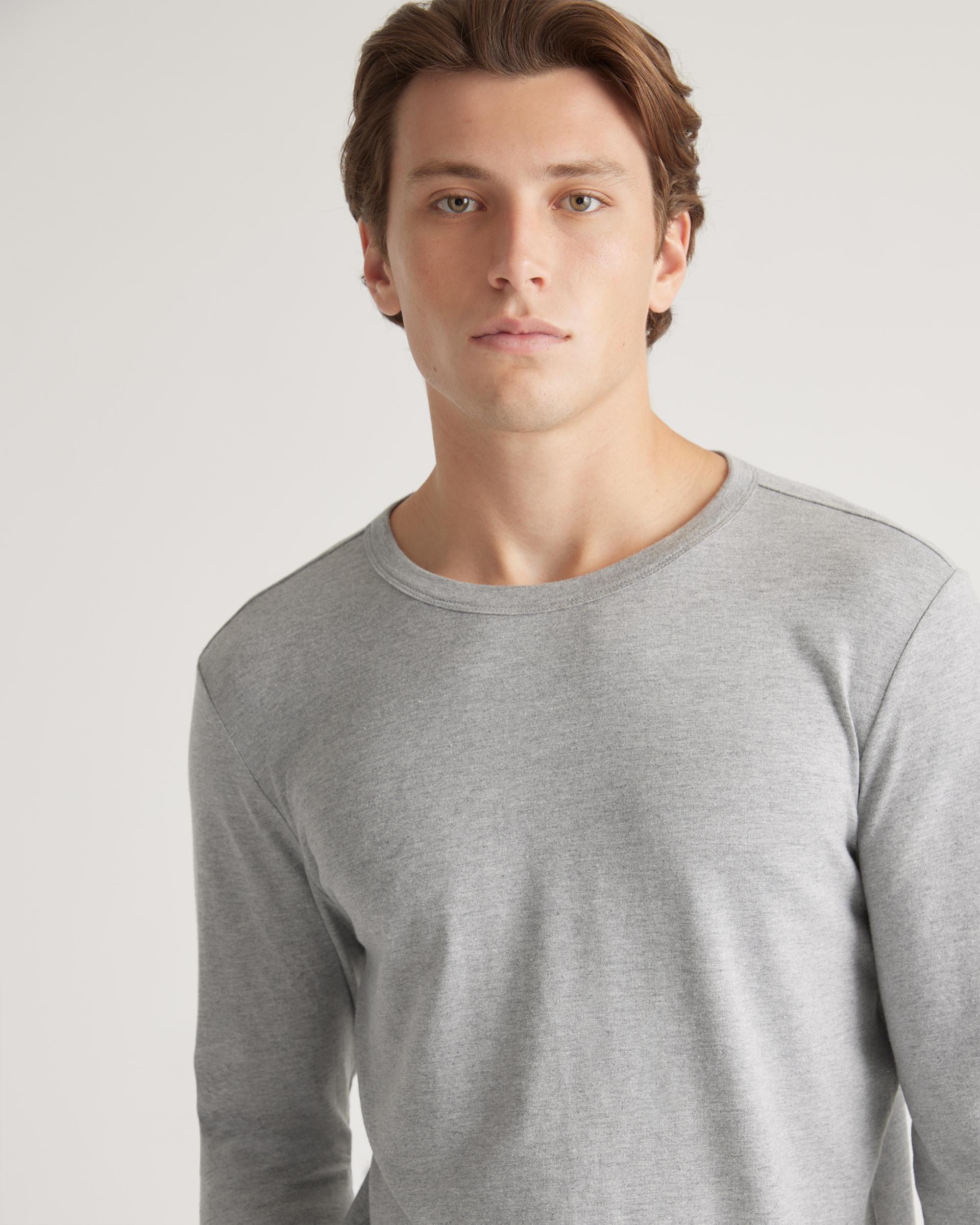 Upgrade your wardrobe basics with our Cotton Modal Long Sleeve Tee. This super-soft blend of cotton and modal is incredibly lightweight and breathable, and the classic long sleeve crewneck silhouette makes this shirt perfect on its own or as a base layer. Meet your new favorite elevated wardrobe staple. | Quince | Men's Cotton Modal Long Sleeve T-Shirt in Heather Grey, Size Medium, Cotton/Modal
