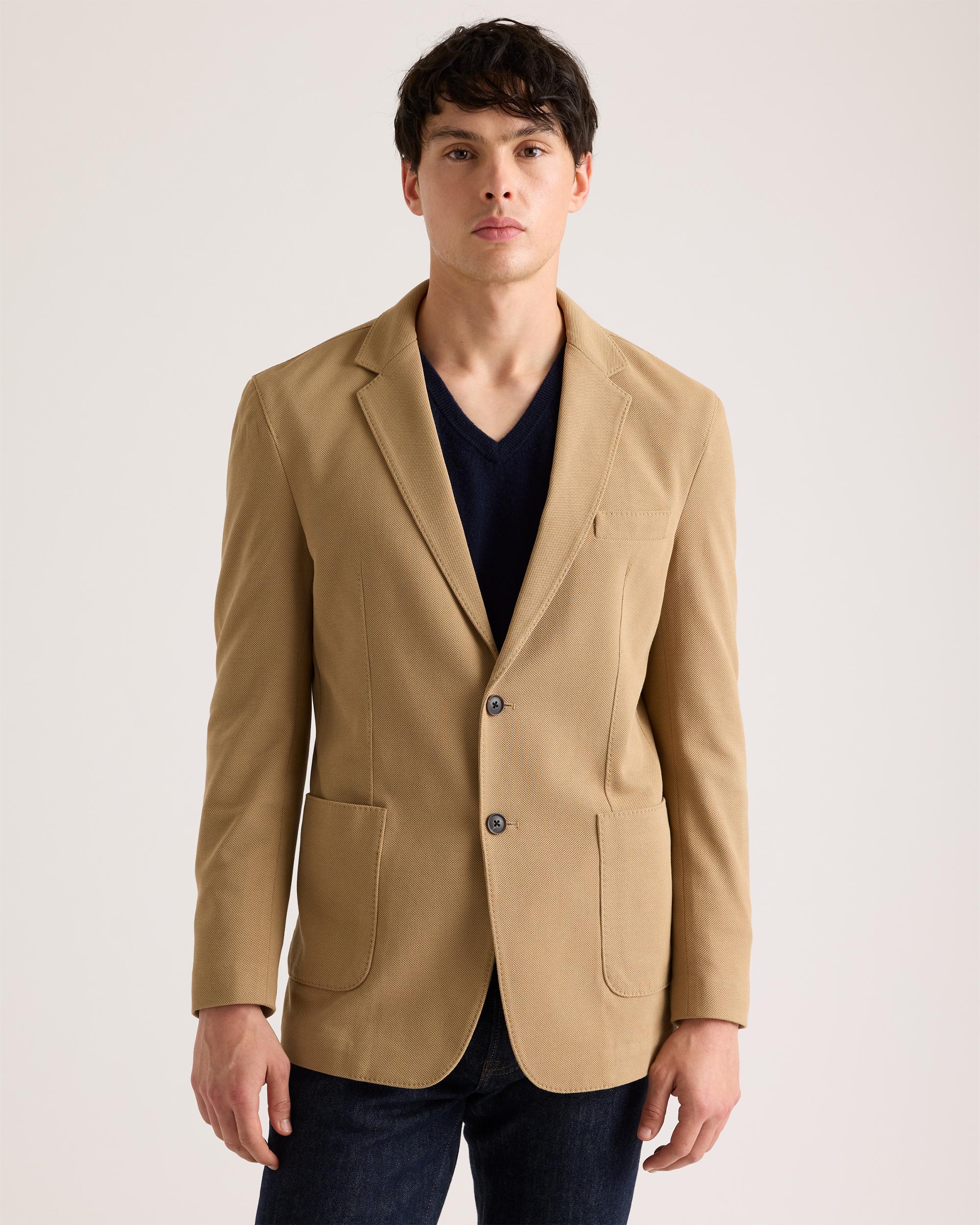 The coziness of a lightweight cardigan with the structure of a blazer, our Cotton Pique Knit Blazer has the best of both worlds. Crafted from premium organic cotton, this elevated essential is both lightweight and breathable. Wear it with jeans and a T-shirt, shorts and a polo, or your favorite slacks — it’s the layer your closet has been missing. | Quince | Men's Cotton Pique Knit Blazer in Baywood, Size Large, Organic Cotton