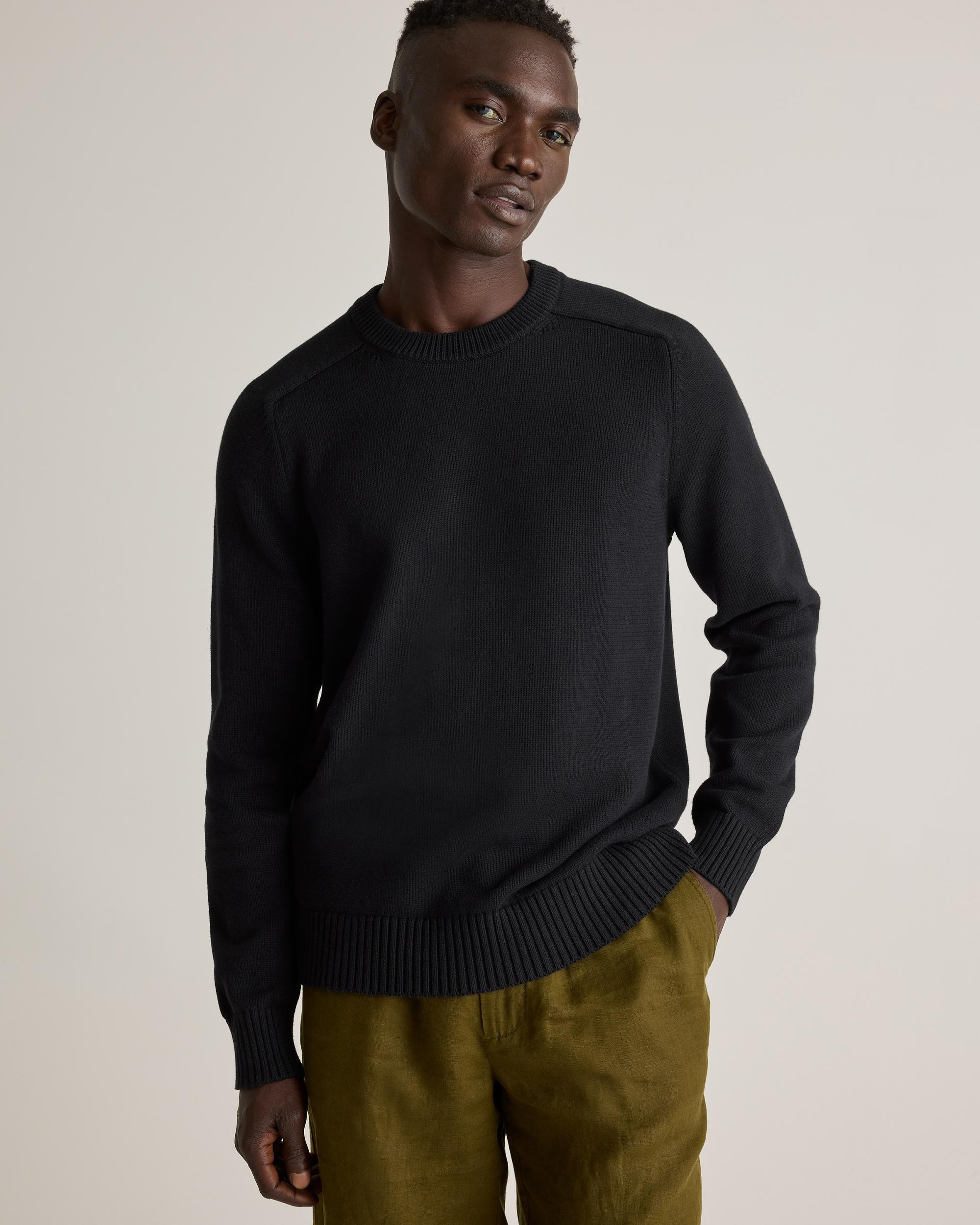 Our 100% Organic Cotton Crewneck Sweater is a classic addition to your everyday rotation. Crafted with care in super-soft organic cotton, this elevated wardrobe essential offers a perfect blend of modern style and timeless design. With a classic fit and ribbed detailing, it's a must-have for your sweater collection. | Quince | Men's Crewneck Sweater in Black, Size XXL, Organic Cotton
