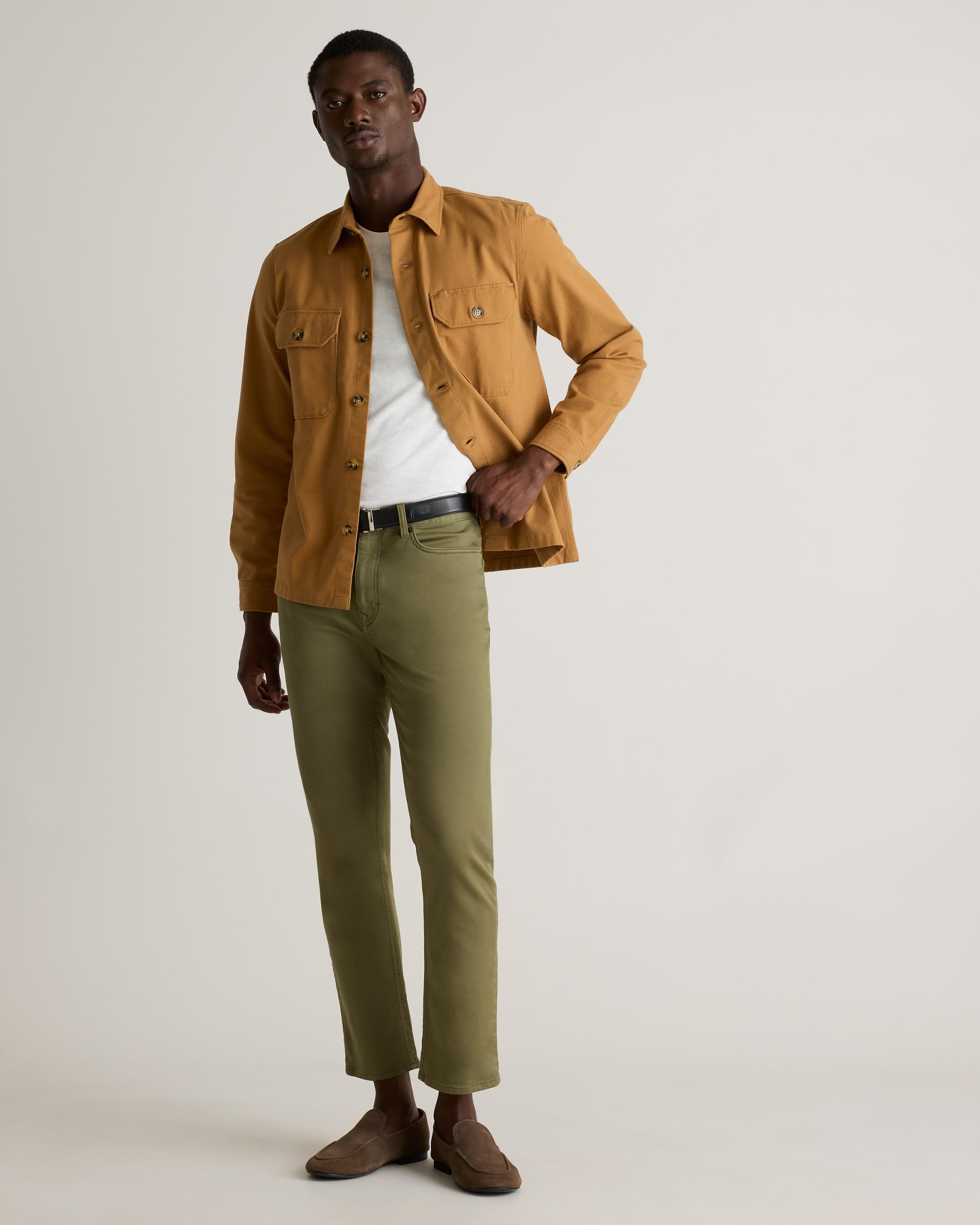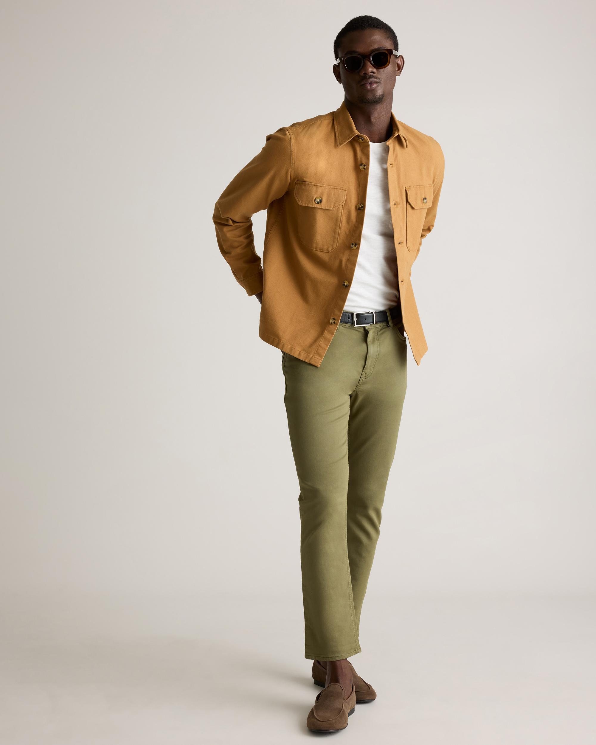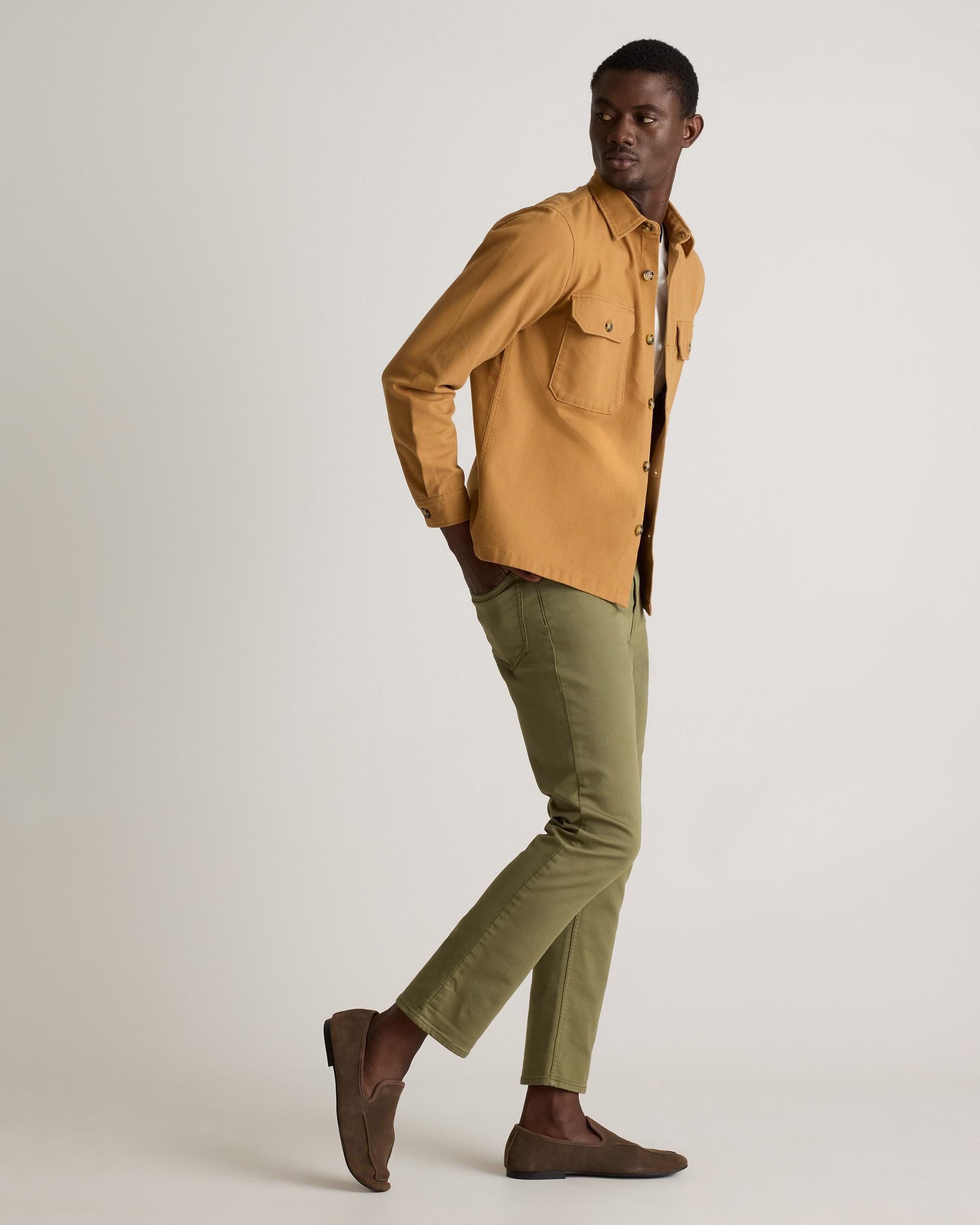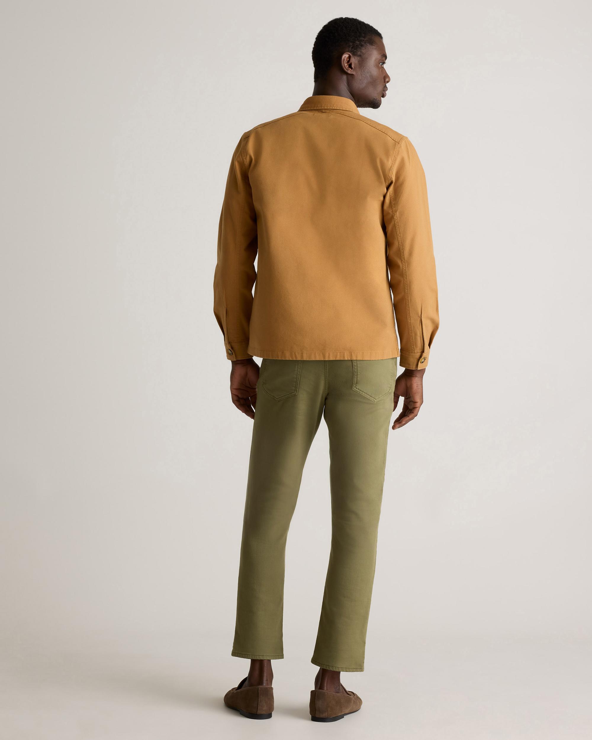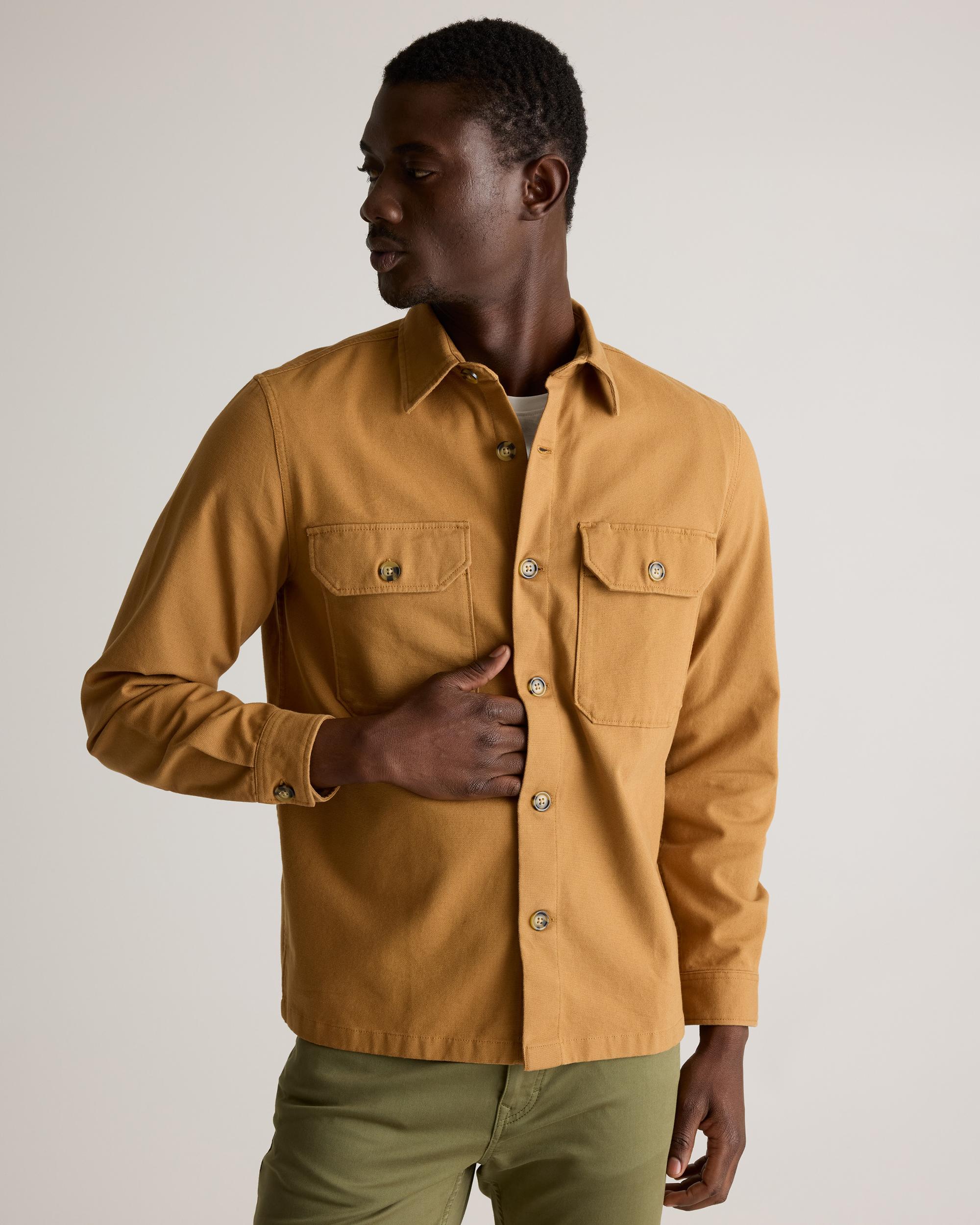 The essential lightweight shirt jacket for transitional weather. Featuring premium stretch cotton canvas that's double-brushed for ultimate comfort. The garment dyed wash is the perfect lived-in look to pair with a t-shirt or over a hoodie. | Quince | Men's Double-Brushed Stretch Overshirt in Camel/Spandex, Size Small, Organic Cotton