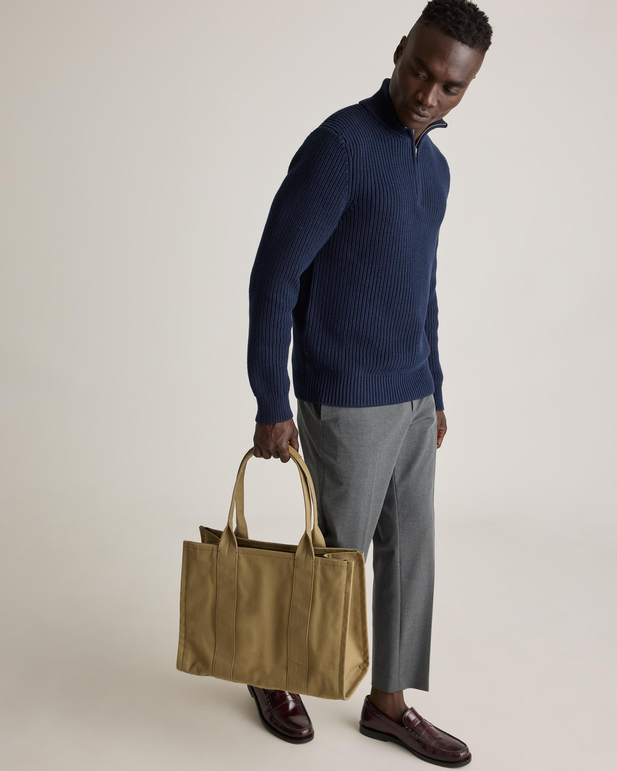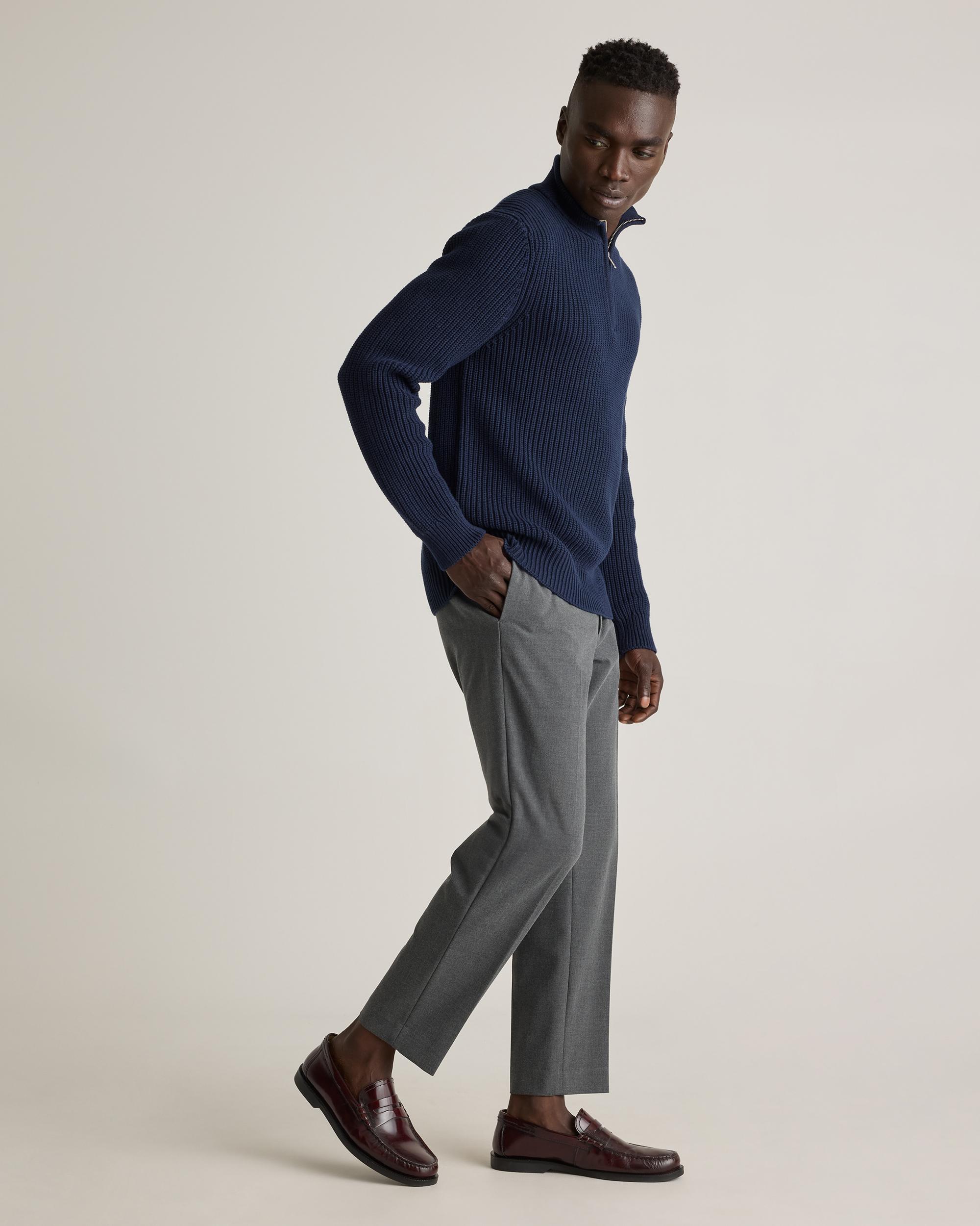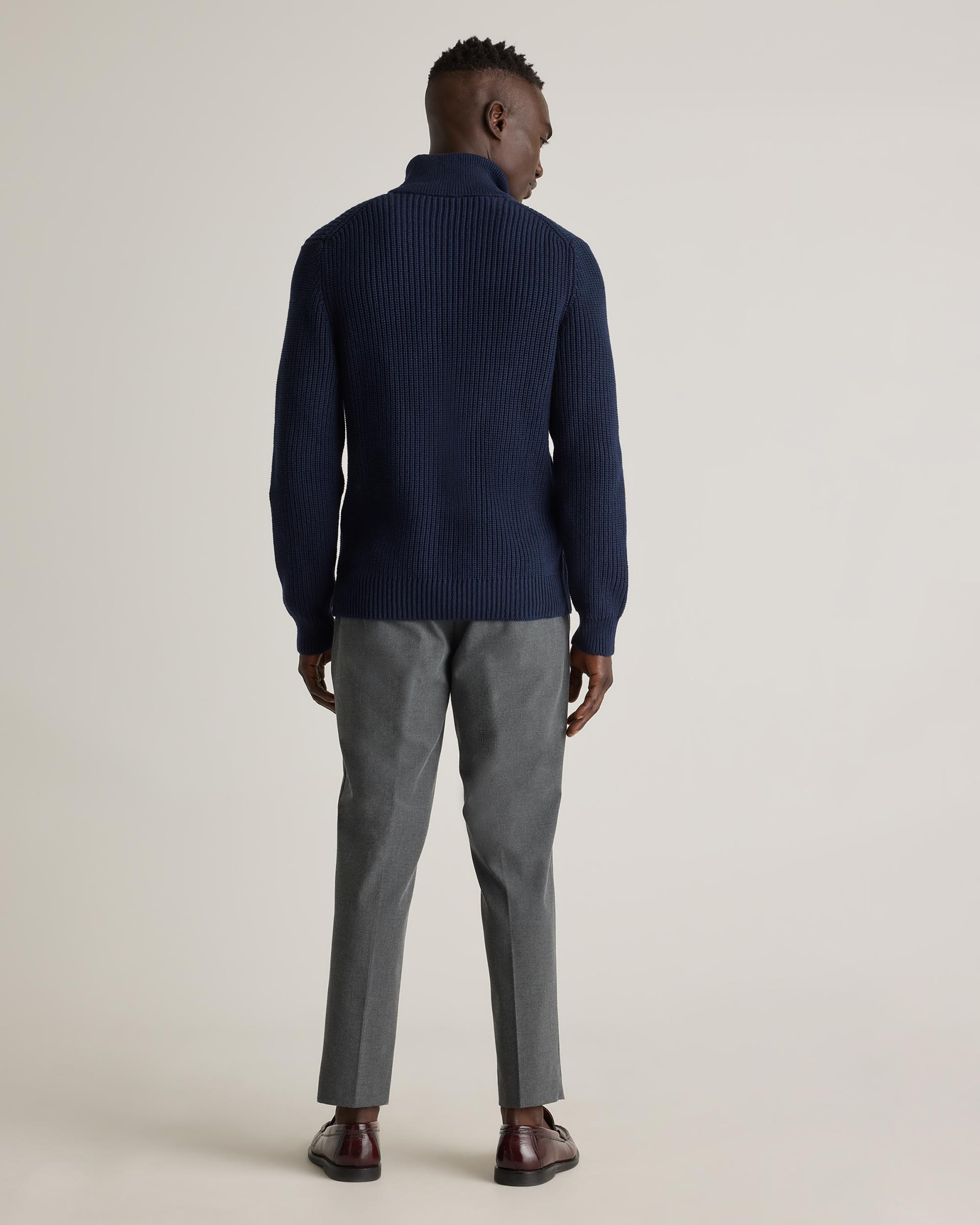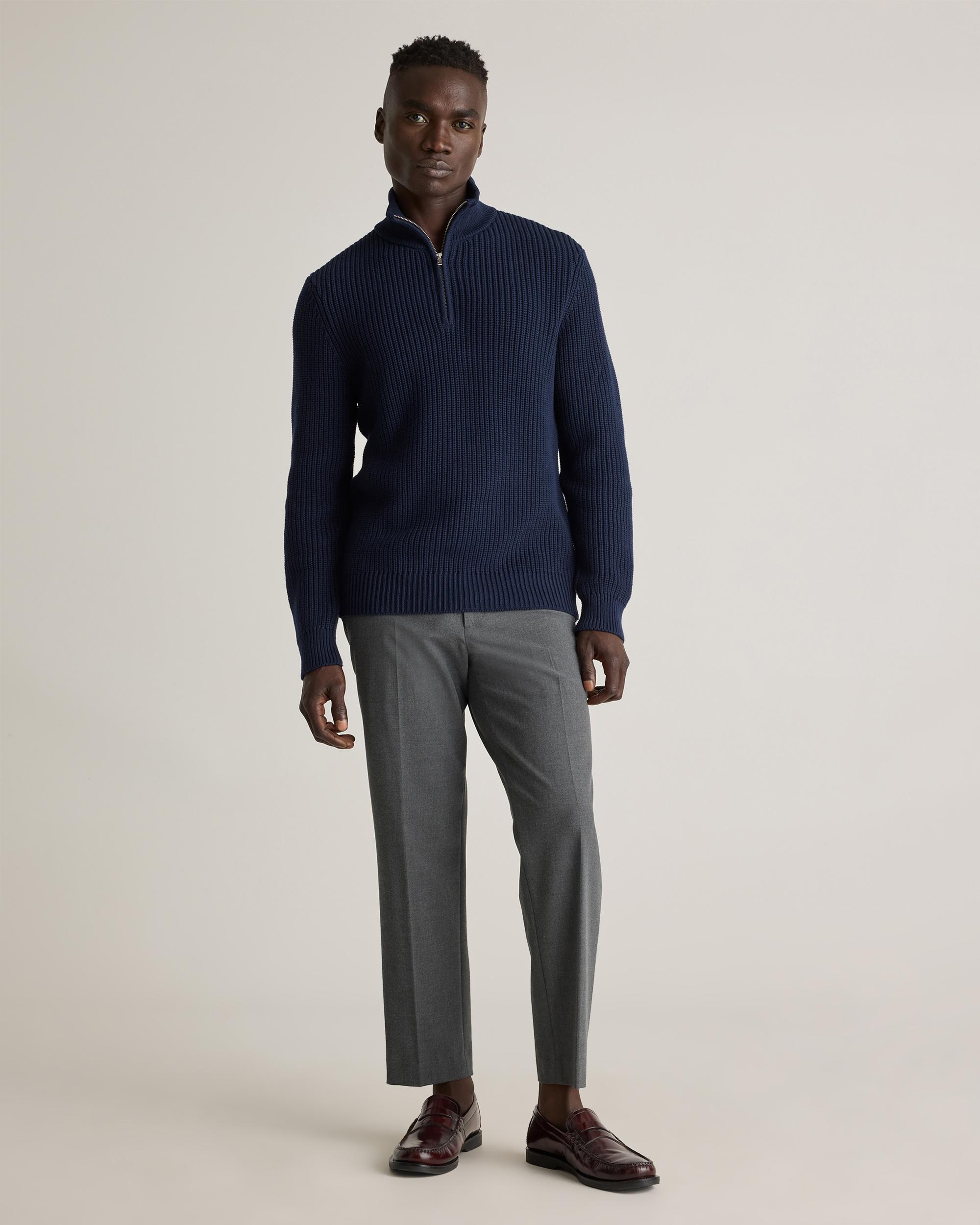 Your favorite 100% Organic Cotton Fisherman Crew Sweater now available as a quarter-zip sweater. Detailed with fisherman rib texture throughout, the sweater features a refined quarter-zip neckline that allows you to customize your look—zip it up for a classic, clean finish or wear it open for a laid-back vibe. Made of 100% organic cotton, it's soft on your skin and provides a cozy yet lightweight feel, perfect for layering or wearing on its own during cooler days. | Quince | Men's Fisherman Quarter-Zip Sweater in Navy, Size XL, Organic Cotton