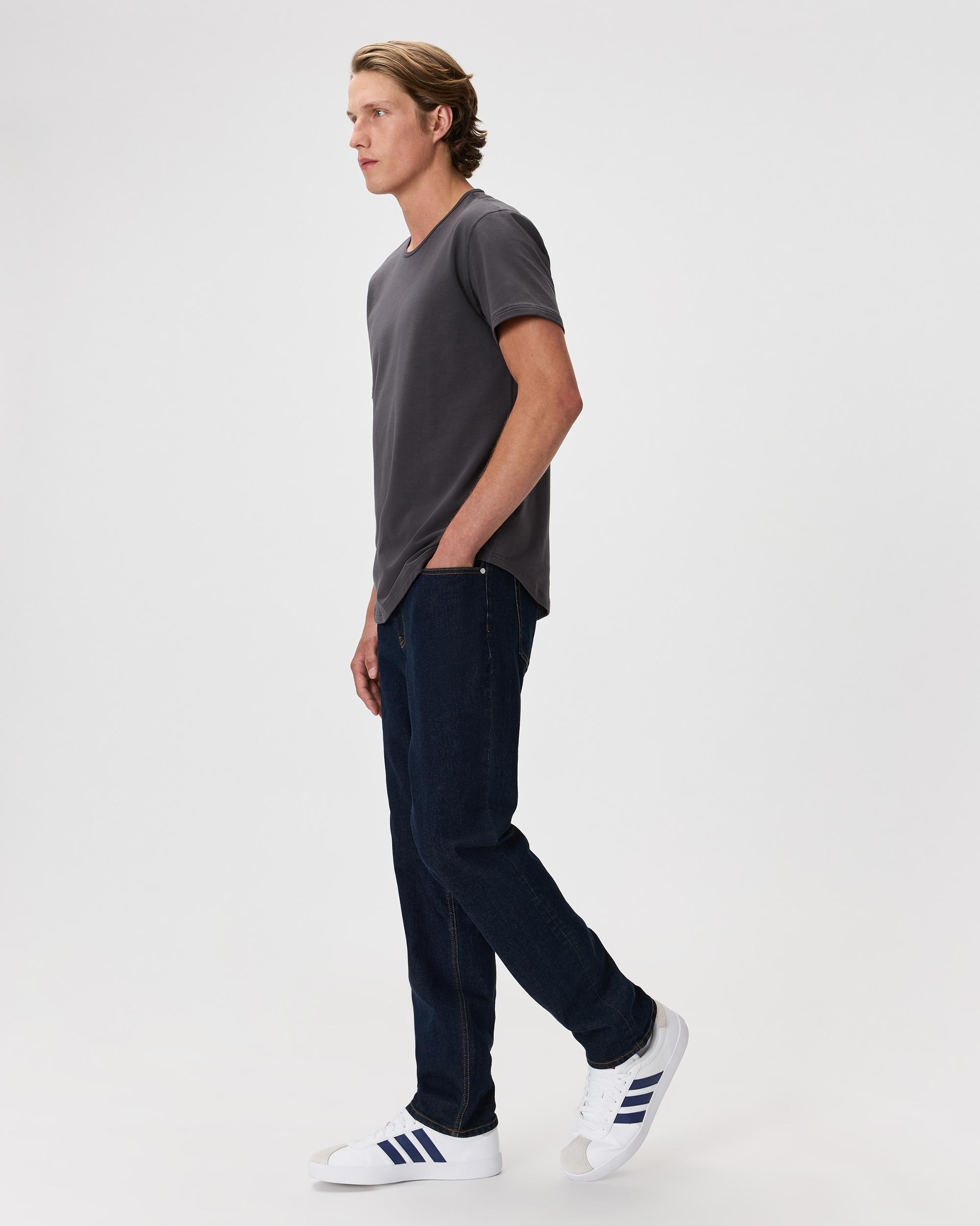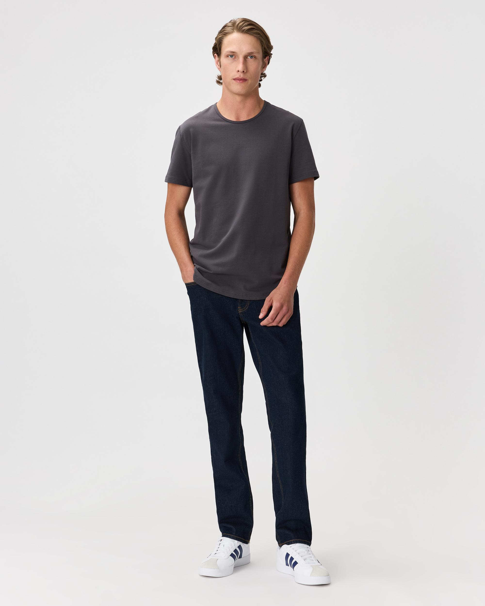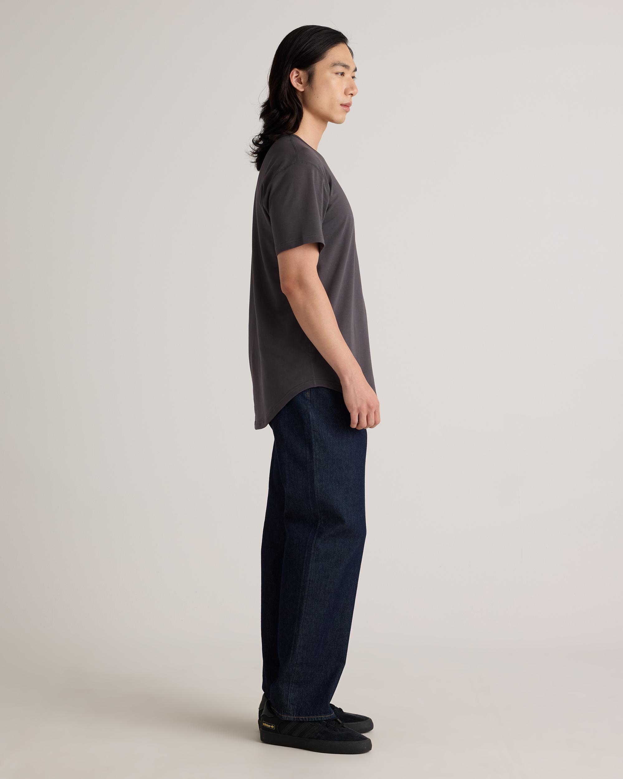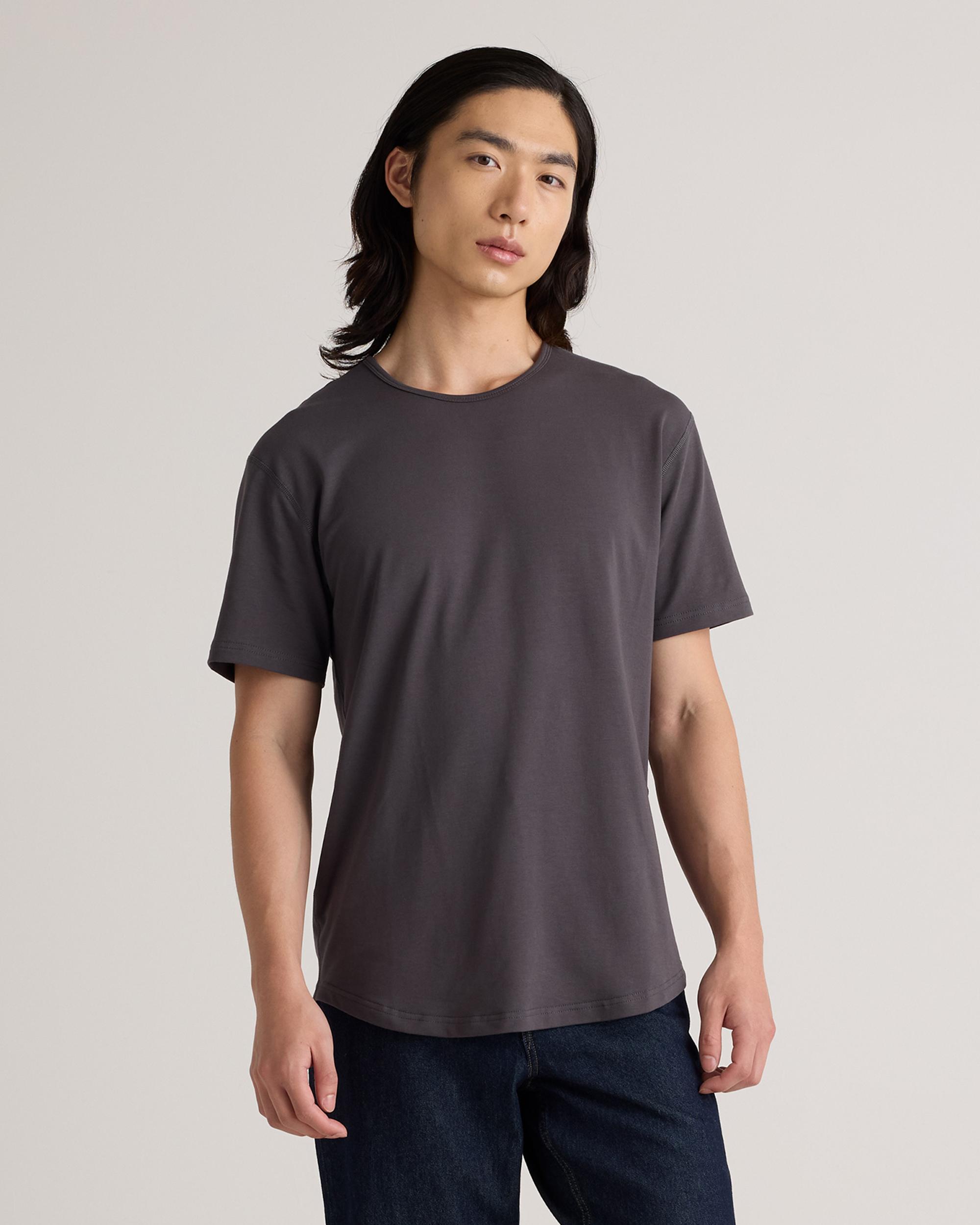 Made with a blend of high-quality sustainable materials, this tee is designed to provide maximum comfort and flexibility. Whether you're hitting the gym, running errands, or just lounging at home, this versatile tee is perfect for any occasion. The classic crewneck design and curved hemline give it a stylish edge, making it easy to pair with your favorite jeans or athletic short. Upgrade your wardrobe with our Flex Curve Crewneck Tee, trust us, you'll need three. | Quince | Men's Flex Curve Crewneck T-Shirt in Dark Coal, Size Large, Organic Cotton