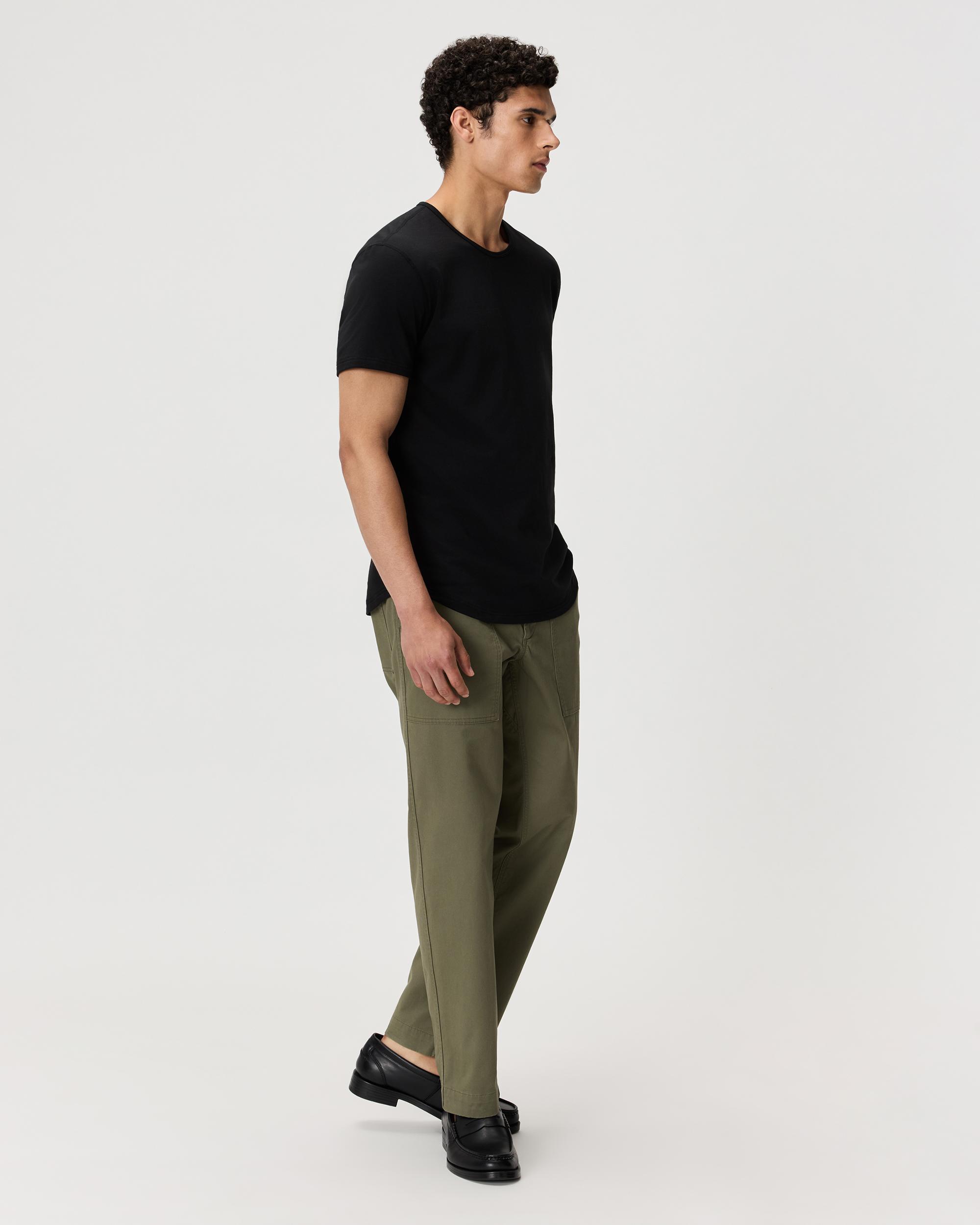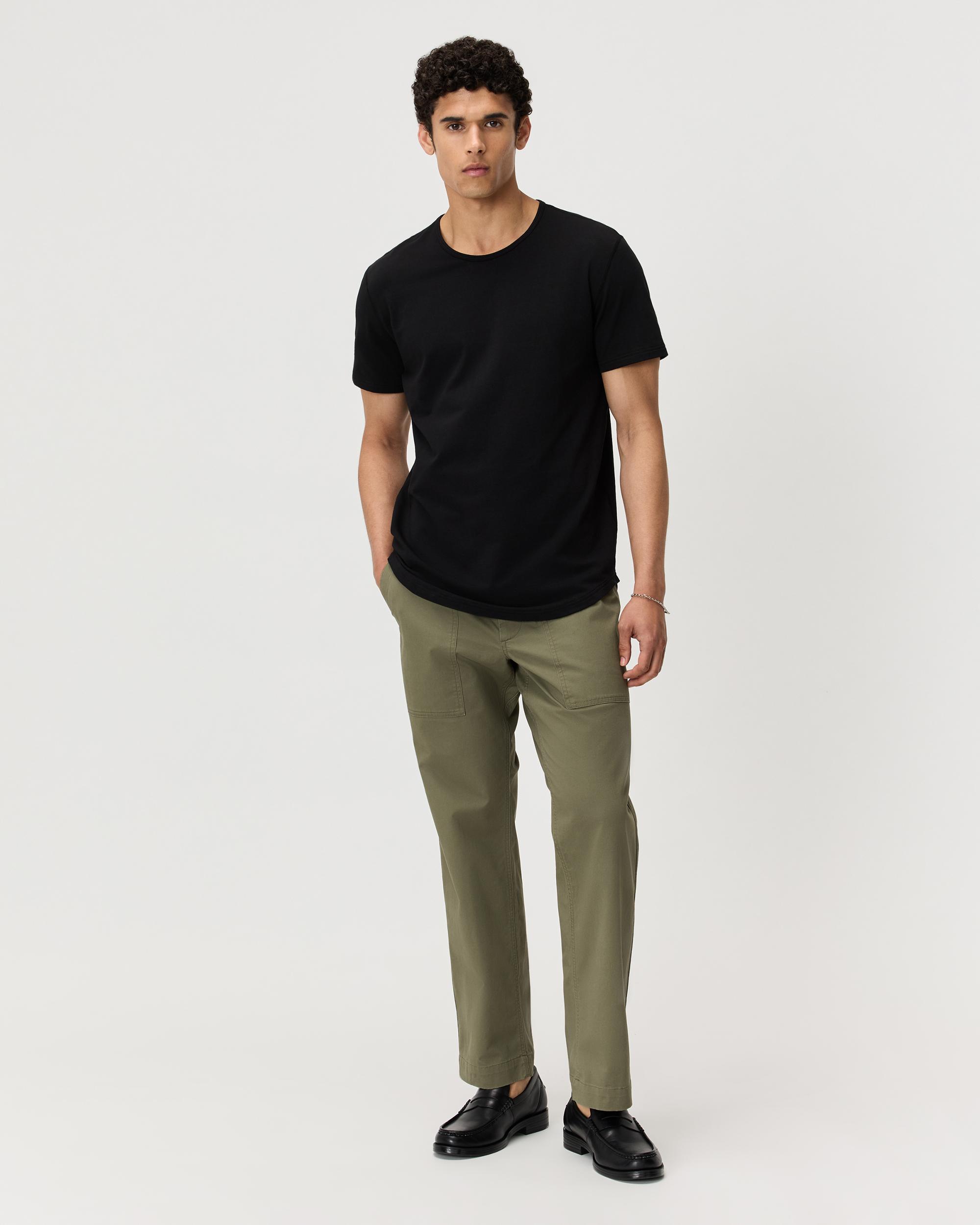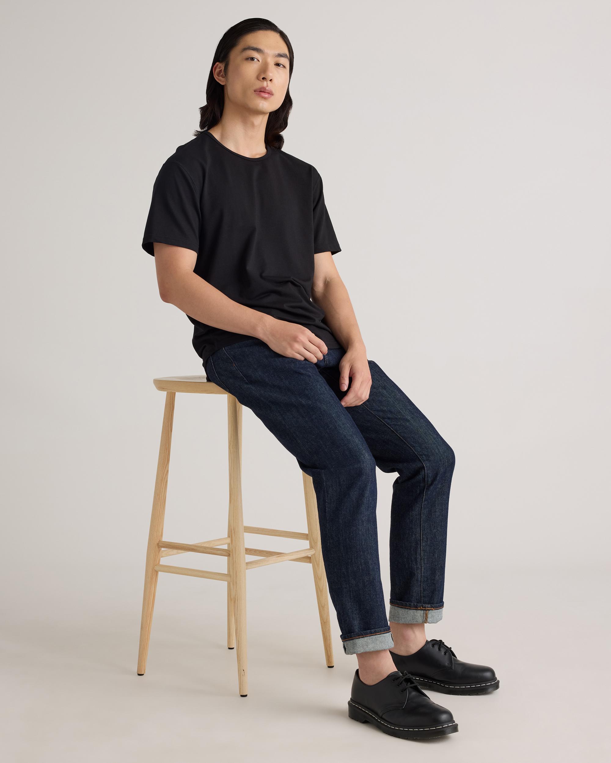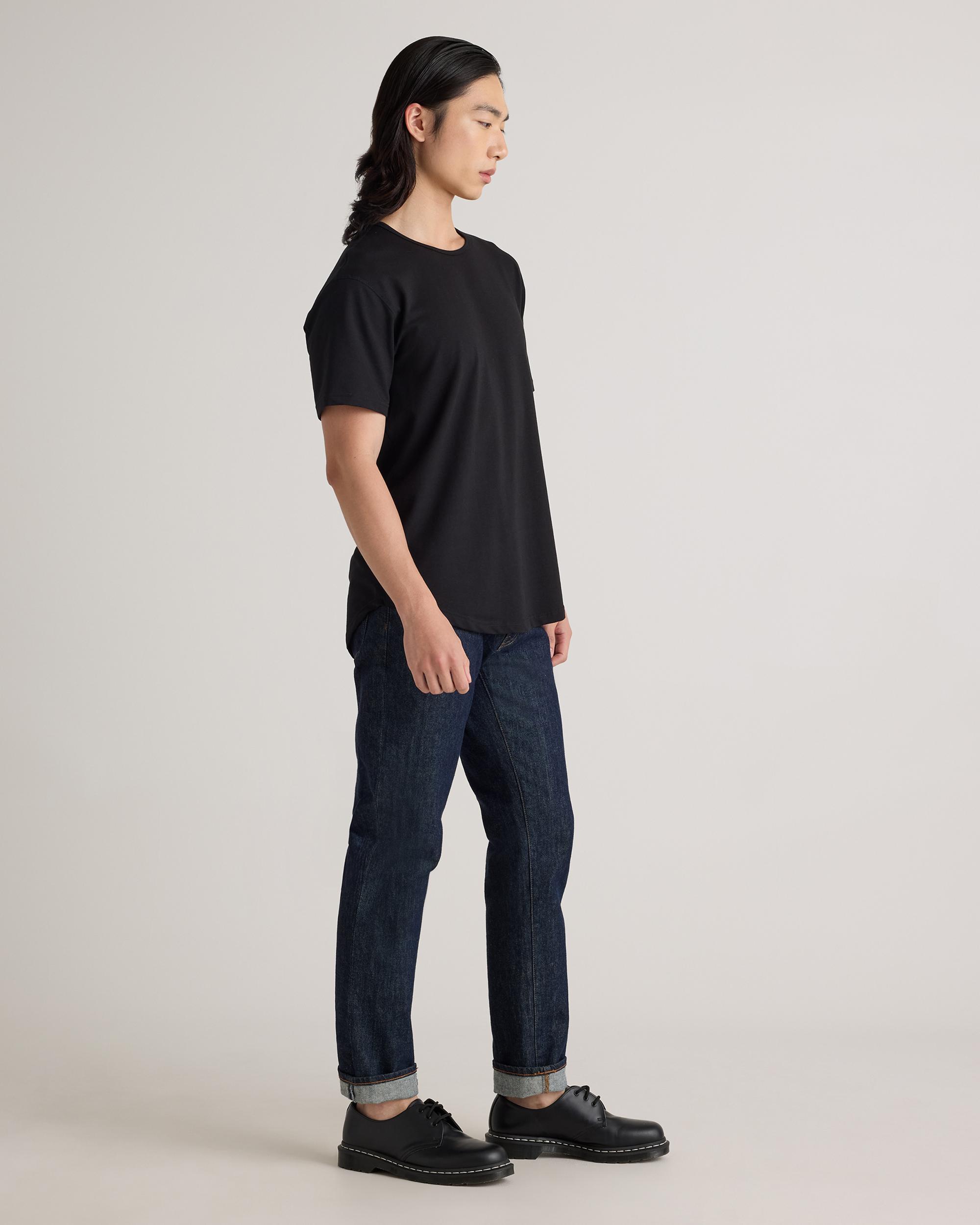 Made with a blend of high-quality sustainable materials, this tee is designed to provide maximum comfort and flexibility. Whether you're hitting the gym, running errands, or just lounging at home, this versatile tee is perfect for any occasion. The classic crewneck design and curved hemline give it a stylish edge, making it easy to pair with your favorite jeans or athletic short. Upgrade your wardrobe with our Flex Curve Crewneck Tee, trust us, you'll need three. | Quince | Men's Flex Curve Crewneck T-Shirt in Black, Size Medium, Organic Cotton