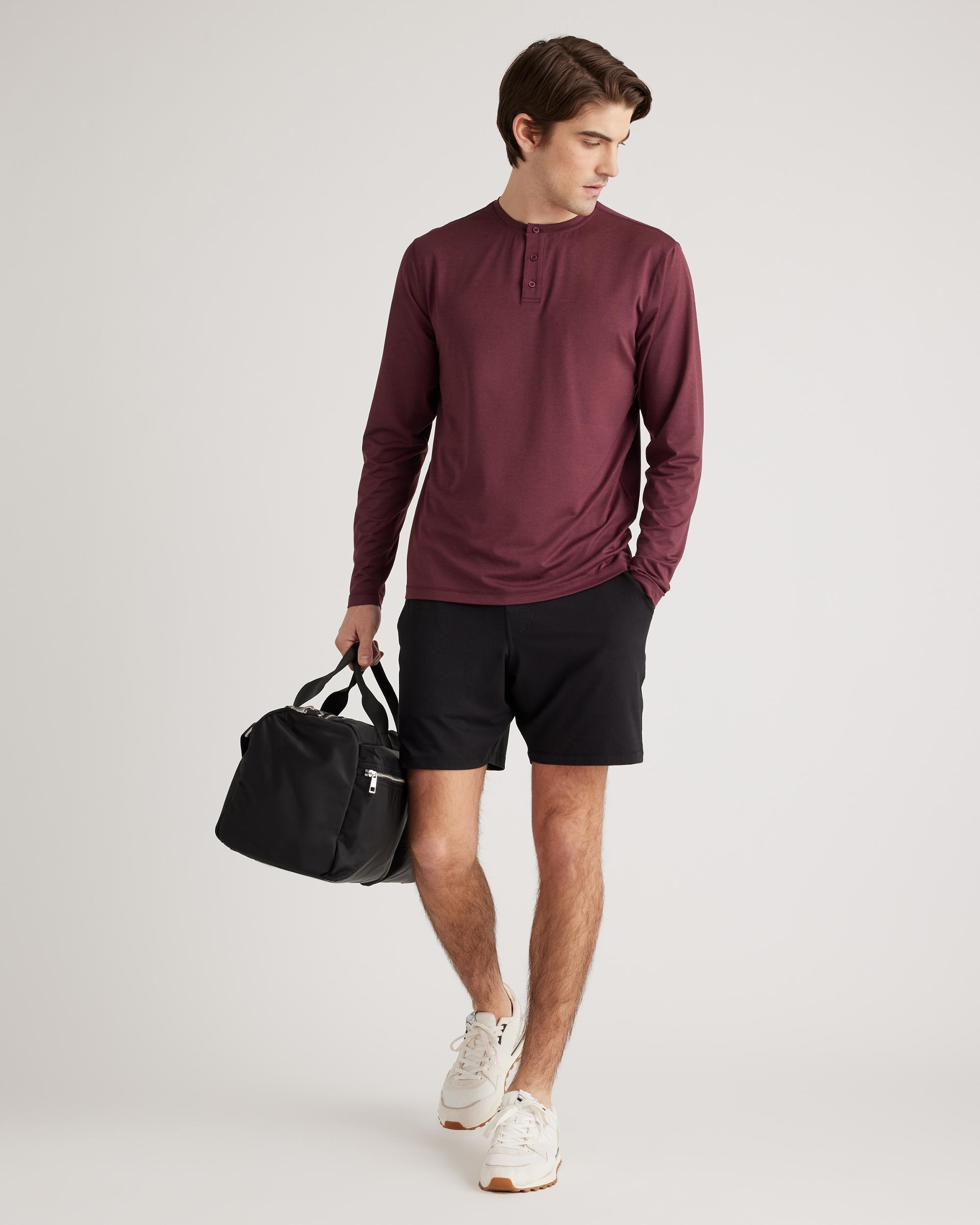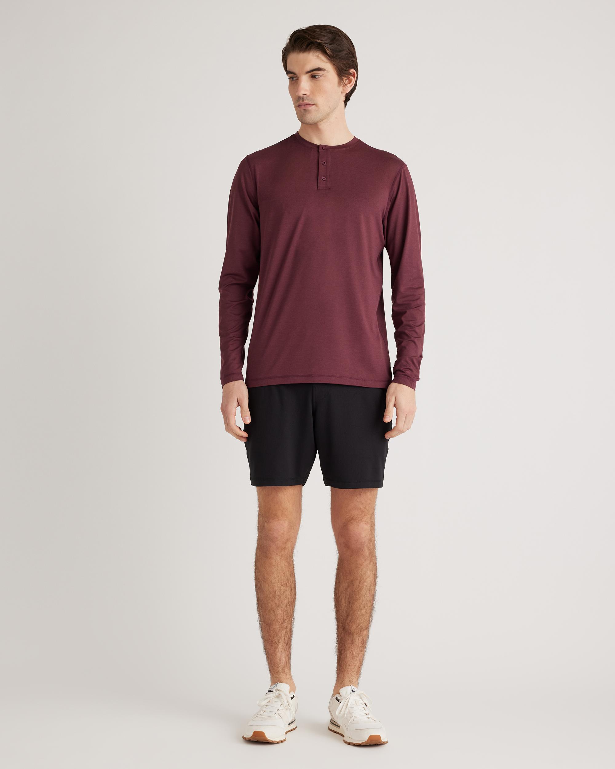 Meet our Flowknit Breeze Performance Long Sleeve Henley Tee, the ultimate do-everything tee. Made for training, travel, or lounging, our insanely-soft Flowknit fabric is jam-packed with performance features like moisture-wicking and anti-odor. Bonus: Our Flowknit is made from Global Recycle Standard poly yarn, which diverts and recycles plastics destined for landfill or the ocean, so you can look as good as you feel. | Quince | Men's Flowknit Breeze Performance Long Sleeve Henley T-Shirt in Burgundy, Size XXL, 100% Polyester