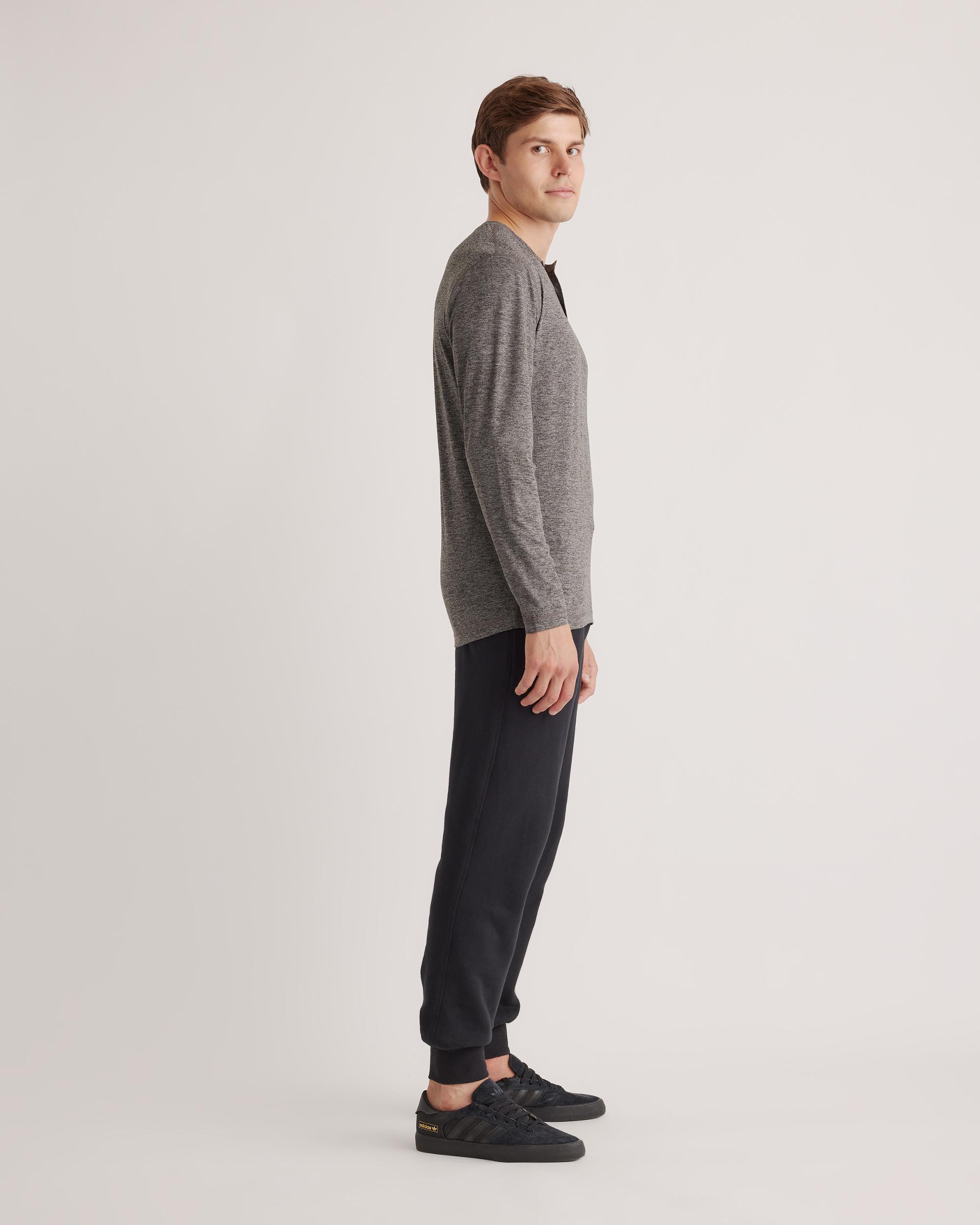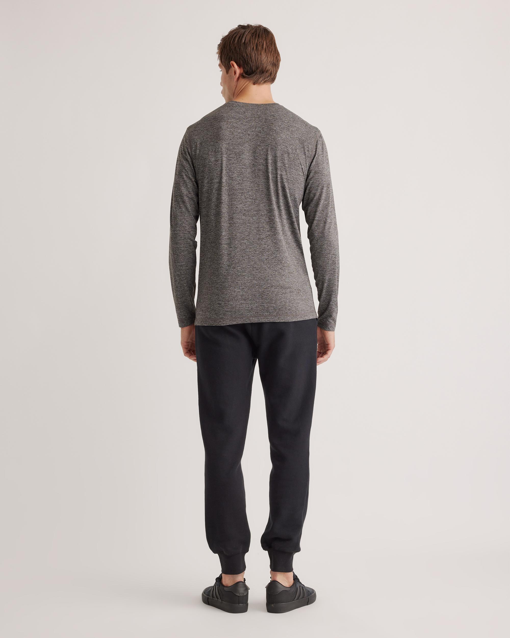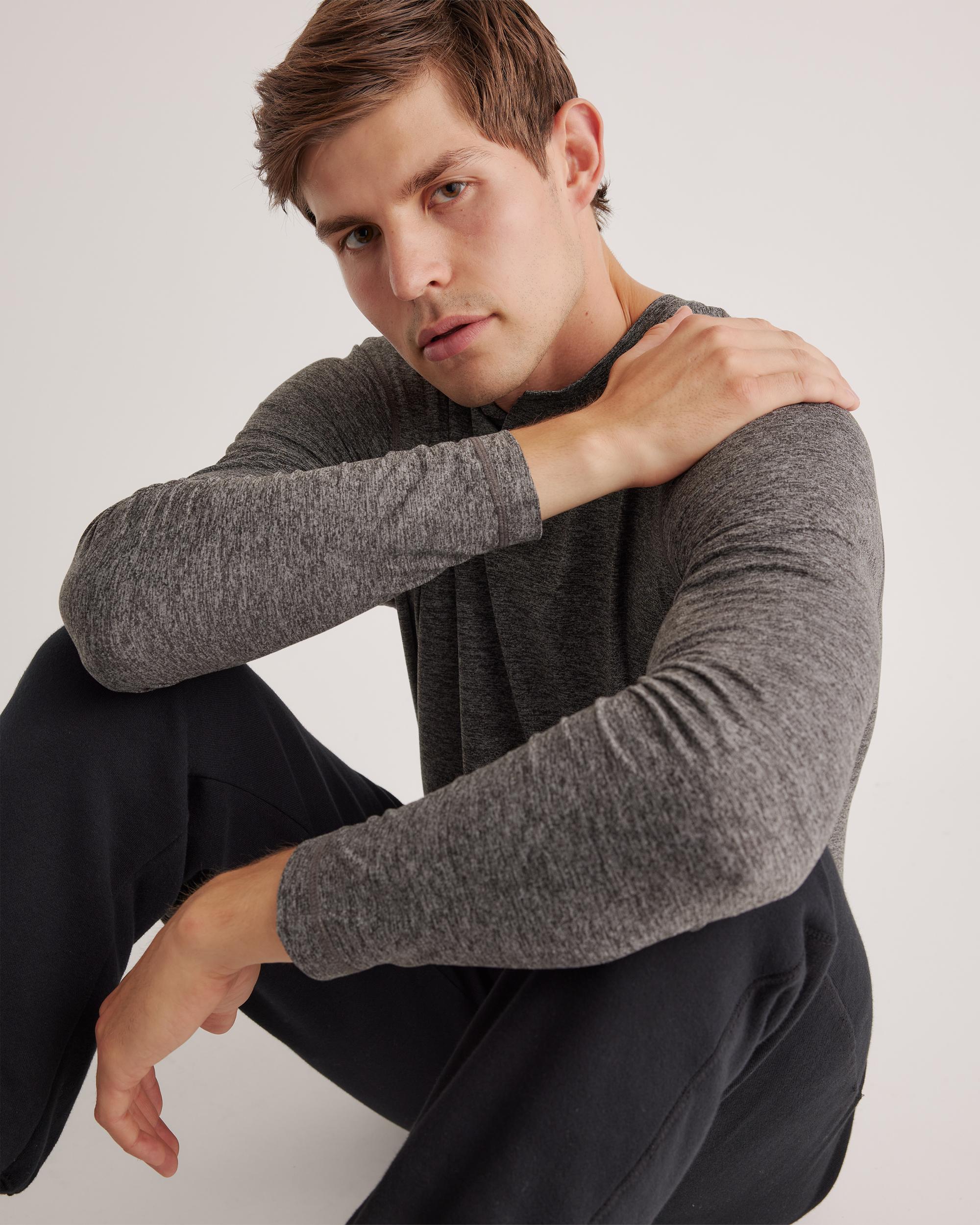 Meet our Flowknit Breeze Performance Long Sleeve Henley Tee, the ultimate do-everything tee. Made for training, travel, or lounging, our insanely-soft Flowknit fabric is jam-packed with performance features like moisture-wicking and anti-odor. Bonus: Our Flowknit is made from Global Recycle Standard poly yarn, which diverts and recycles plastics destined for landfill or the ocean, so you can look as good as you feel. | Quince | Men's Flowknit Breeze Performance Long Sleeve Henley T-Shirt in Charcoal, Size Medium, 100% Polyester