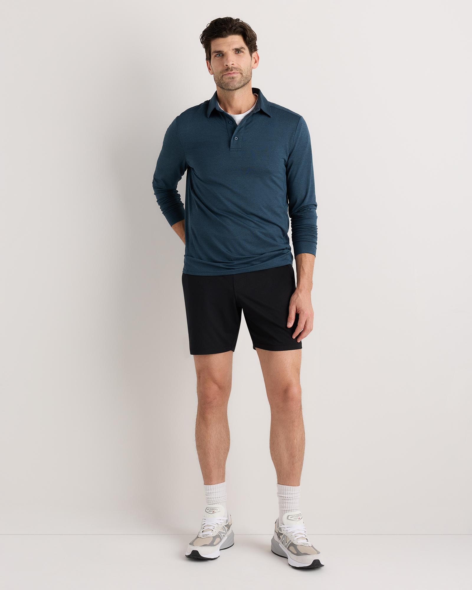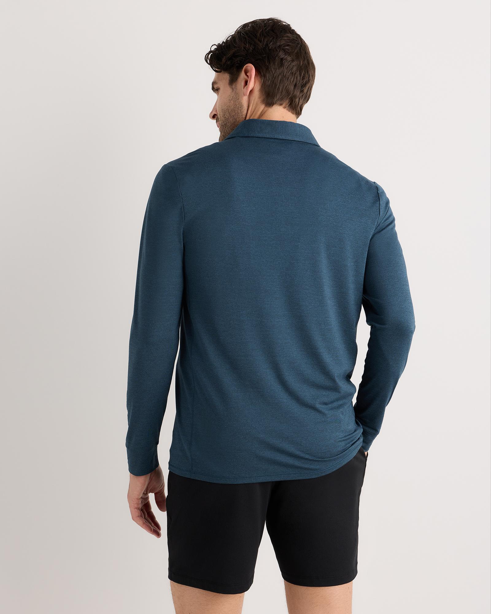 The most comfortable polo you'll ever wear now with long sleeves - perfect for golf, travel, date-night, or just lounging. Our insanely-soft Flowknit fabric is not only sustainable, but jam-packed with performance features like moisture-wicking and anti-odor for ultimate versatility. We dare you to take this off. | Quince | Men's Flowknit Breeze Performance Long Sleeve Polo in Navy, Size XL, Recycled Polyester
