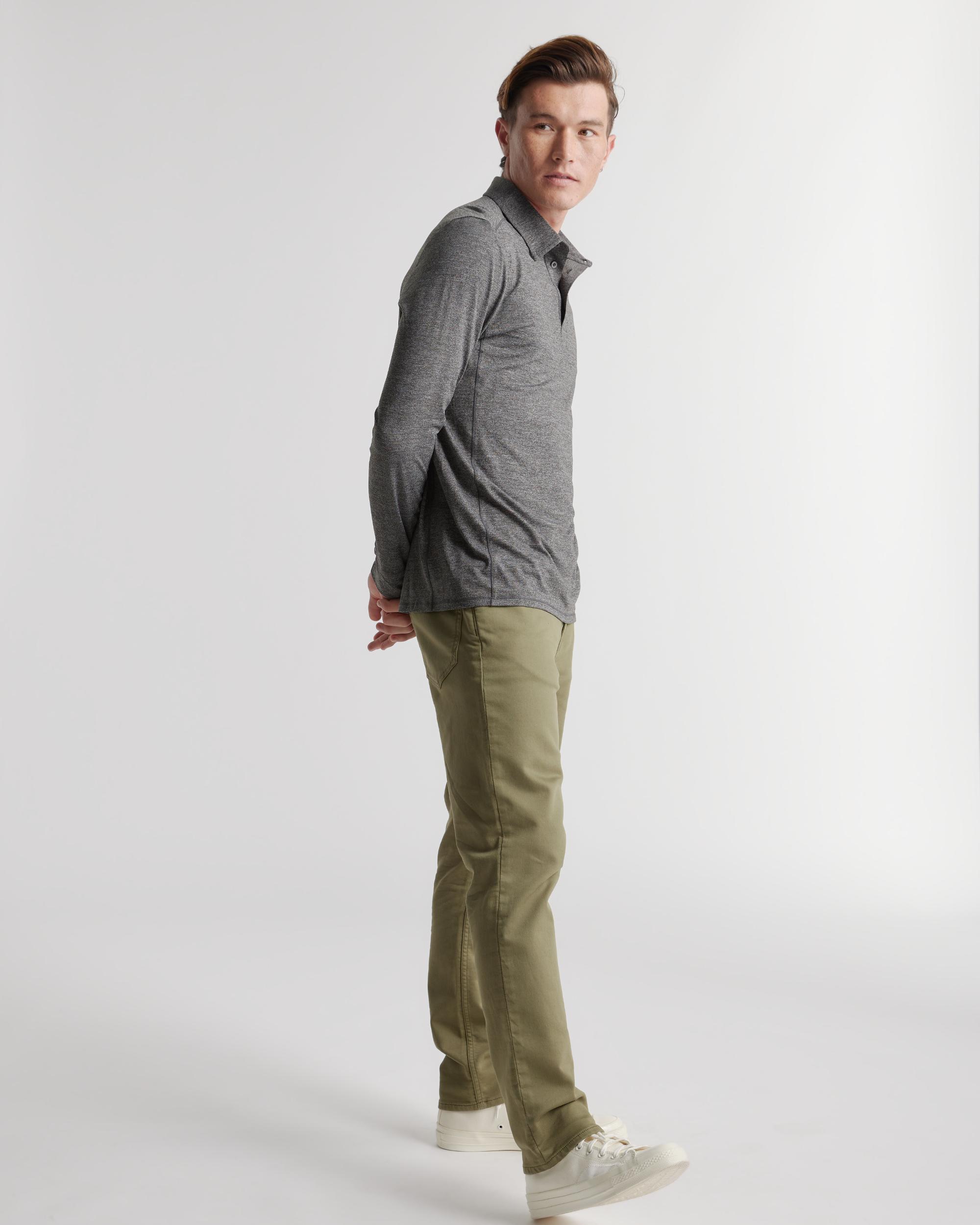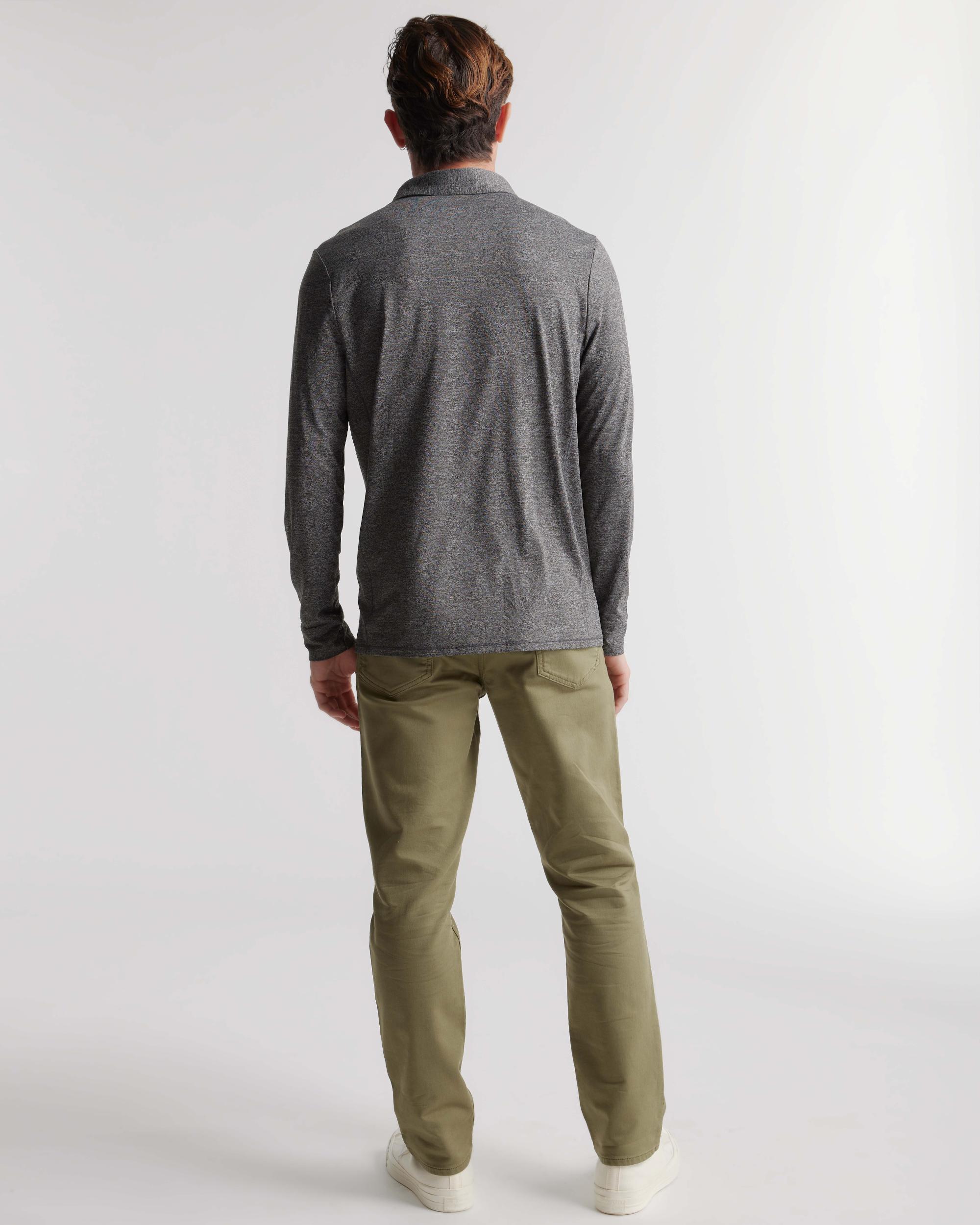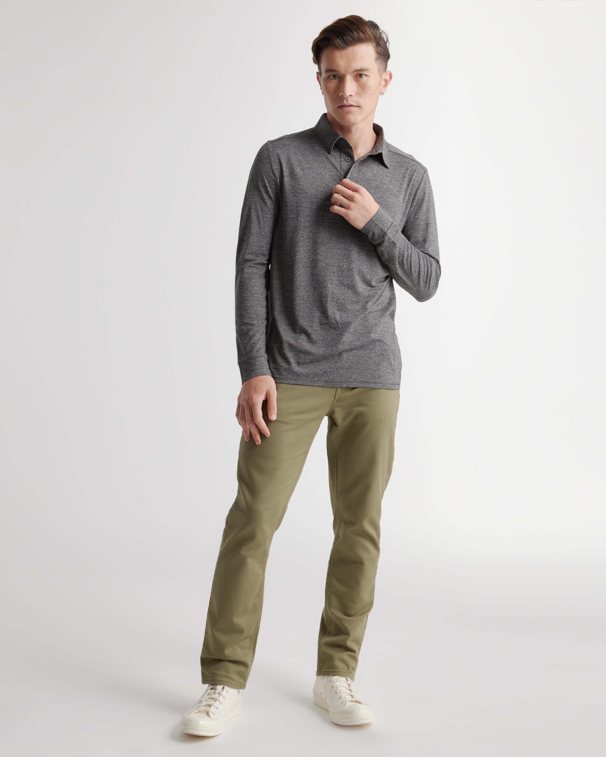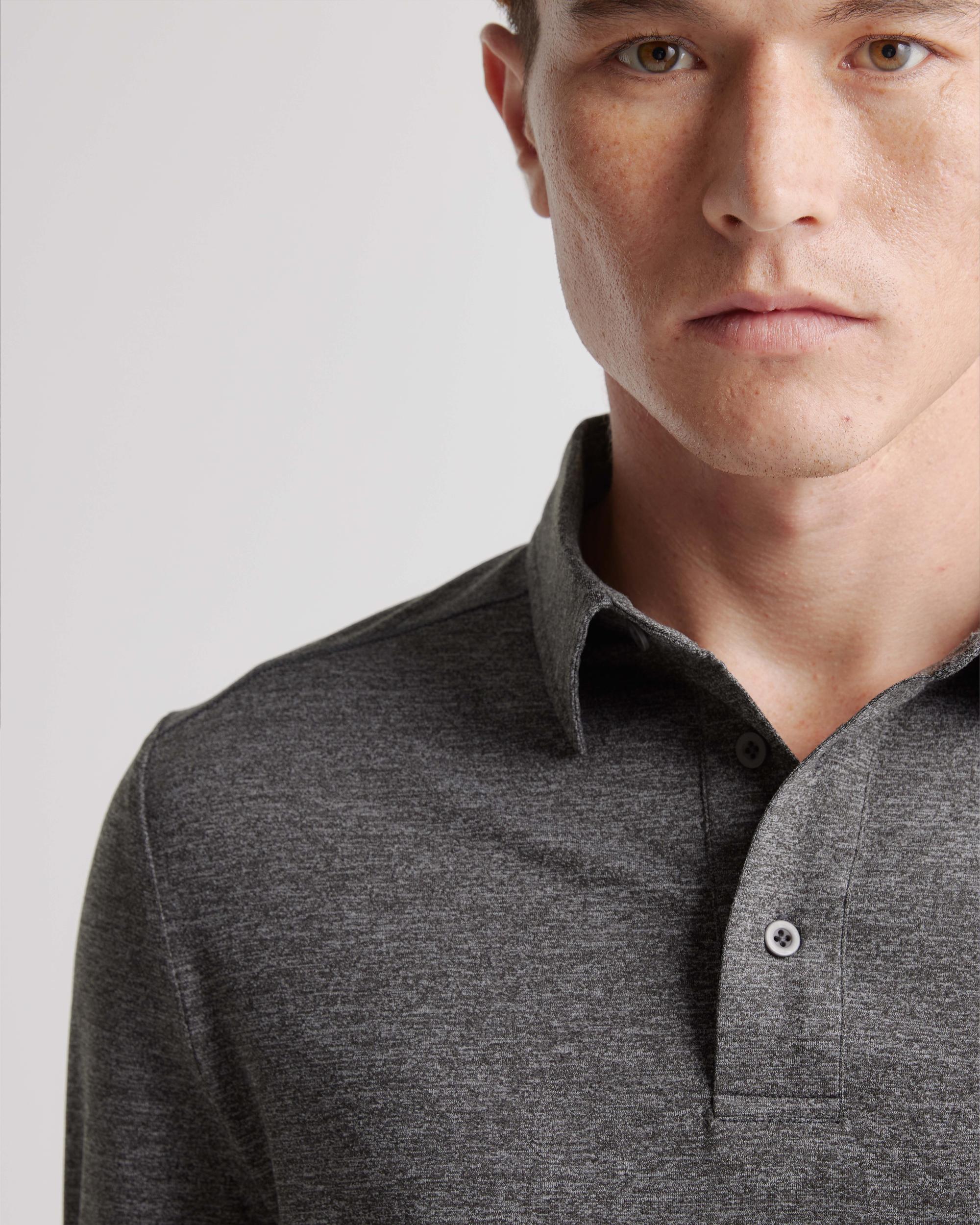 The most comfortable polo you'll ever wear now with long sleeves - perfect for golf, travel, date-night, or just lounging. Our insanely-soft Flowknit fabric is not only sustainable, but jam-packed with performance features like moisture-wicking and anti-odor for ultimate versatility. We dare you to take this off. | Quince | Men's Flowknit Breeze Performance Long Sleeve Polo in Charcoal, Size Small, Recycled Polyester