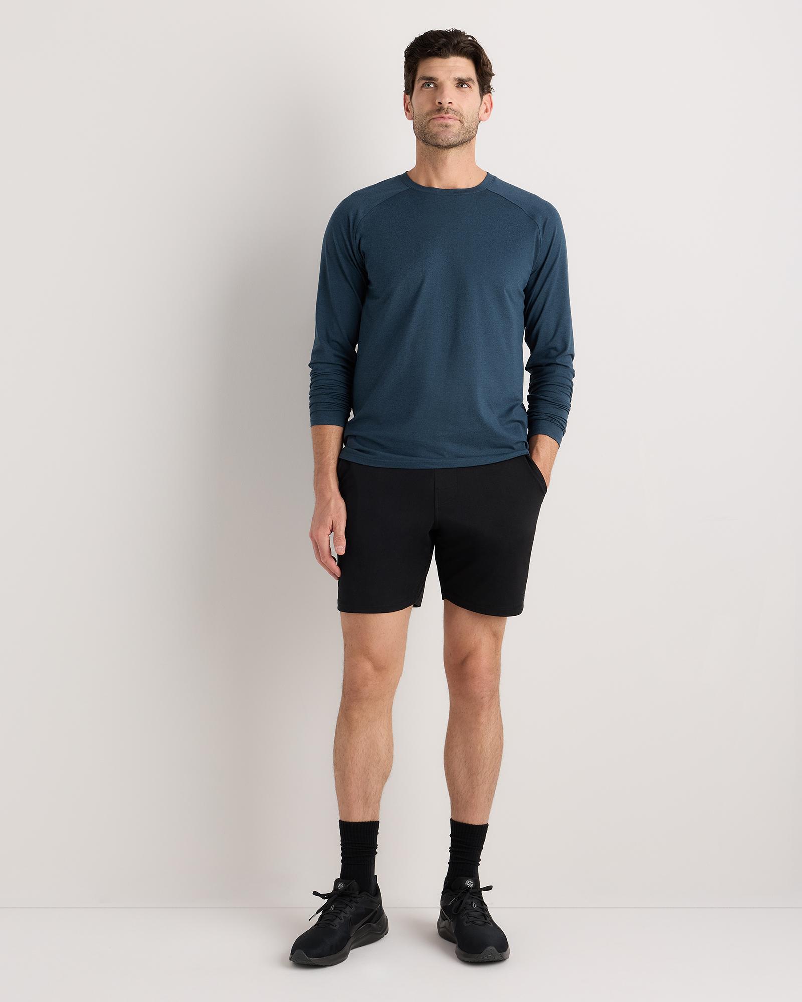 Our fave flowknit tee, but now in a long sleeve style. Perfect for training, travel, or lounging, our insanely-soft Flowknit fabric is jam-packed with performance features like moisture-wicking and anti-odor. Built for next-level comfort, and for everyday wear. Our Flowknit is made from Global Recycle Standard poly yarn, which diverts and recycles plastics destined for landfill or the ocean, so you can feel and look good in what you wear. | Quince | Men's Super Soft Performance Long Sleeve T-Shirt in Navy, Flowknit Activewear, Size Small, 100% Polyester