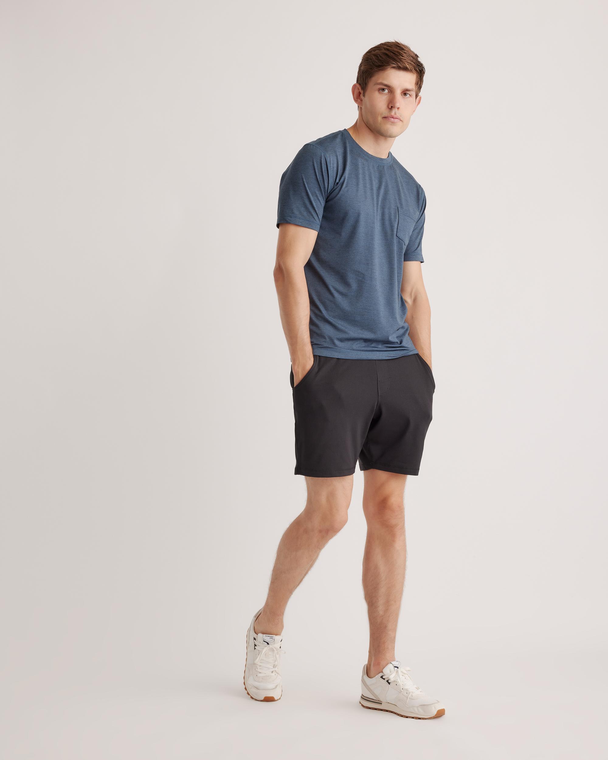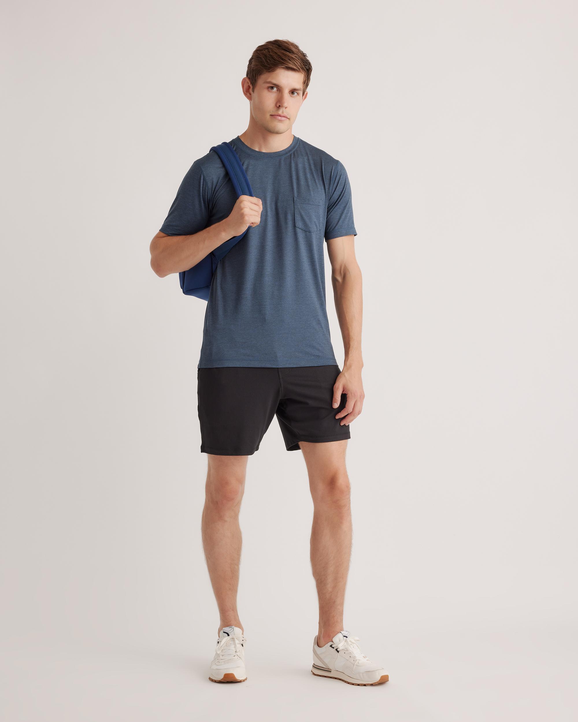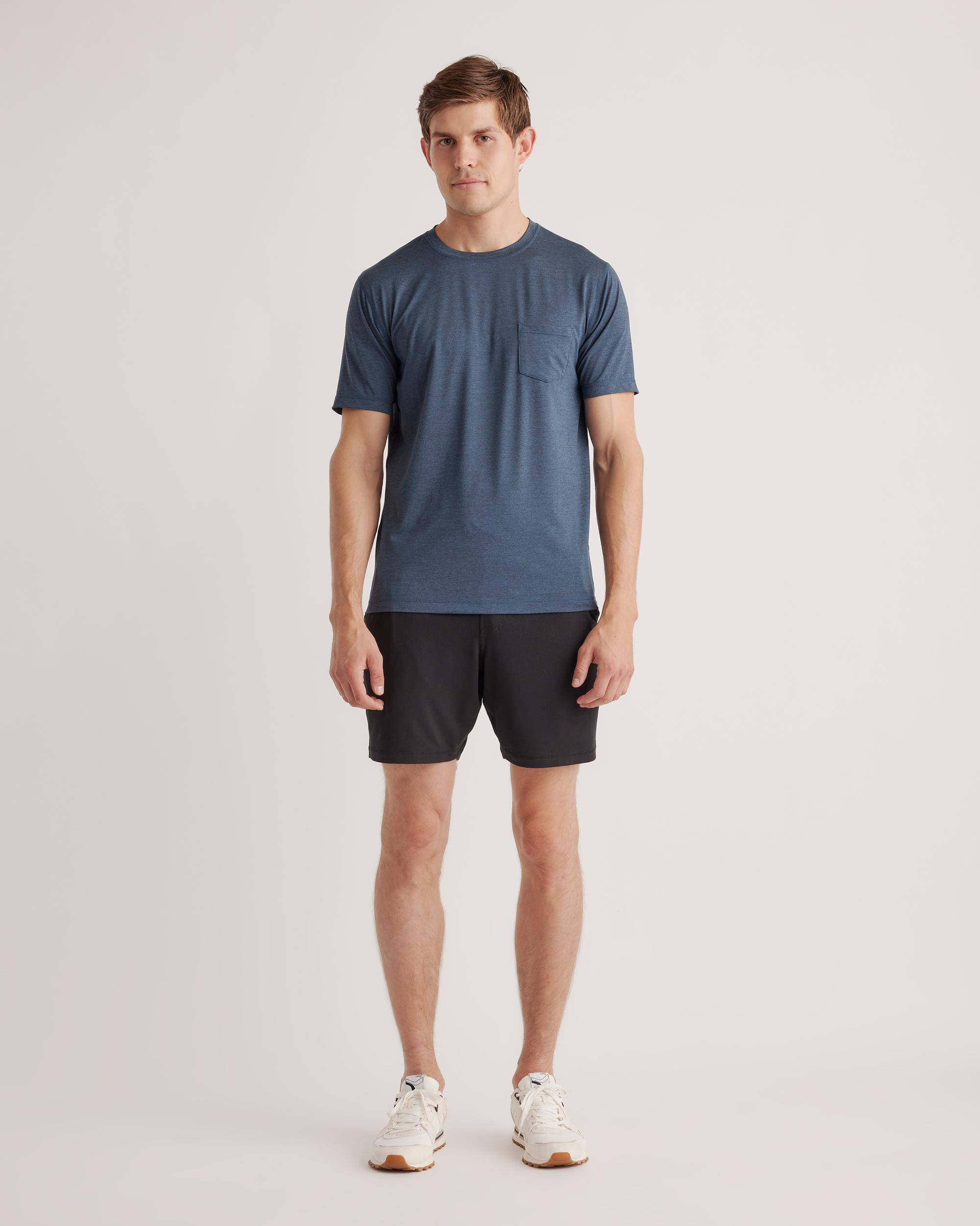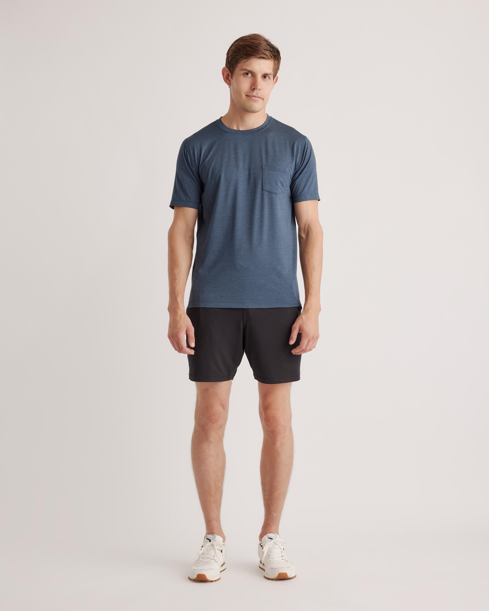 The ultimate do-everything tee, now with a pocket. The single chest pocket adds simple flare to the same shirt you know and love, our Flowknit Breeze Performance Tee, and is the perfect addition to your rotation. Made for training, travel, or lounging, our insanely-soft Flowknit fabric is jam-packed with performance features like moisture-wicking and anti-odor benefits. Bonus: Our Flowknit is made from Global Recycle Standard poly yarn, which diverts and recycles plastics destined for landfill or the ocean, so you can feel and look good in what you wear. | Quince | Men's Flowknit Breeze Performance Pocket T-Shirt in Navy, Size Medium, 100% Polyester