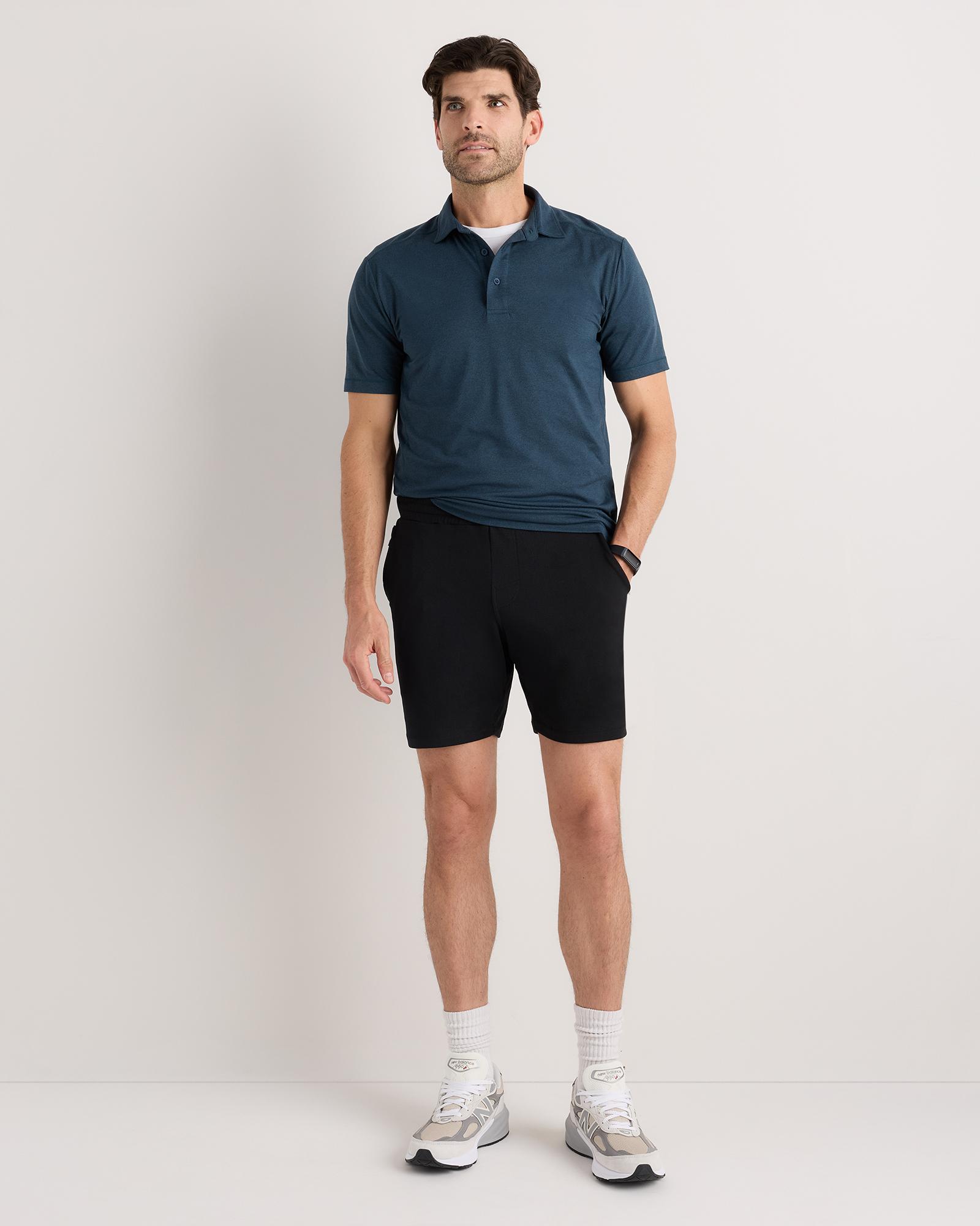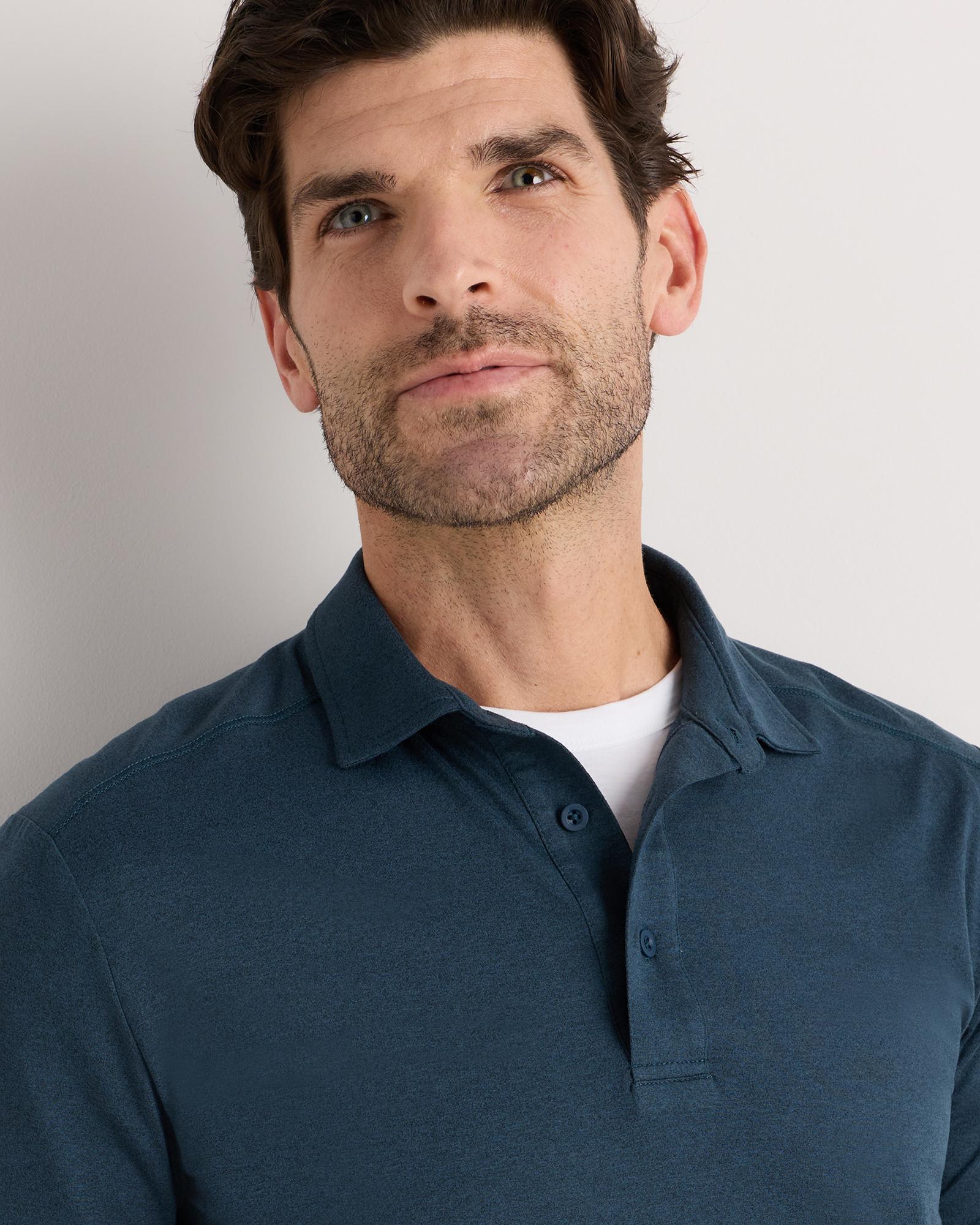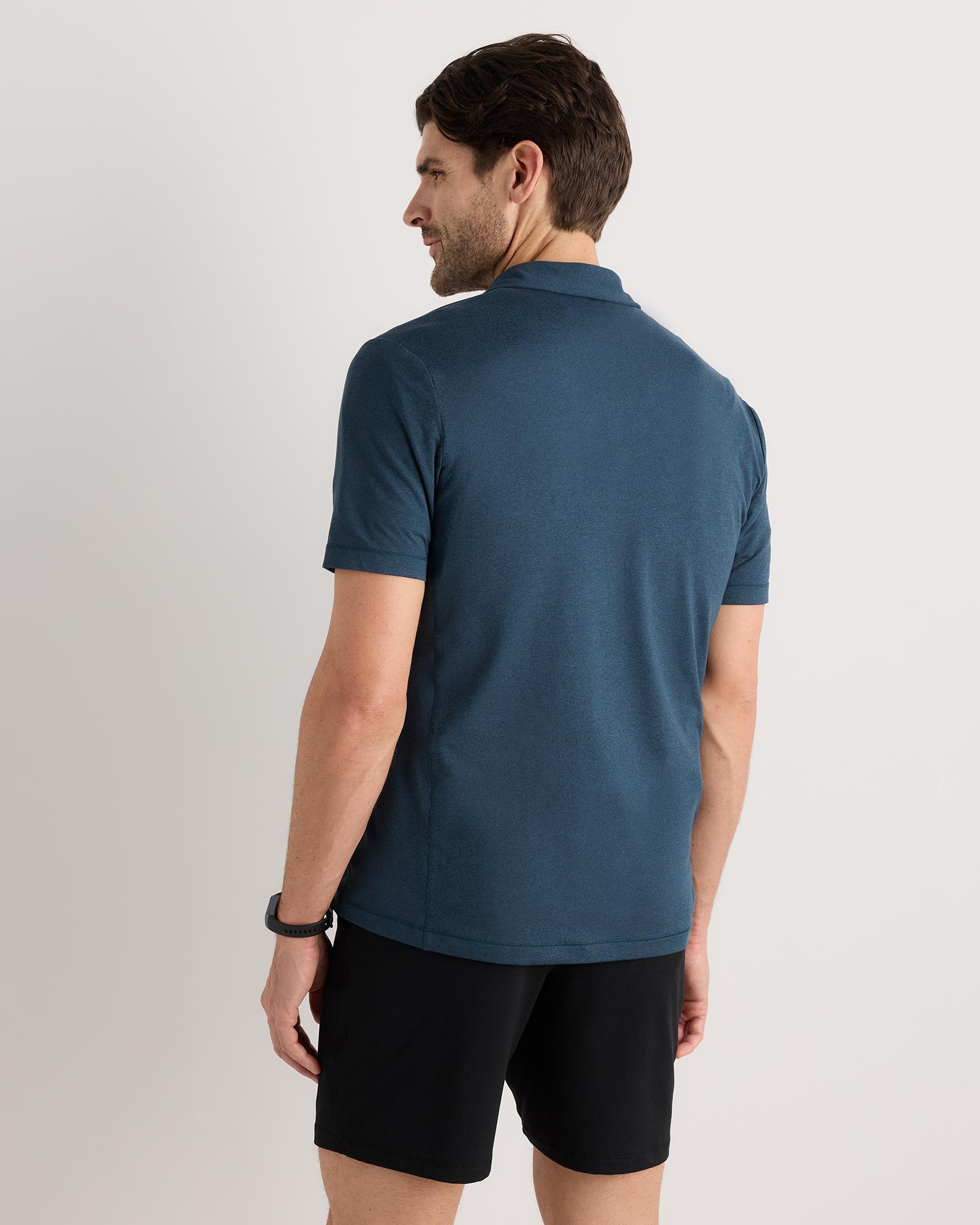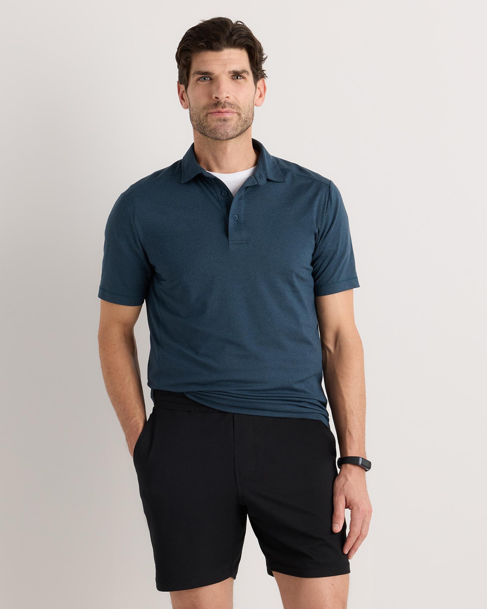 Level up your perfect polo. This supersoft option is ideal for golf, travel, or date-night. Our insanely-soft Flowknit fabric is not only sustainable, but jam-packed with performance features like moisture-wicking and anti-odor for ultimate versatility. Our Flowknit is made from Global Recycle Standard poly yarn, which diverts and recycles plastics destined for landfill or the ocean, so you can feel and look good in what you wear. | Quince | Men's Super Soft Performance Polo Shirt in Navy, Flowknit Activewear, Size Small, Recycled Polyester