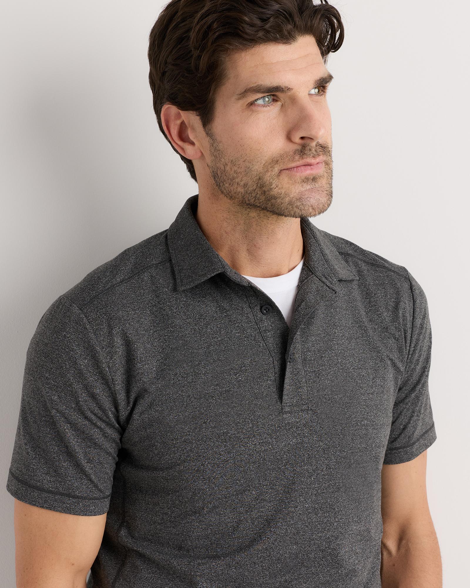 Level up your perfect polo. This supersoft option is ideal for golf, travel, or date-night. Our insanely-soft Flowknit fabric is not only sustainable, but jam-packed with performance features like moisture-wicking and anti-odor for ultimate versatility. Our Flowknit is made from Global Recycle Standard poly yarn, which diverts and recycles plastics destined for landfill or the ocean, so you can feel and look good in what you wear. | Quince | Men's Flowknit Breeze Performance Polo in Charcoal, Size XXL, Recycled Polyester