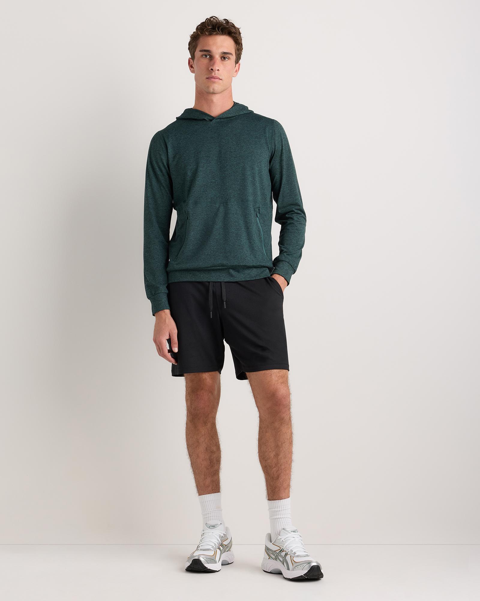 They may be short in length but the list of features we've packed into these performance shorts is long! Moisture-wicking, anti-microbial, with a cell-phone pocket at front, and a secure zip back pocket. Perfect for training, travel, or lounging. Our Flowknit is made from Global Recycle Standard poly yarn, which diverts and recycles plastics destined for landfill or the ocean, so you can feel and look good in what you wear. | Quince | Men's Flowknit Performance 7.5" Short in Black, Size XXL, Recycled Polyester