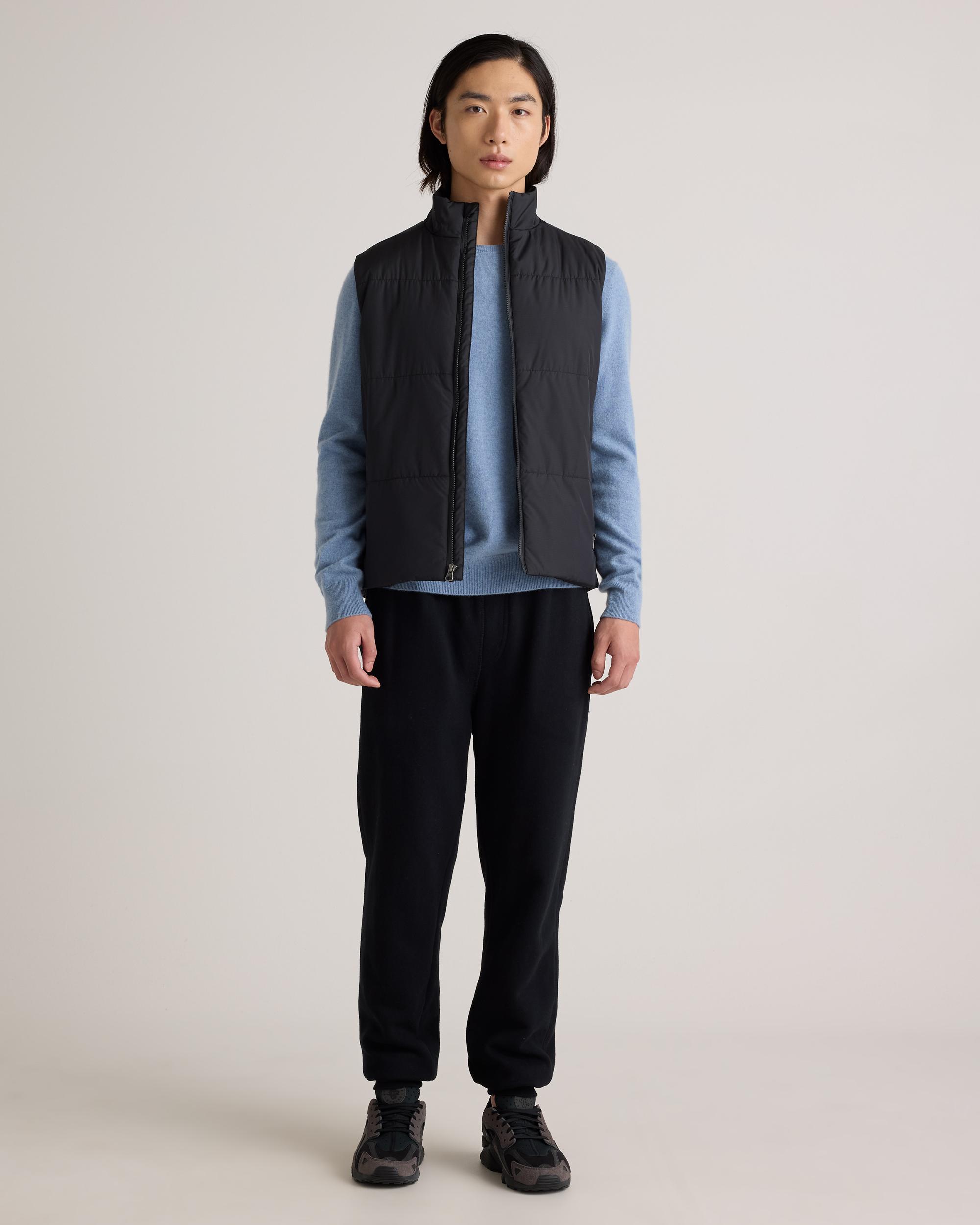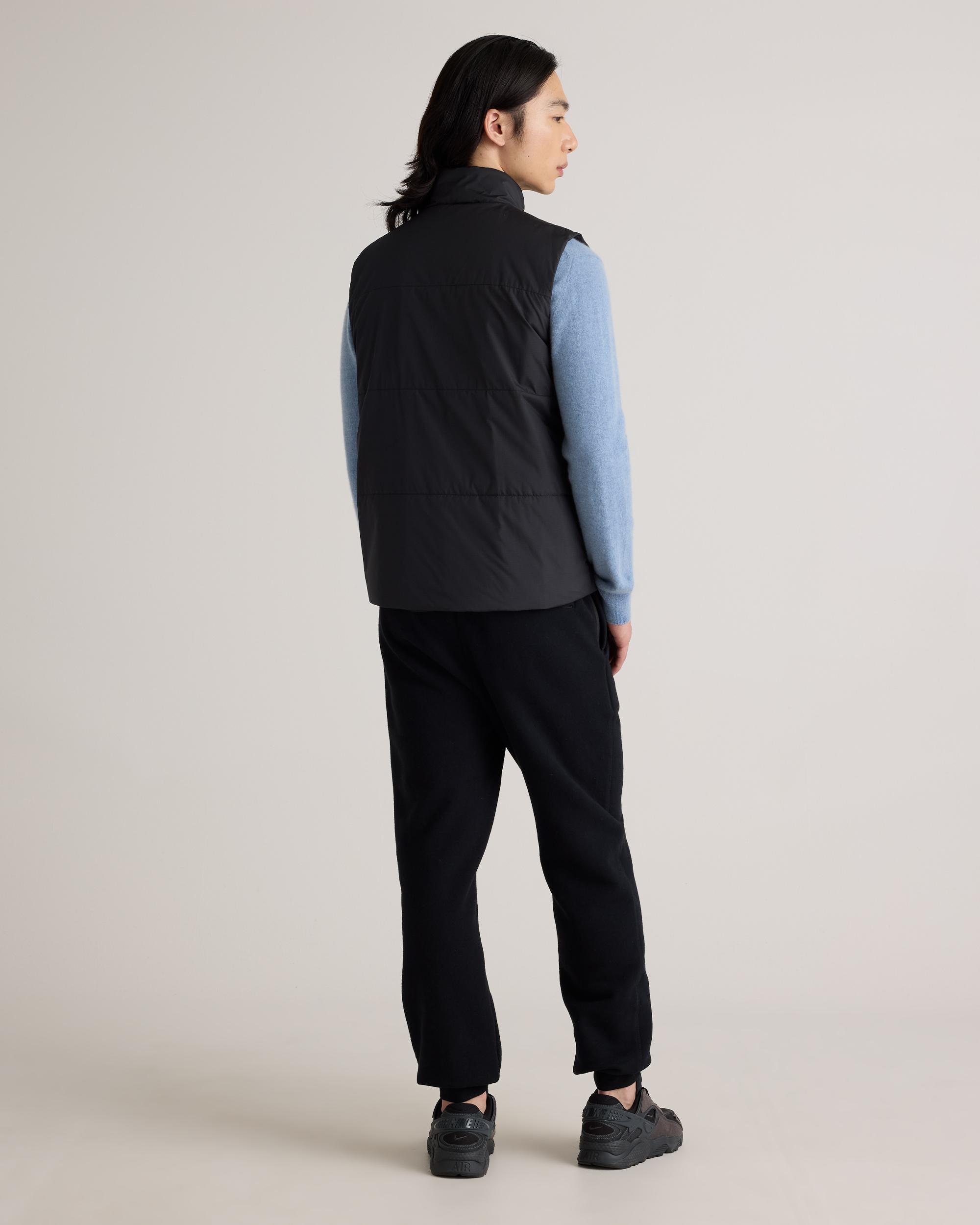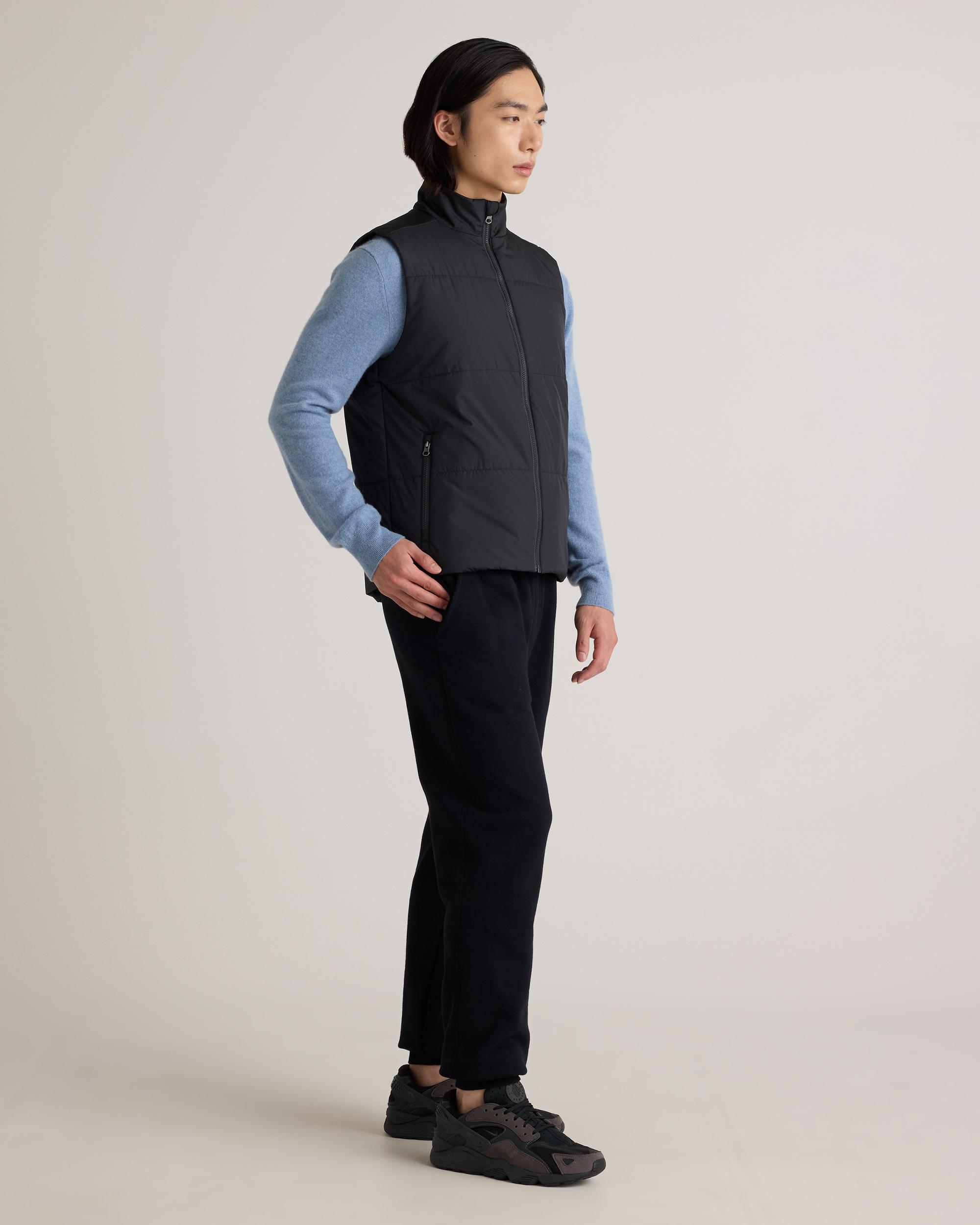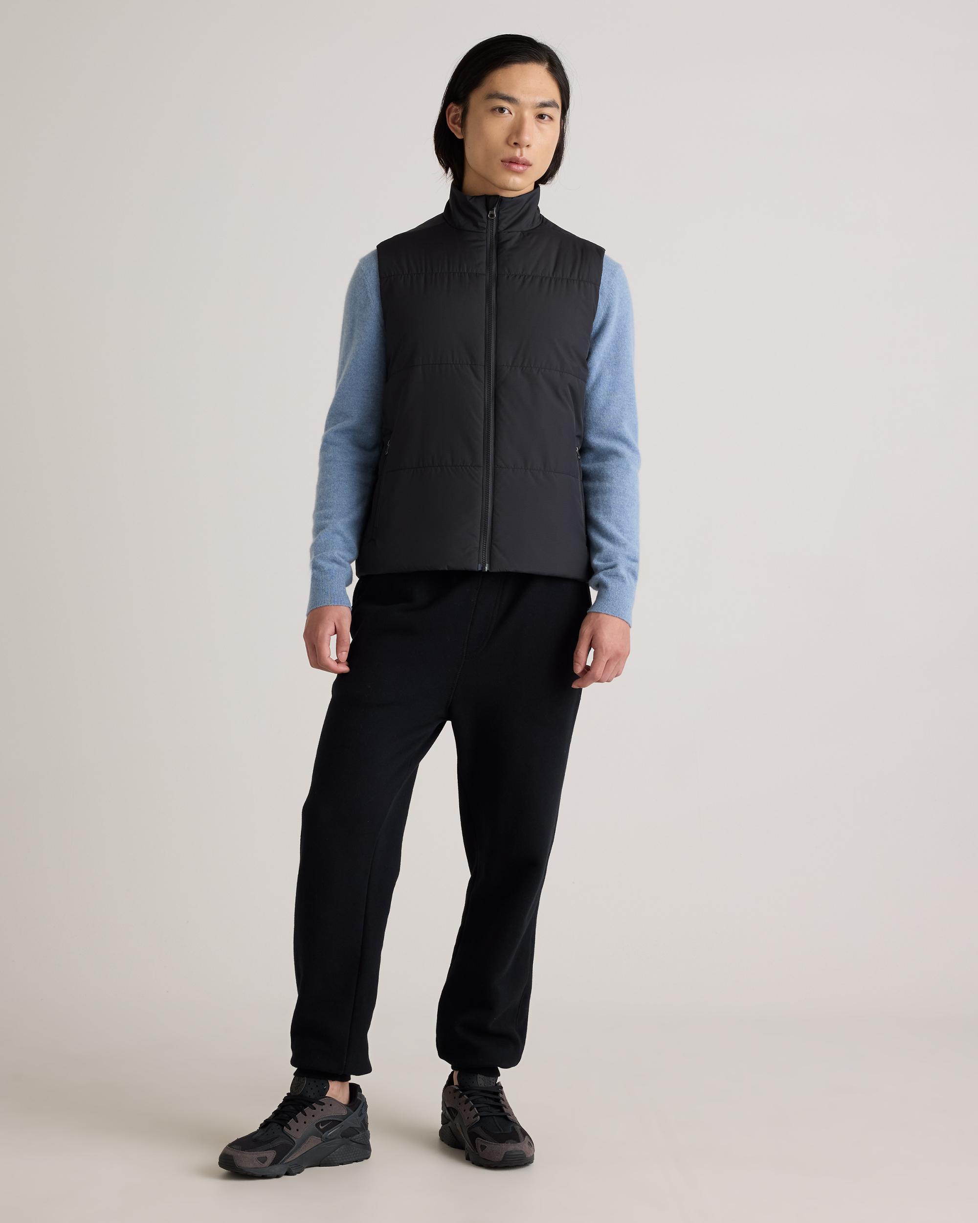 Designed to help you adapt effortlessly to changing weather conditions, our Hybrid Insulated Lightweight Vest is destined to become your go-to layering essential for years to come. The Comfortemp® recycled insulation keeps you comfortable without bulk and the durable water-repellent finish keeps you dry in any weather. The best part? This vest is made of 100% recycled materials that both keep you warm and also keeps plastic bottles out of oceans and landfills. | Quince | Men's Hybrid Insulated Lightweight Vest in Black, Size Small, 100% Polyester