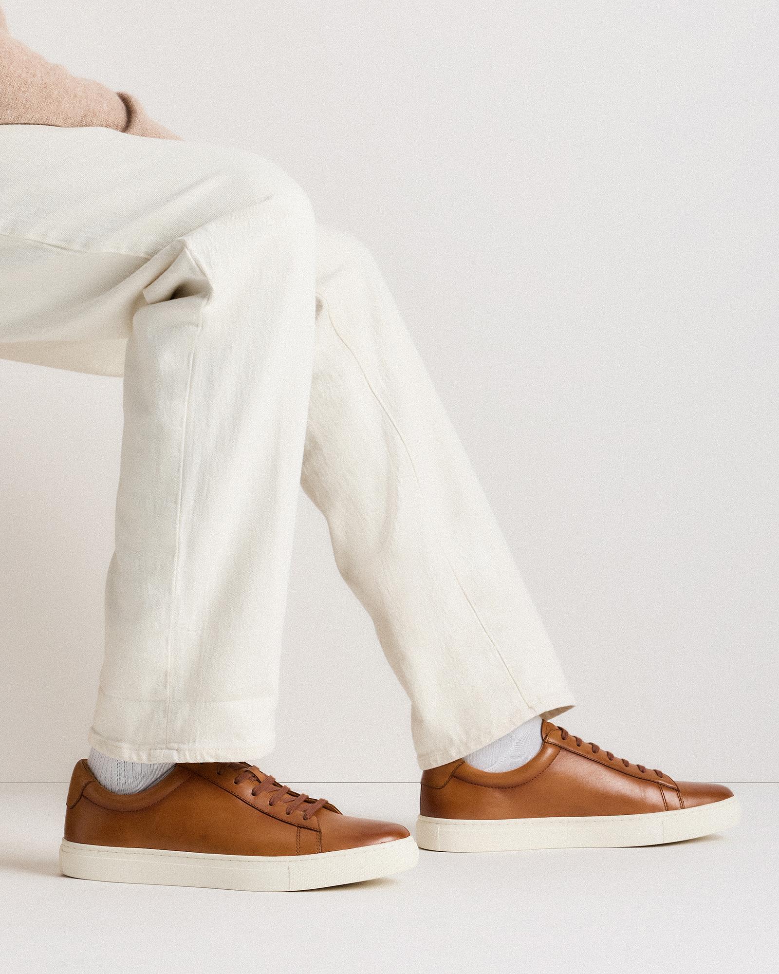 Crafted from premium Italian calfskin, our Italian Leather Everyday Sneaker delivers unmatched comfort and versatile style. With a cushioned Ortholite insole designed for all-day support and a sleek low-top silhouette, it's a staple that transitions effortlessly from casual to sharp. Refined and ready for anything. | Quince | Men's Italian Leather Everyday Sneaker in Tan, Size 9.5