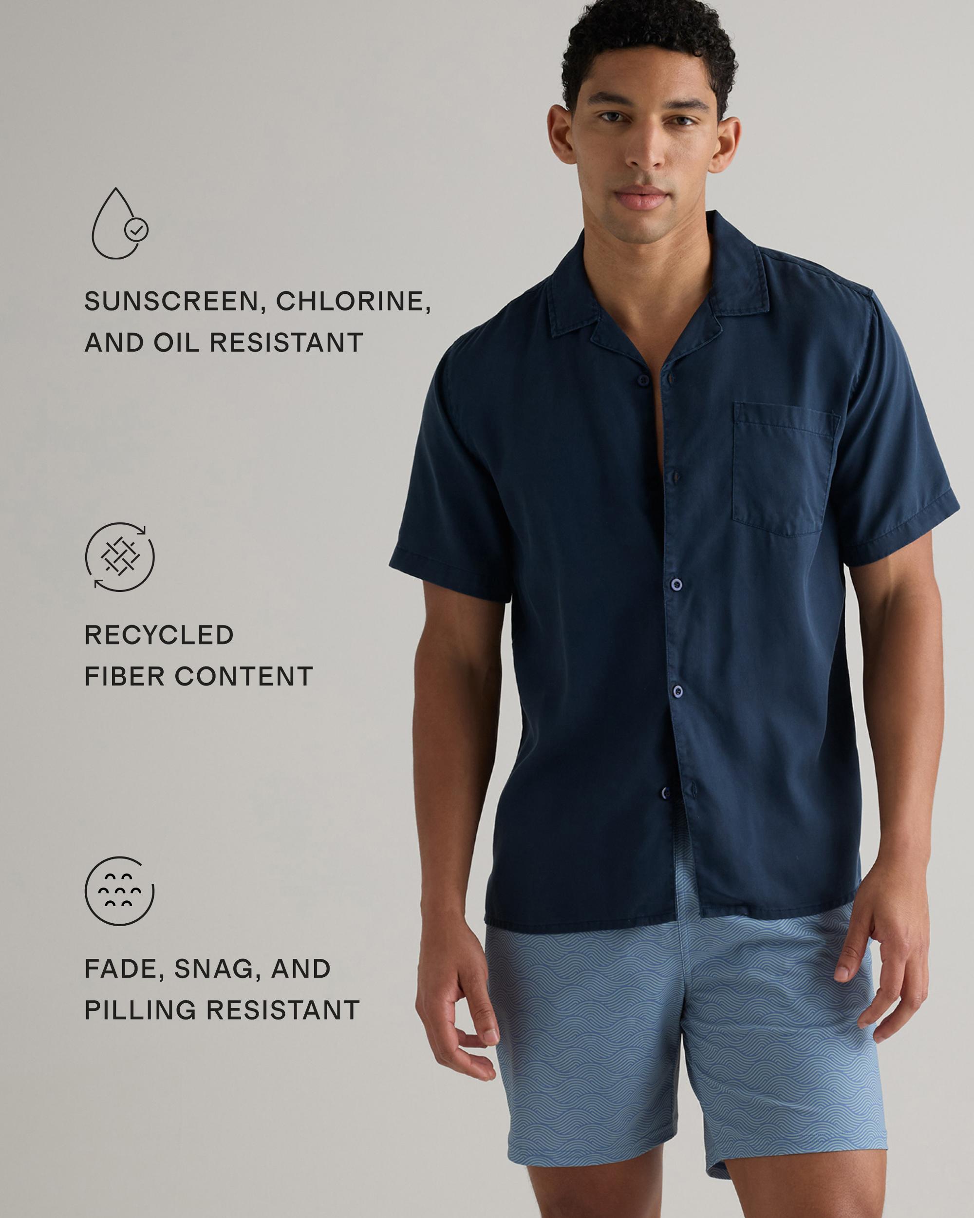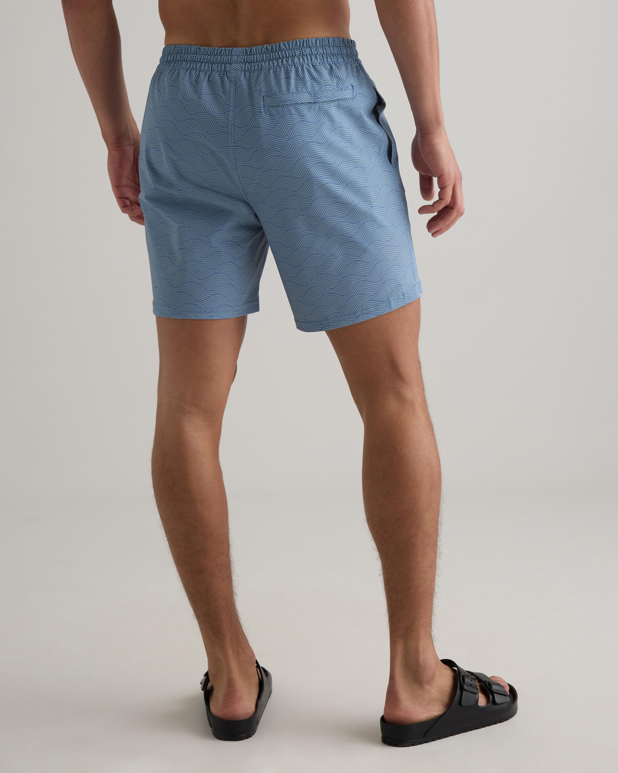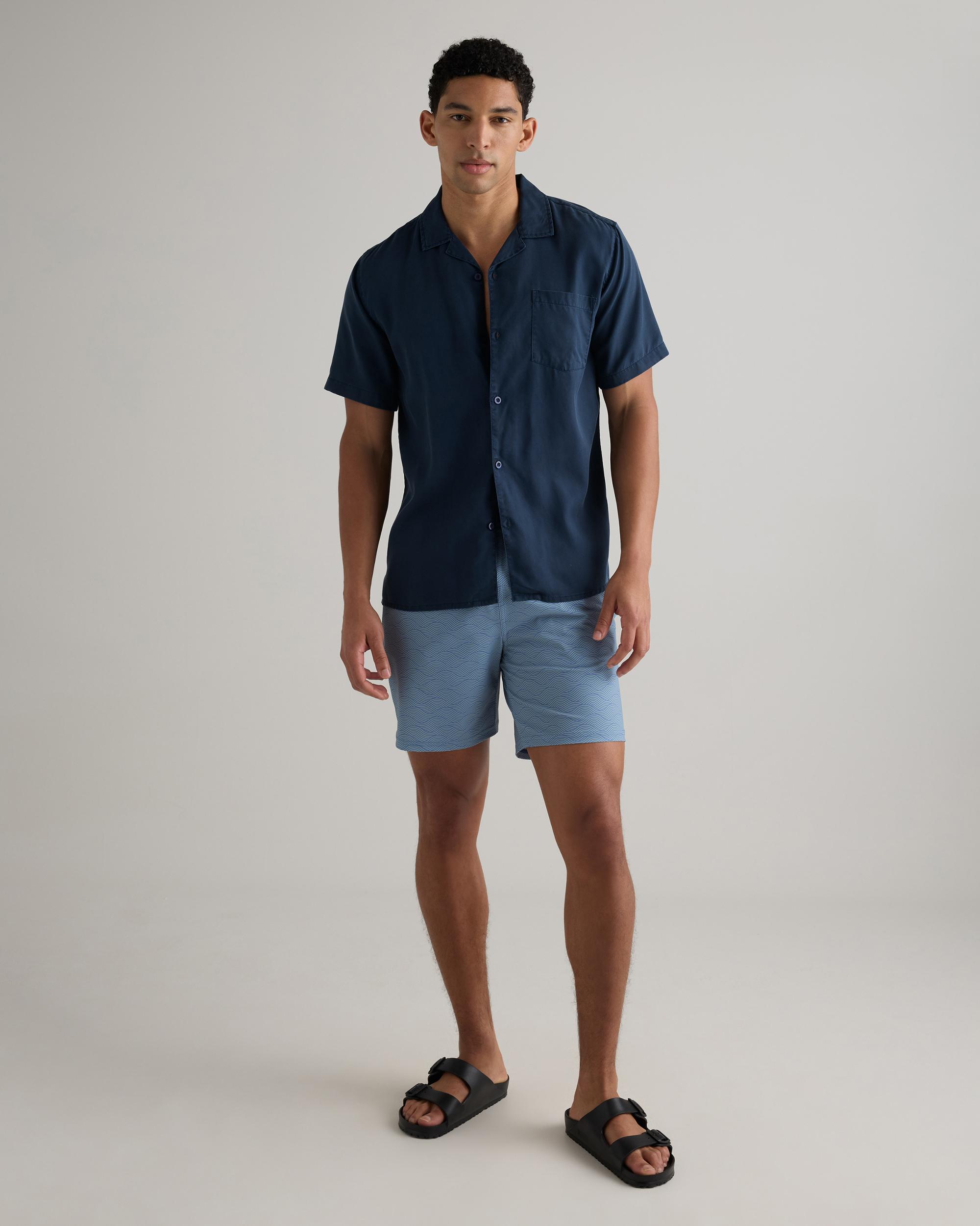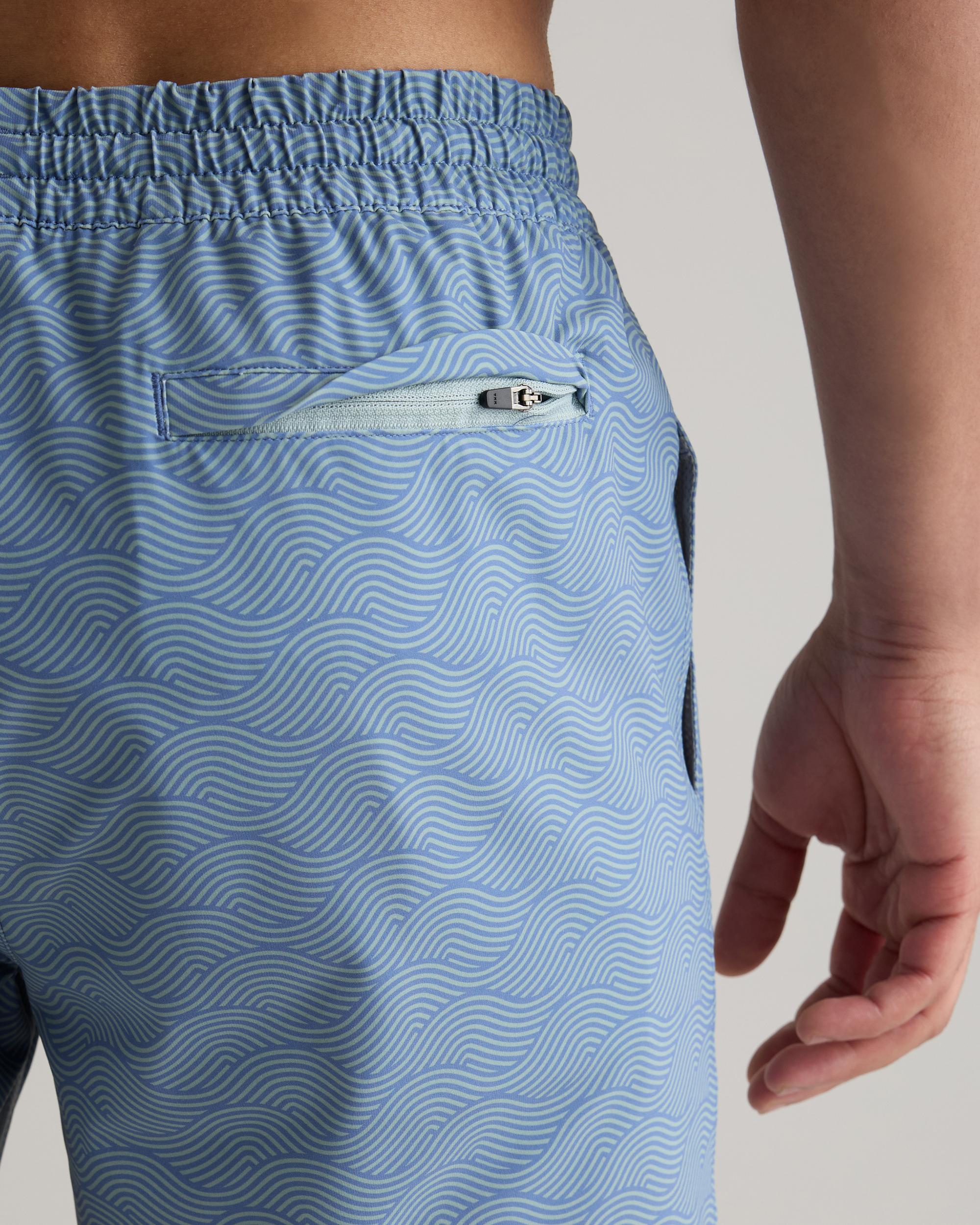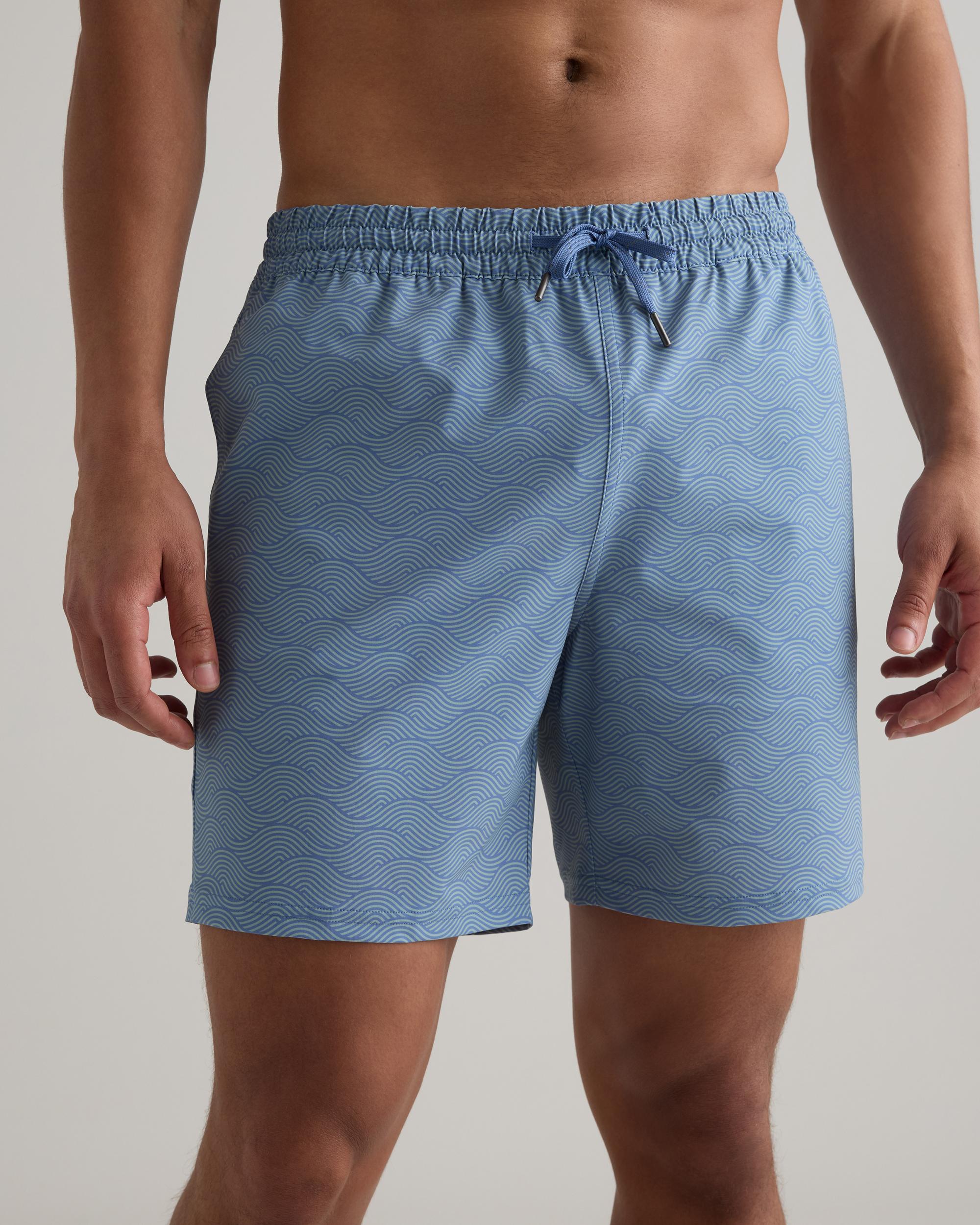 The Italian Swim Trunk is the ultimate summer essential for the active man. Made from quick-drying, sun screen and oil resistant material, this swim trunk offers UPF50 protection for all-day wear. The Italian fabrication ensures durability, resisting fading, pilling, and snagging for long-lasting use. Whether you're hitting the beach, pool, or backyard BBQ, this brief-lined swim trunk will keep you looking and feeling your best. | Quince | Men's Italian Swim Trunk in Tonal Waves, Size Small, Nylon