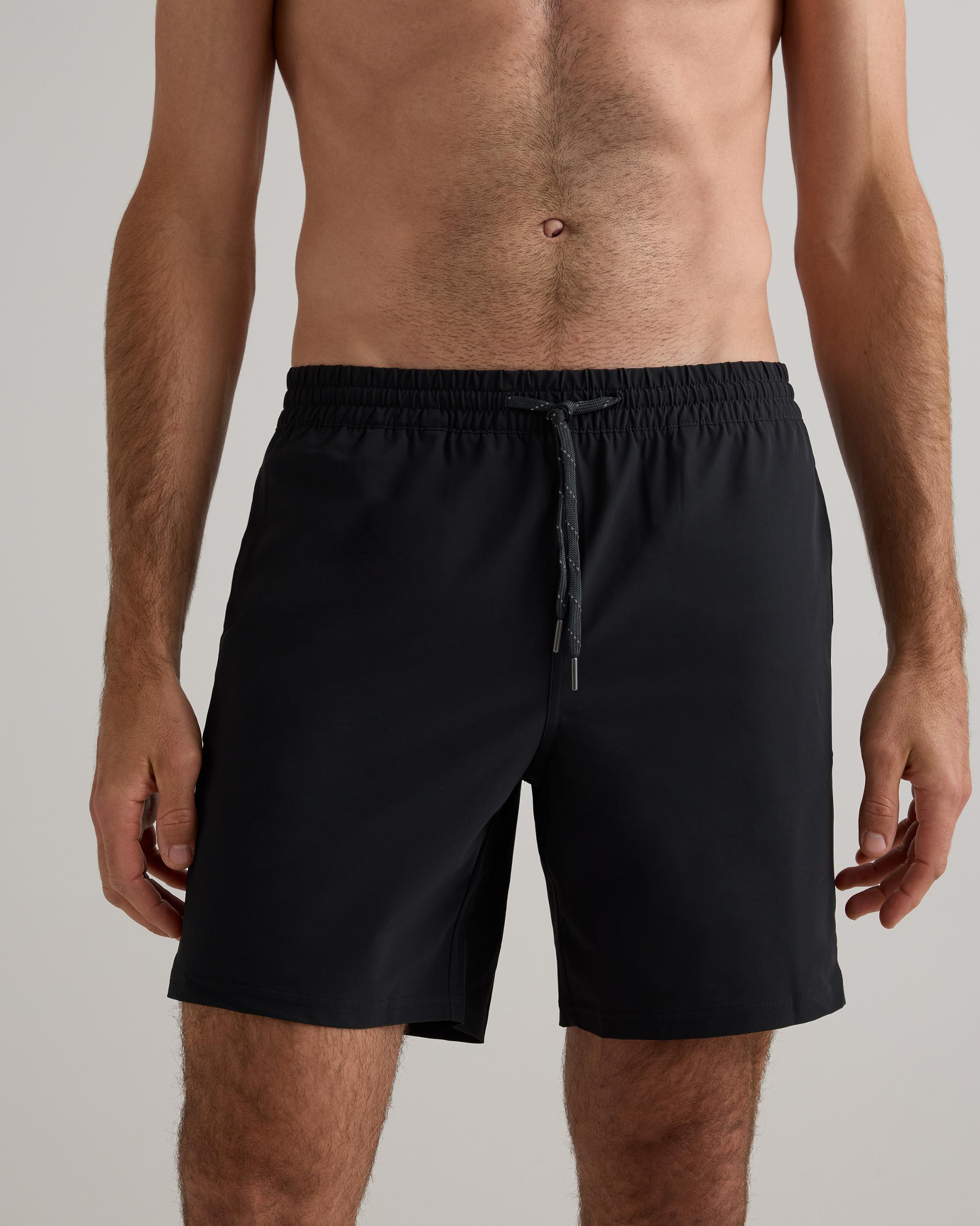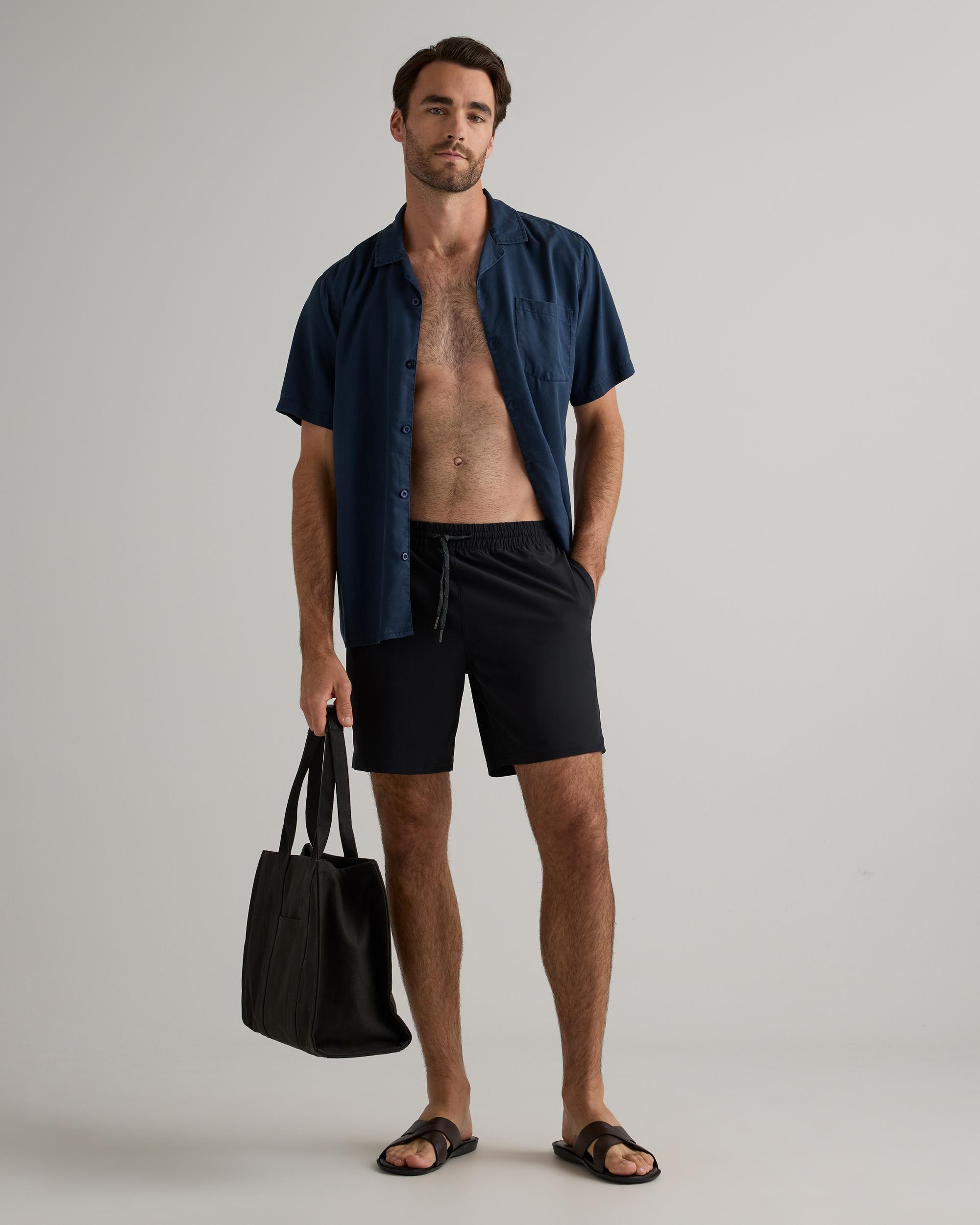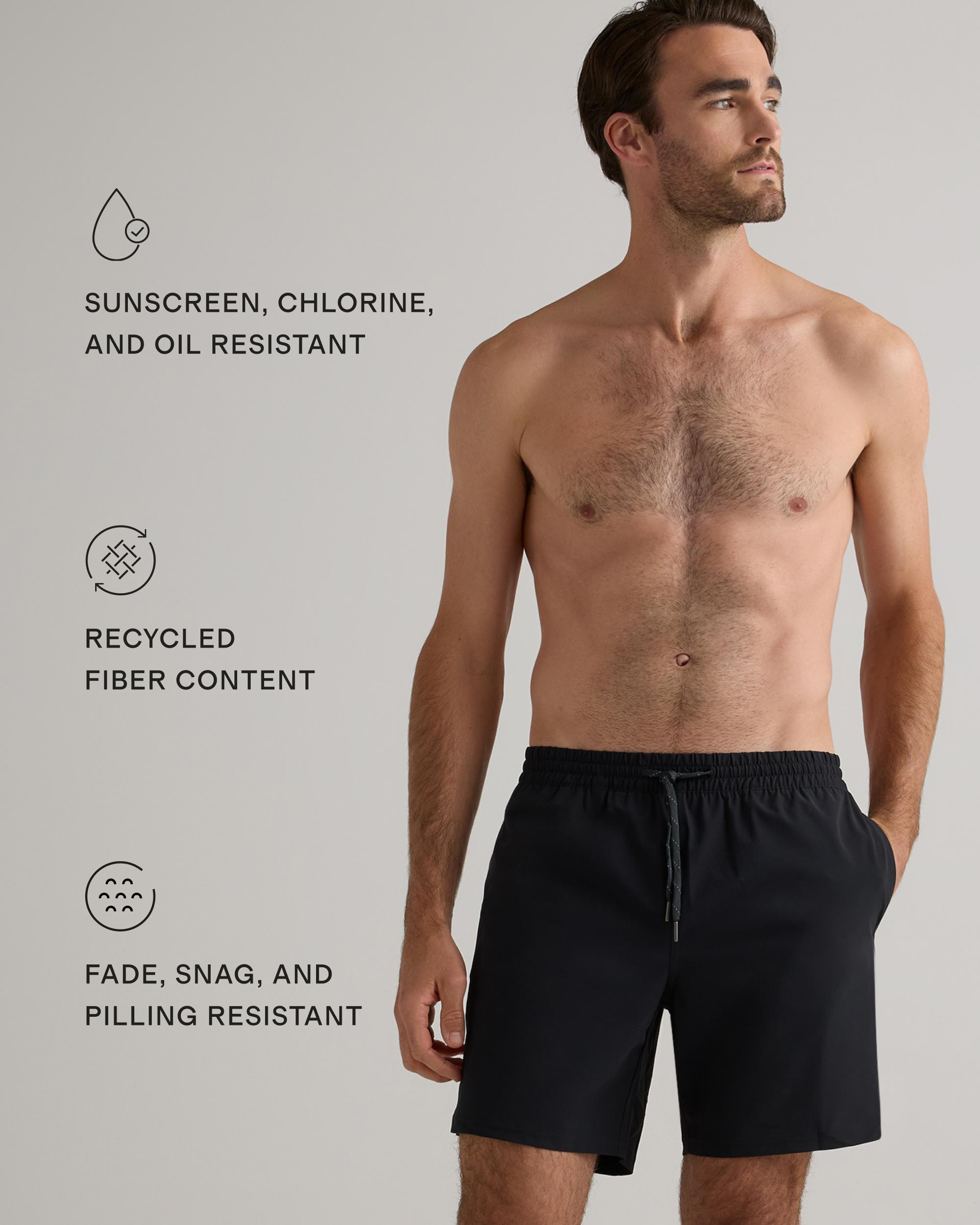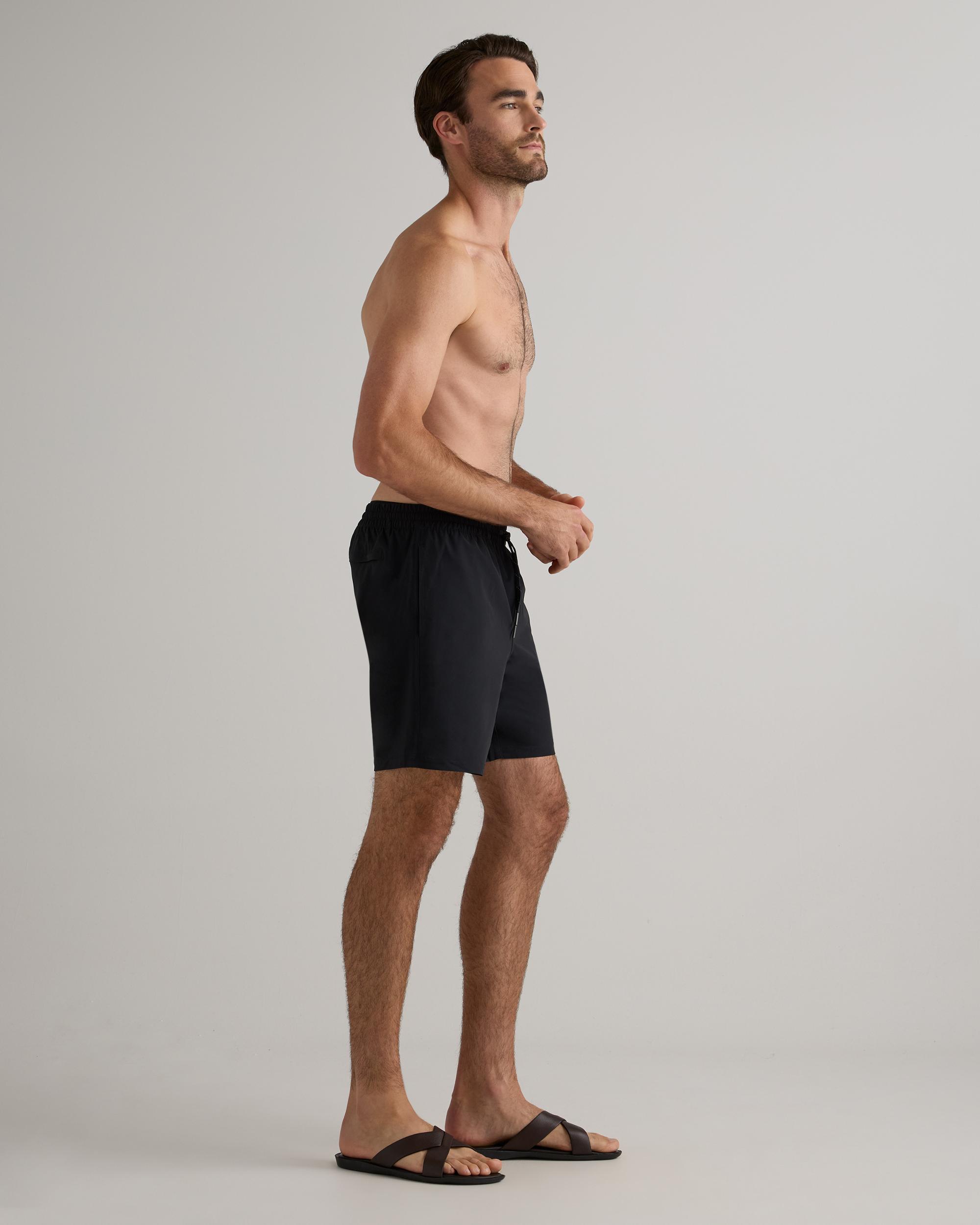 The Italian Swim Trunk is the ultimate summer essential for the active man. Made from quick-drying, sun screen and oil resistant material, this swim trunk offers UPF50 protection for all-day wear. The Italian fabrication ensures durability, resisting fading, pilling, and snagging for long-lasting use. Whether you're hitting the beach, pool, or backyard BBQ, this brief-lined swim trunk will keep you looking and feeling your best. | Quince | Men's Italian Swim Trunk in Black, Size XXL, Nylon