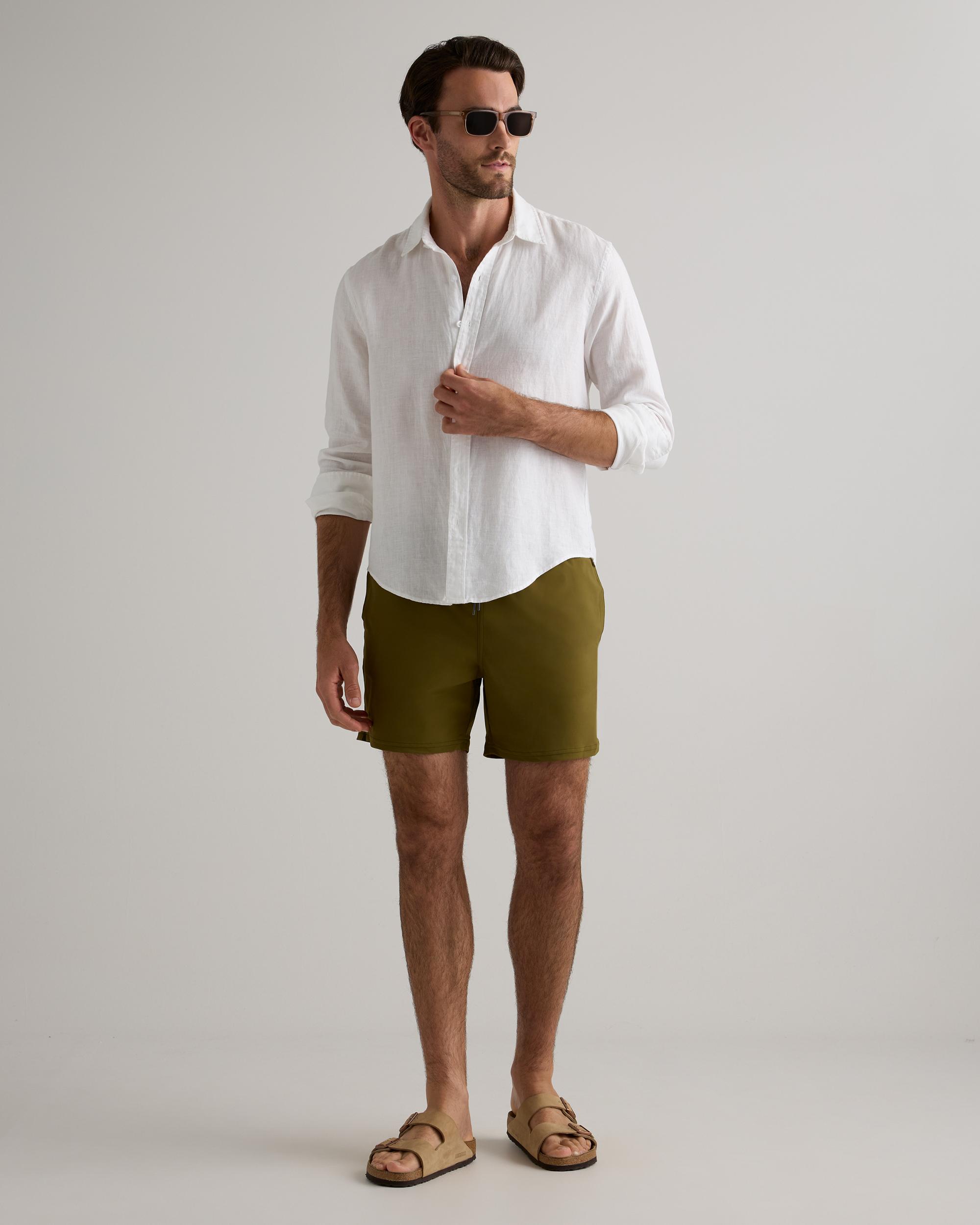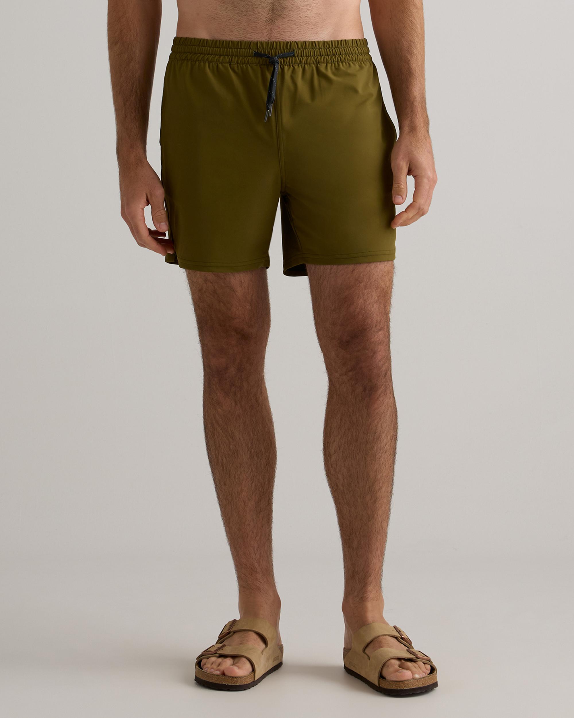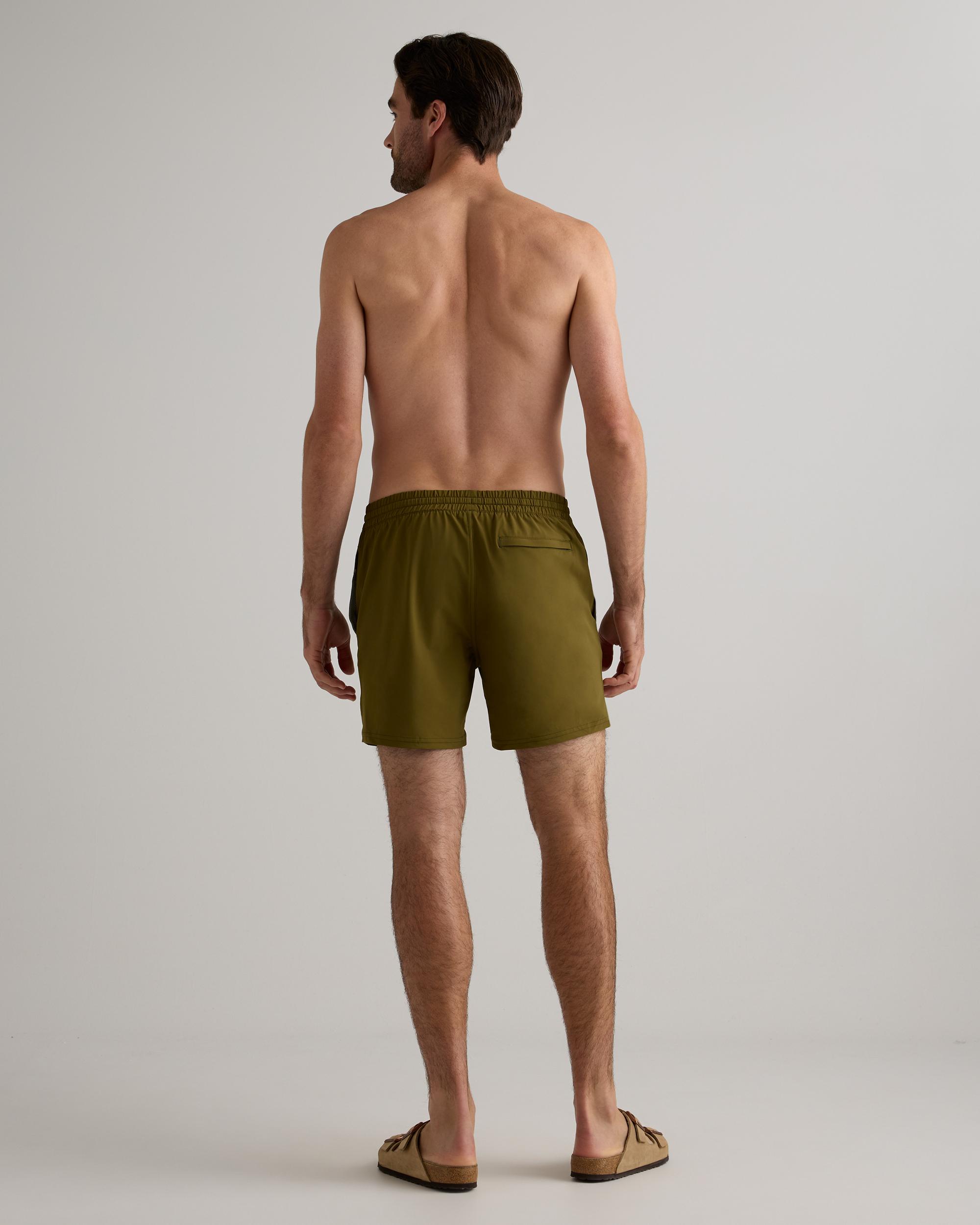 Our Italian Swim Trunk is the ultimate summer essential for the active man. Made from quick-drying, sun screen and oil resistant material, this swim trunk offers UPF50 protection for all-day wear. The Italian fabrication ensures durability, resisting fading, pilling, and snagging for long-lasting use. Whether you're hitting the beach, pool, or backyard BBQ, this brief-lined swim trunk will keep you looking and feeling your best. | Quince | Men's Italian Swim Trunk in Olive, Size XXL, Nylon/Spandex