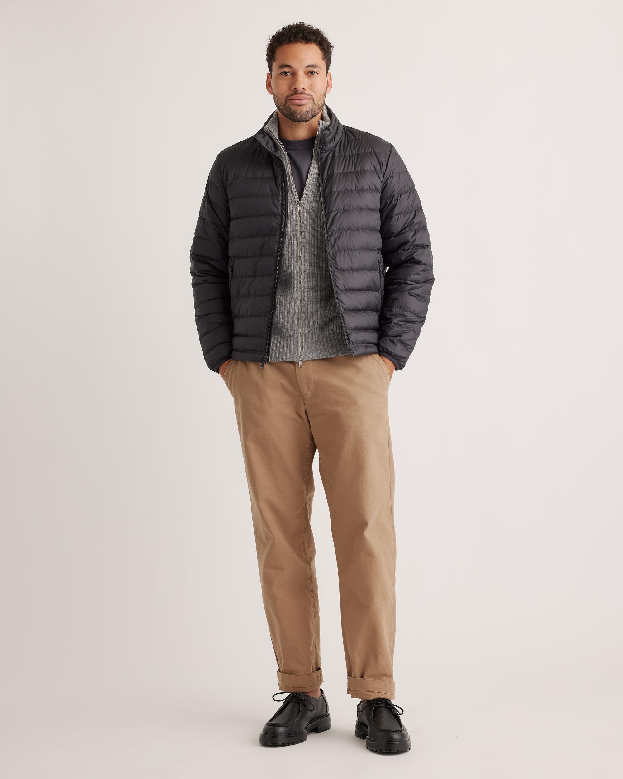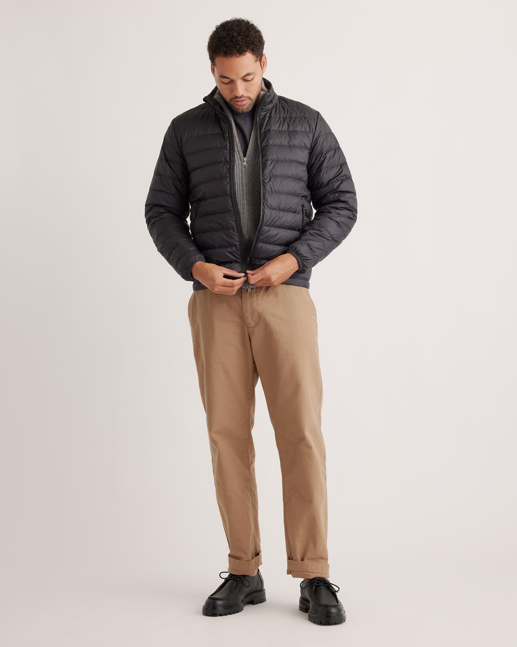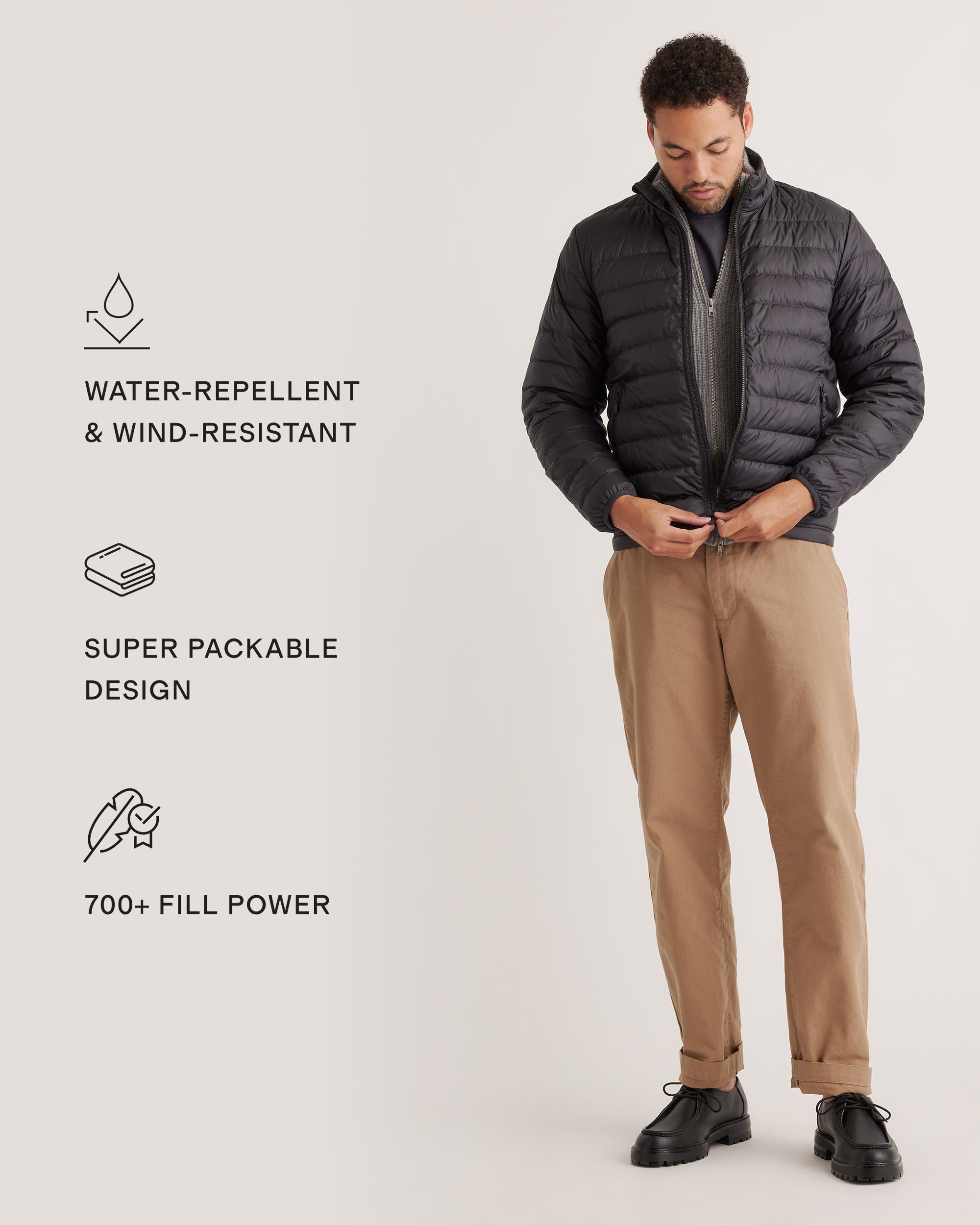Discover the ultimate blend of warmth and sustainability with our Lightweight Down Packable Puffer Jacket. Crafted using 100% recycled polyester and premium goose down, this lightweight jacket ensures you stay cozy without compromising on style. The adjustable bungee drawcord hem allows for a personalized fit, while the water-repellent and wind-resistant fabric ensures you're ready to take on any weather with confidence. Designed to be packable, it's your ideal travel companion for your next adventure! | Quince | Men's Lightweight Down Packable Puffer Jacket in Black, Size XL, Recycled Polyester