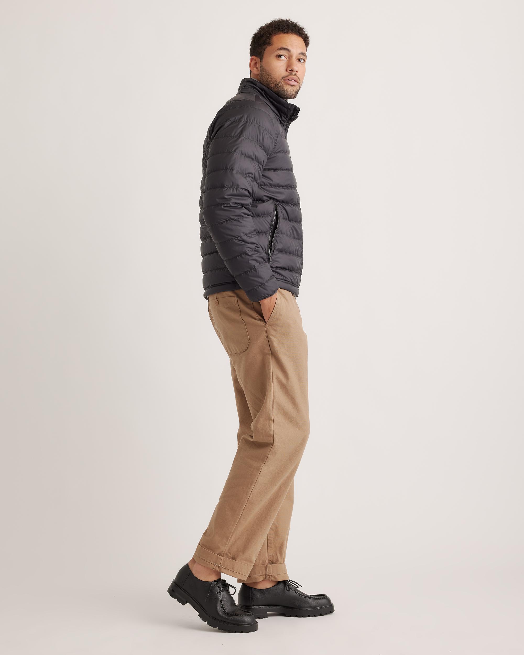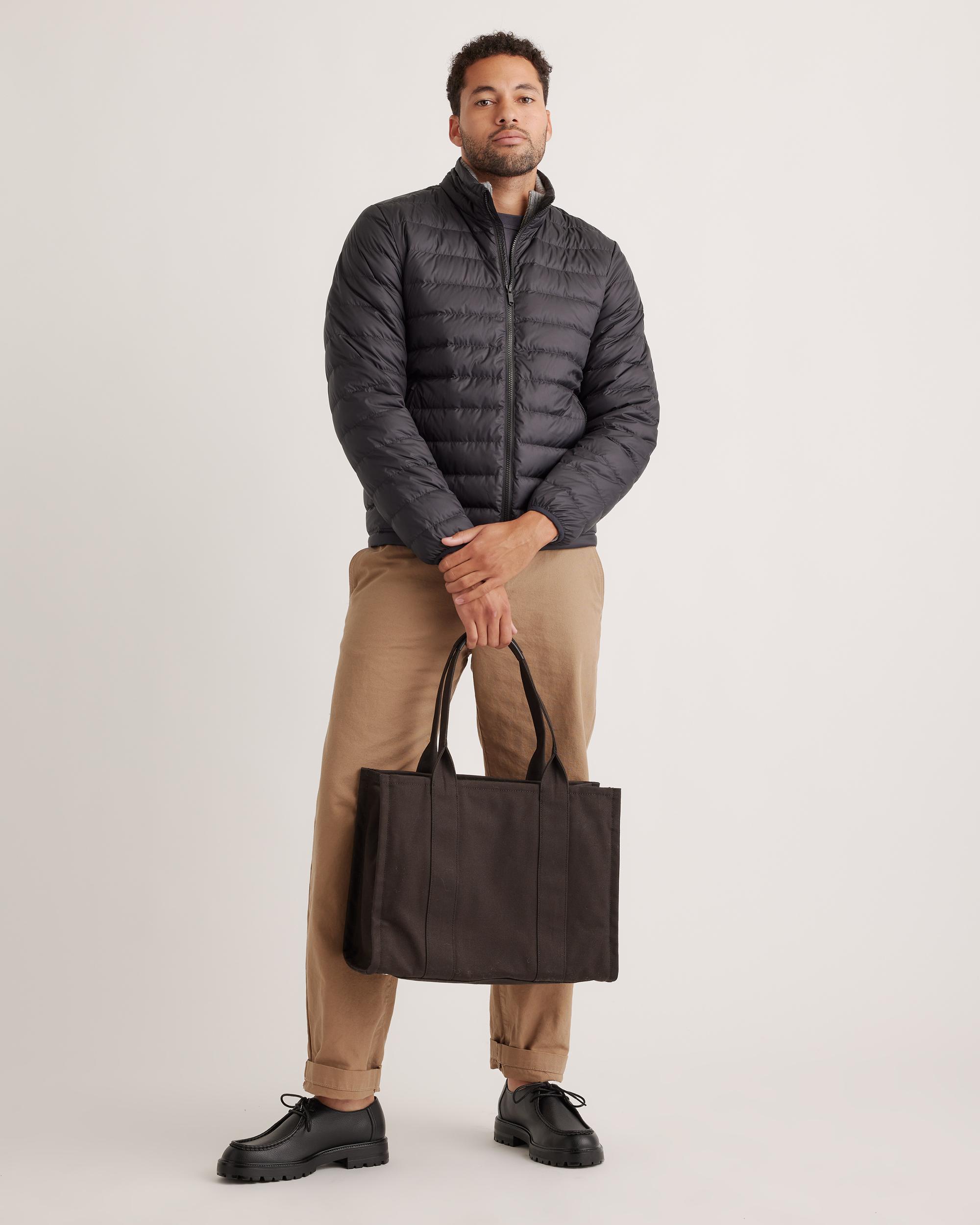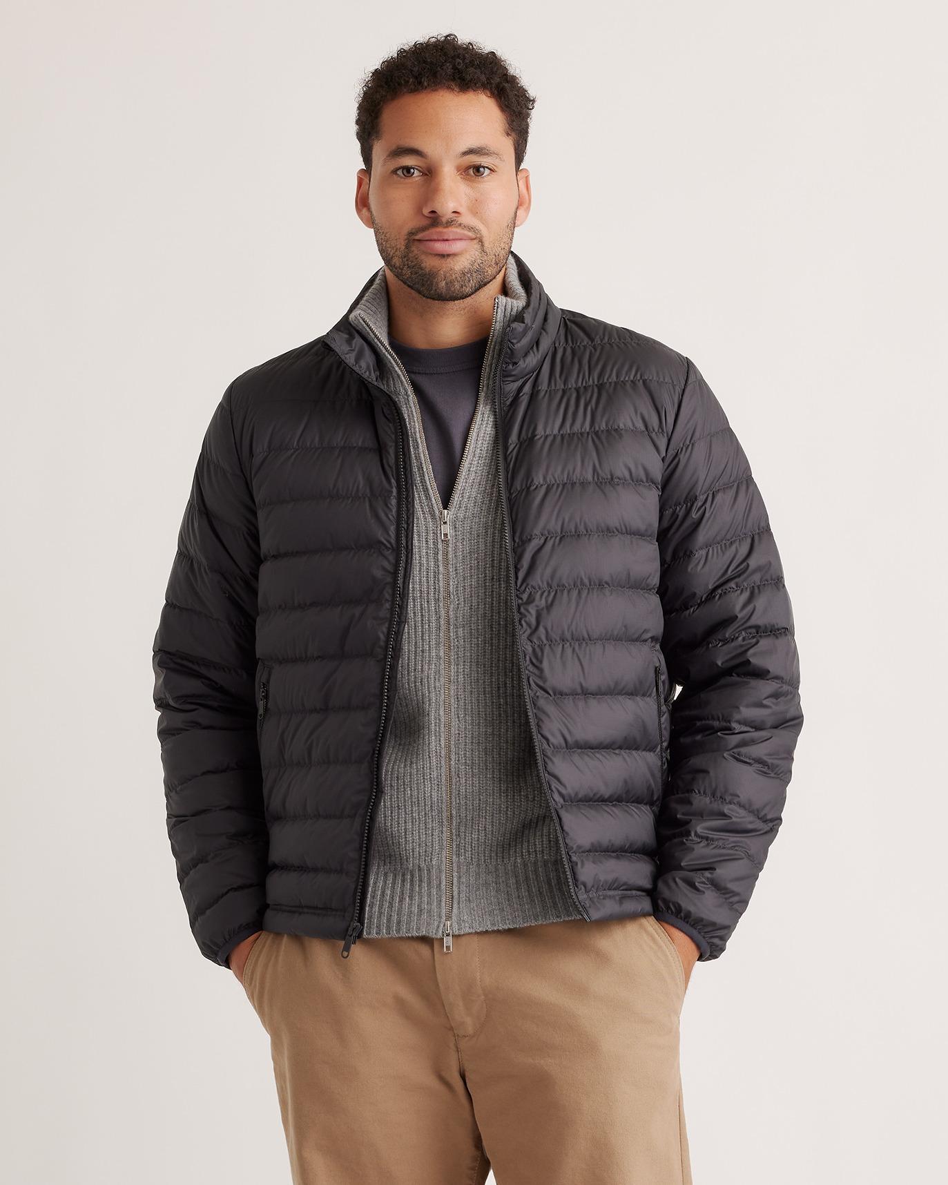 Discover the ultimate blend of warmth and sustainability with our Lightweight Down Packable Puffer Jacket. Crafted using 100% recycled polyester and premium goose down, this lightweight jacket ensures you stay cozy without compromising on style. The adjustable bungee drawcord hem allows for a personalized fit, while the water-repellent and wind-resistant fabric ensures you're ready to take on any weather with confidence. Designed to be packable, it's your ideal travel companion for your next adventure! | Quince | Men's Lightweight Down Packable Puffer Jacket in Black, Size XL, Recycled Polyester