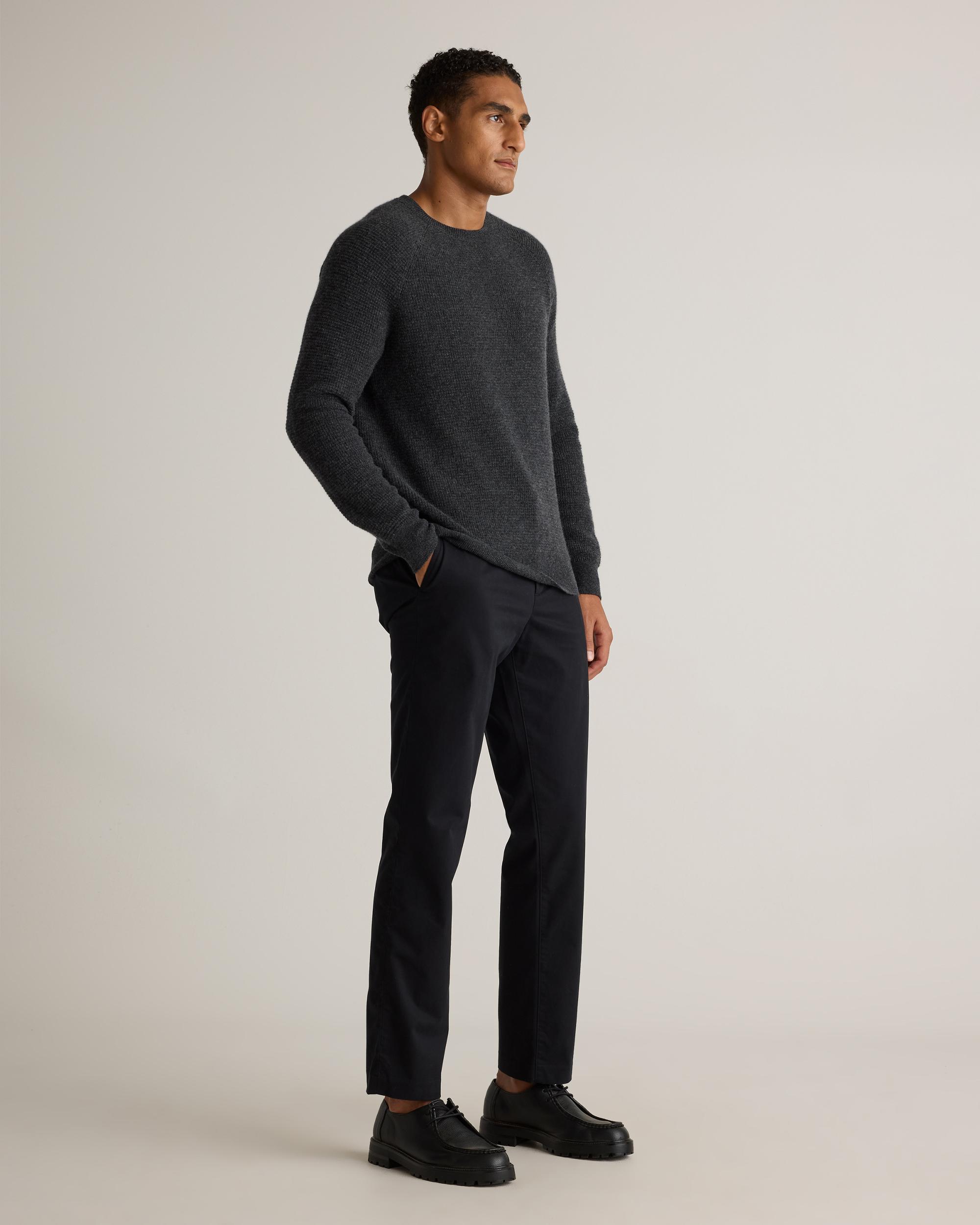 Elevate your wardrobe with our Men's Organic Cotton Blend Lightweight Dress Pants, where comfort meets sustainability without compromising style. Crafted from a blend of organic cotton and elastane, ensuring softness and breathability. Tailored for a modern, slim fit that seamlessly transitions from office to evening events. | Quince | Men's Lightweight Dress Pants in Black, Size 32X34, Organic Cotton