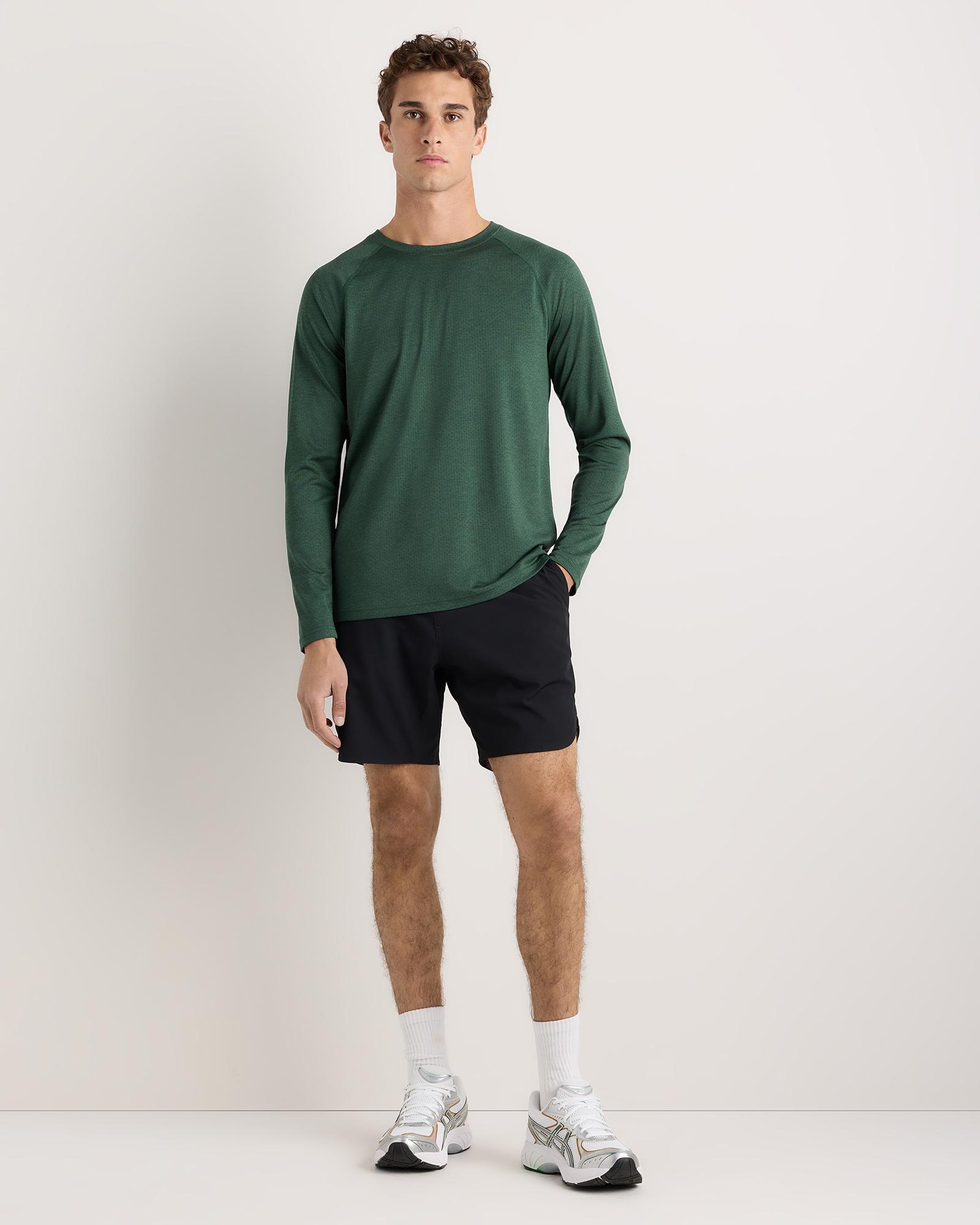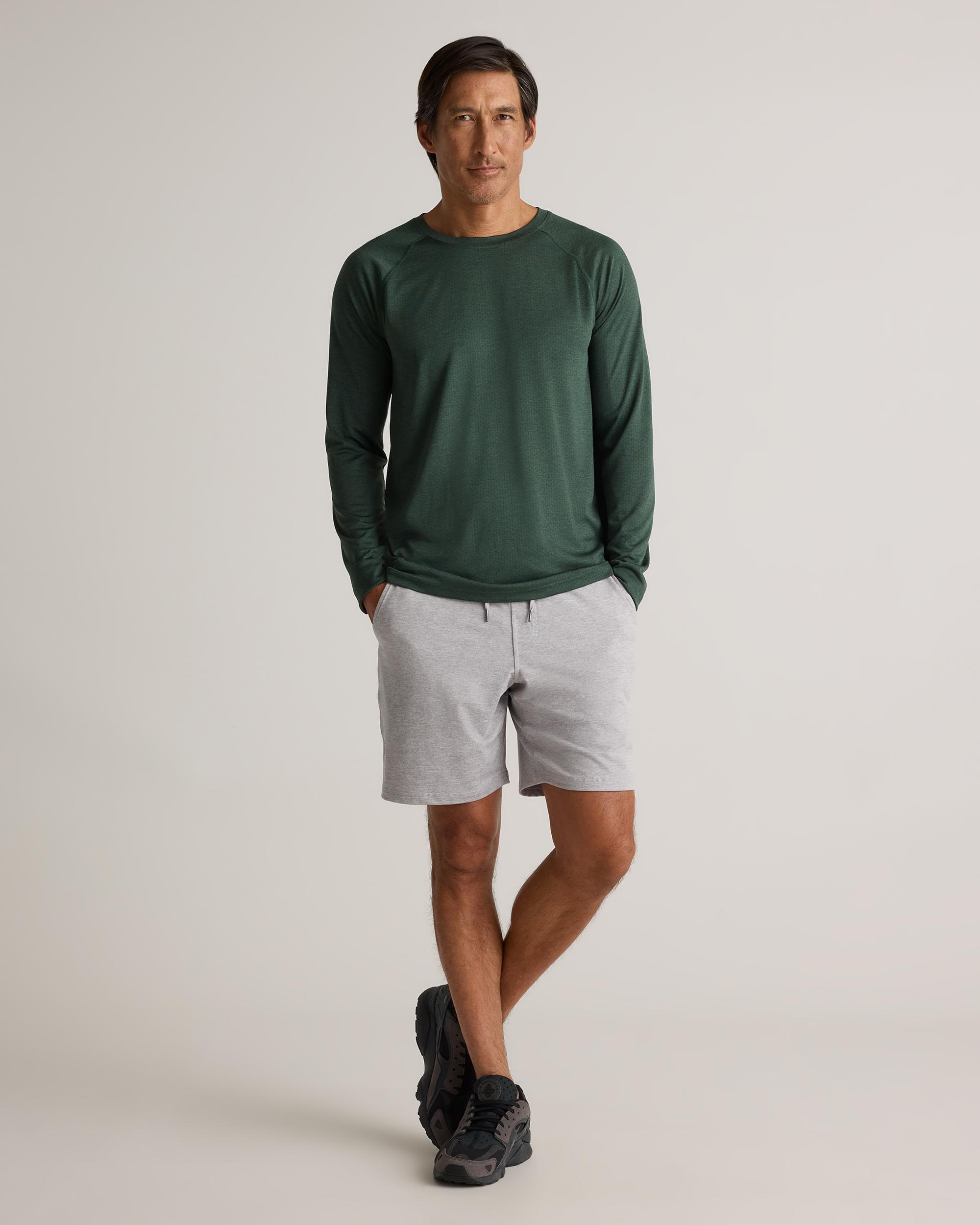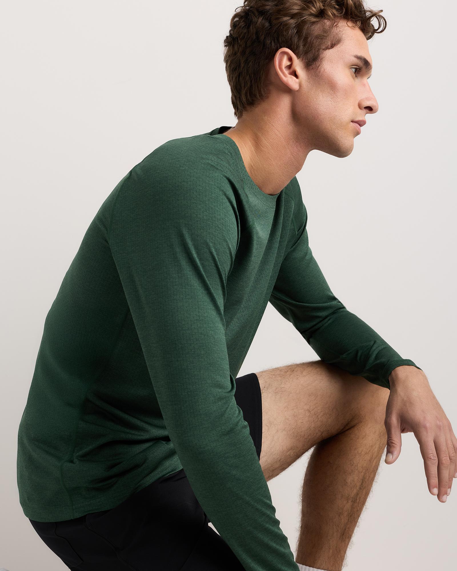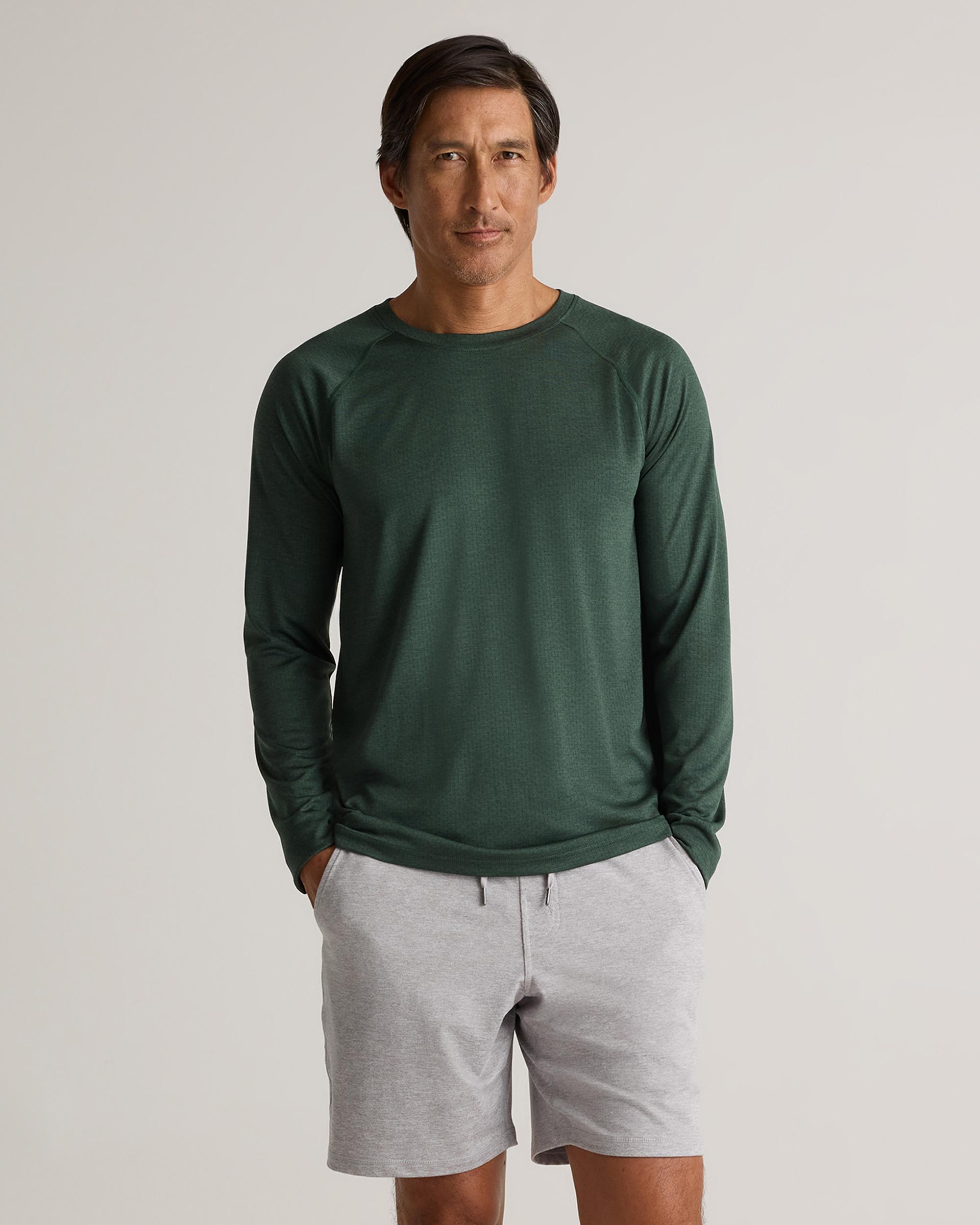 The Mesh Performance Training Long Sleeve Tee is the ultimate workout companion for those intense training sessions. Made with fast-drying, anti-odor fabric, this hoodie is designed to keep you feeling fresh and comfortable no matter how hard you push yourself. The mesh jacquard construction provides breathability to help regulate your body temperature, while you heat up during your training session. Stay cool, dry and looking good during your high intensity training. | Quince | Men's Mesh Performance Training Long Sleeve T-Shirt in Heather Olive, Size Large, Recycled Polyester