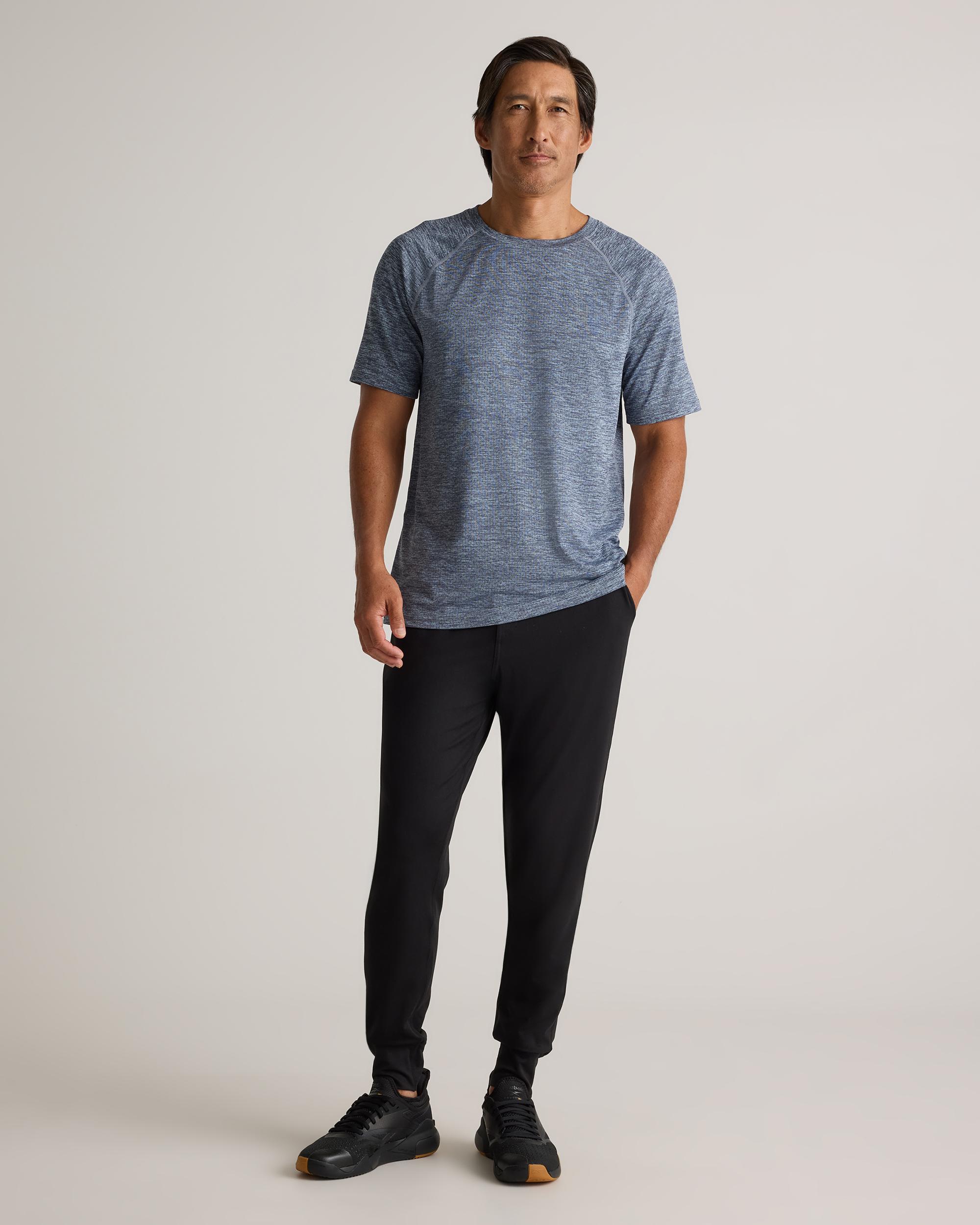The Mesh Performance Training Tee is the ultimate workout companion for those intense training sessions. Made with fast-drying, anti-odor fabric, this hoodie is designed to keep you feeling fresh and comfortable no matter how hard you push yourself. The mesh jacquard construction provides breathability to help regulate your body temperature, while you heat up during your training session. Stay cool, dry and looking good during your high intensity training. | Quince | Men's Mesh Performance Training T-Shirt in Heather Blue, Size Large, Recycled Polyester