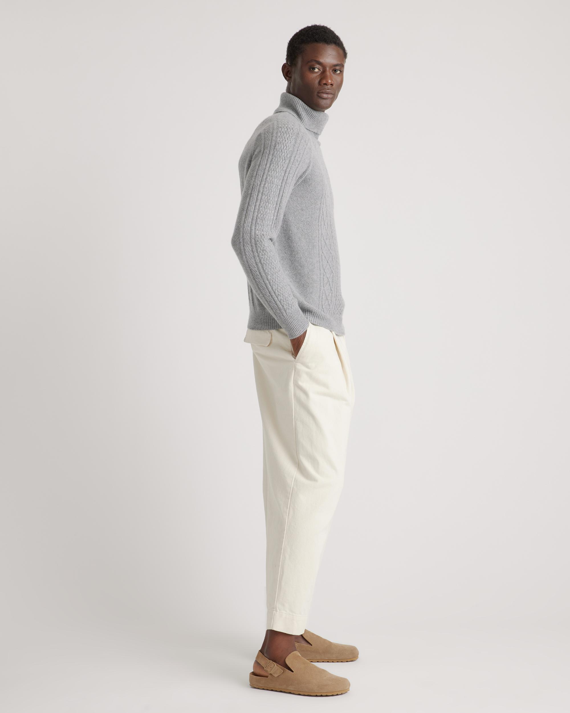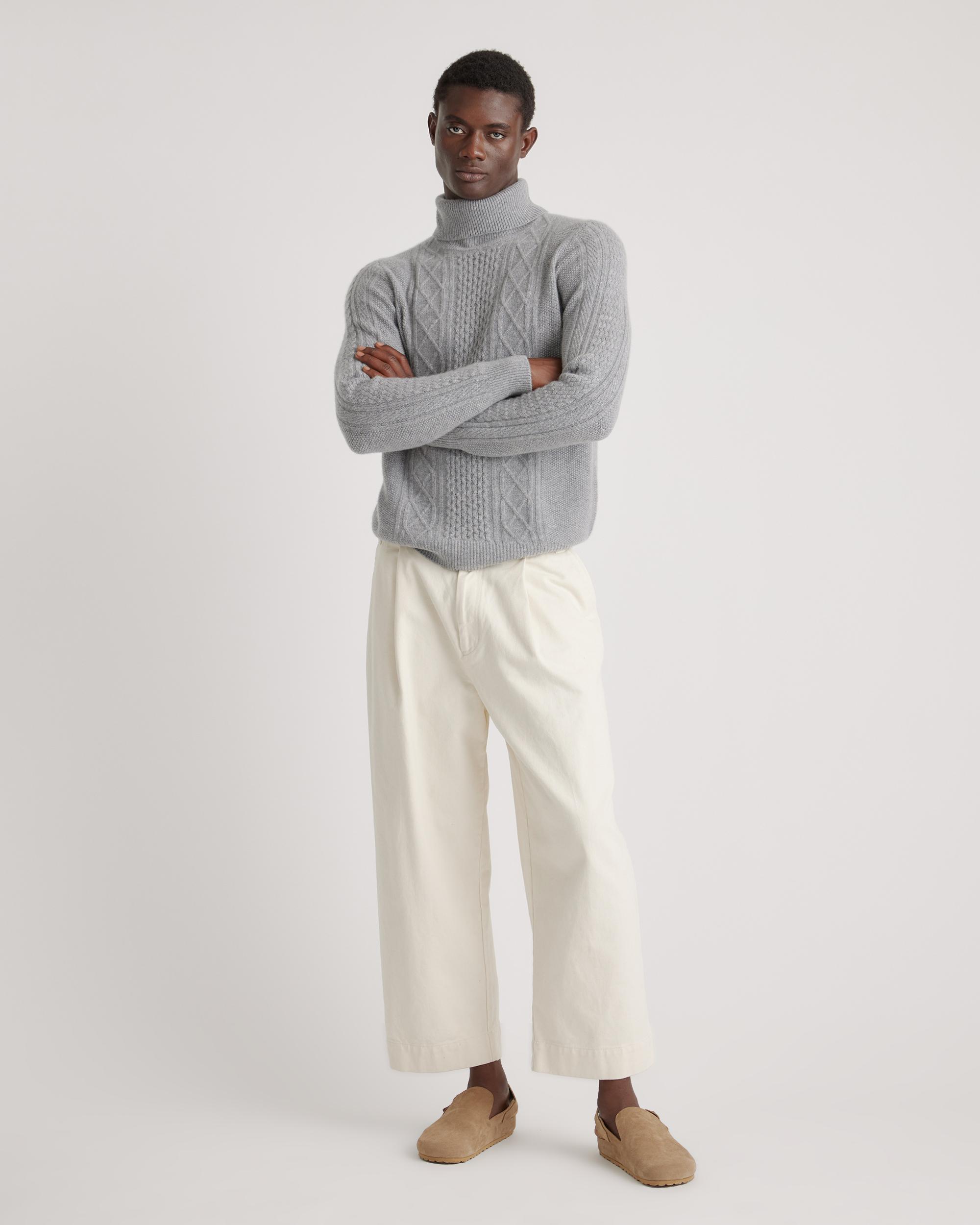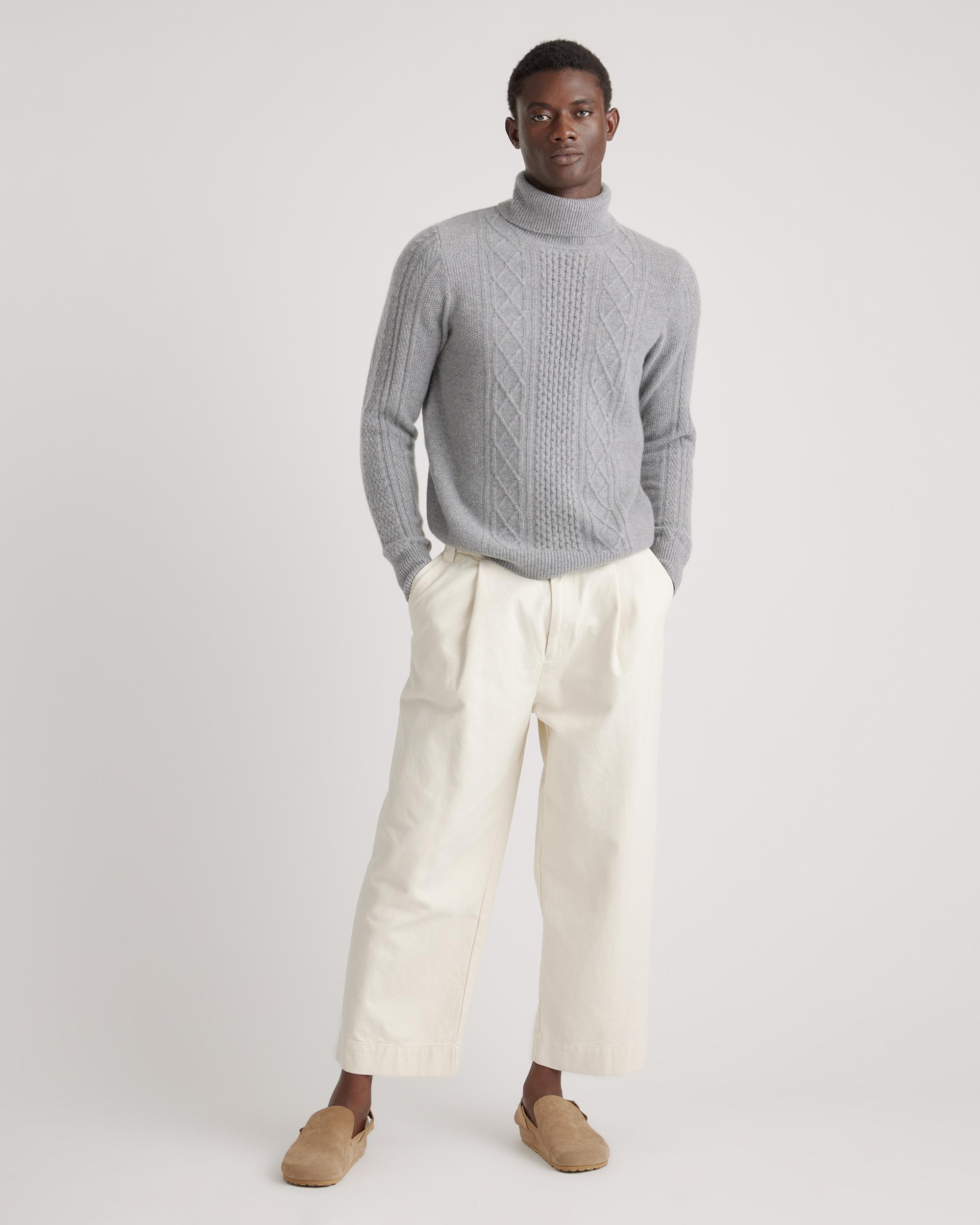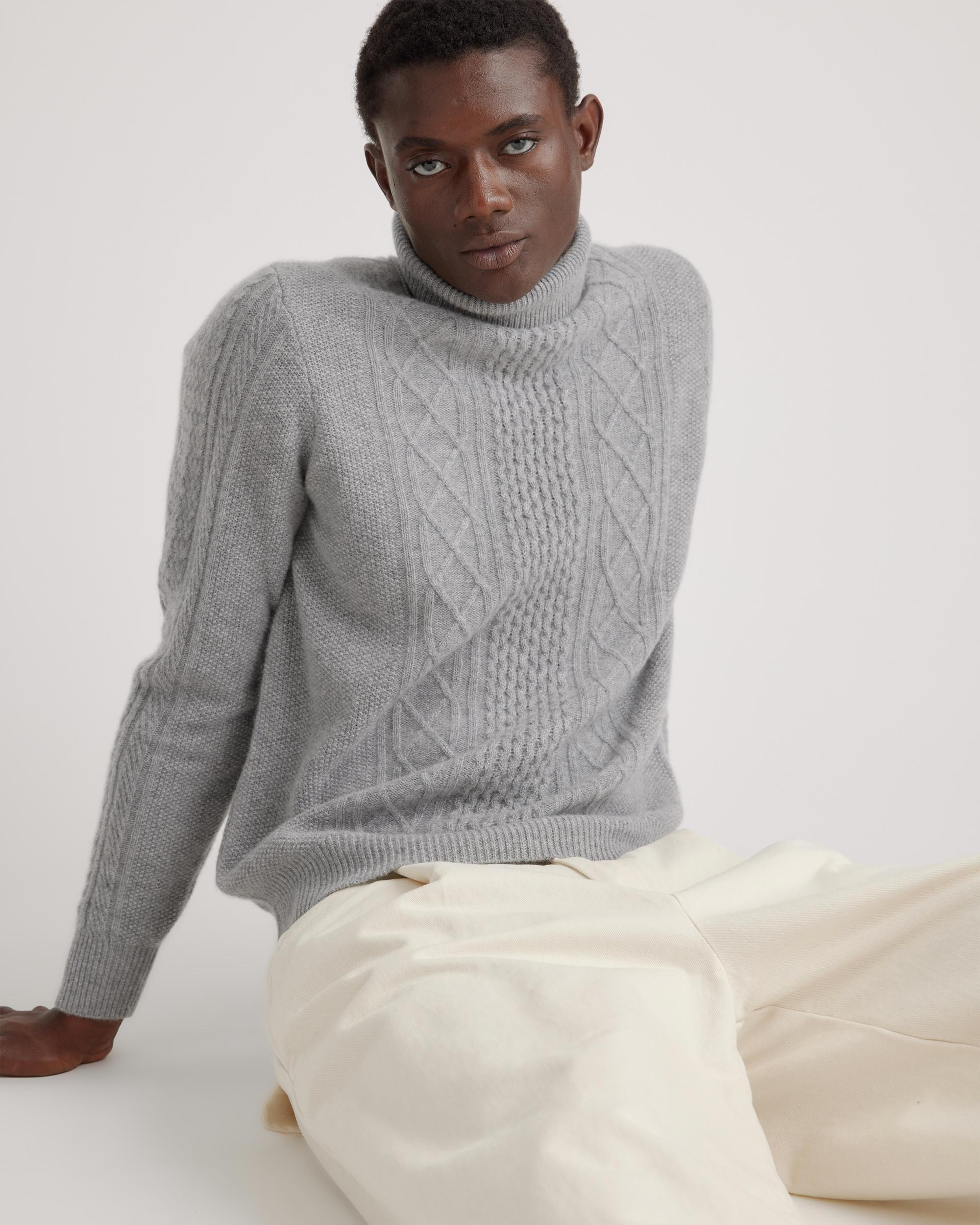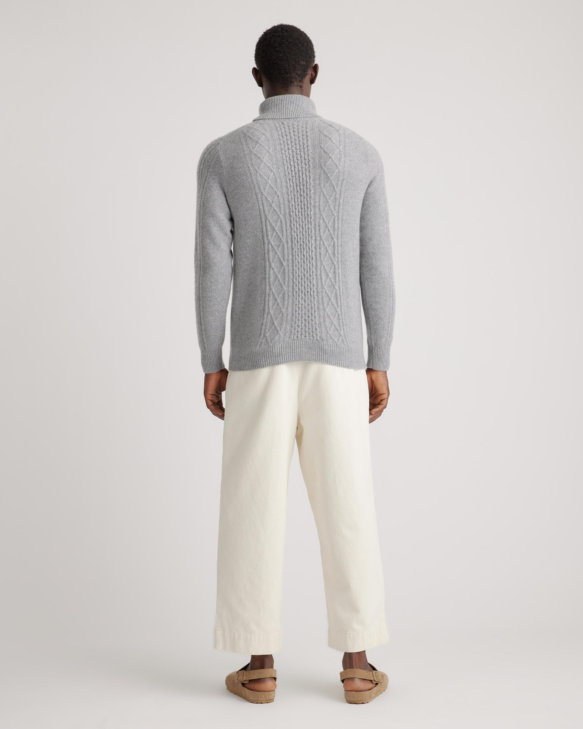 Yes, this is the cashmere that made us famous. That ultra soft and warm cashmere was the starting point of this turtleneck sweater and its classic cable knit. Cozy and wearable, you'll feel even better about the fact that its Grade-A Mongolian cashmere is ethically produced. | Quince | Men's Mongolian Cashmere Cable Turtleneck Sweater in Heather Grey, Size Small