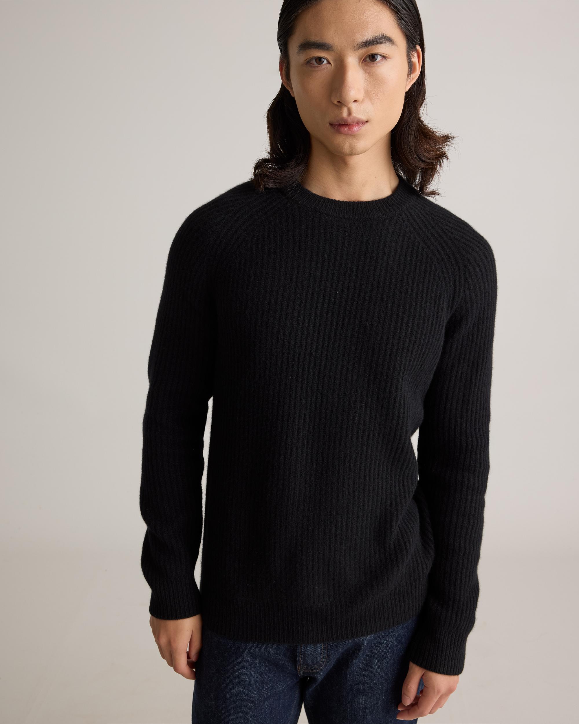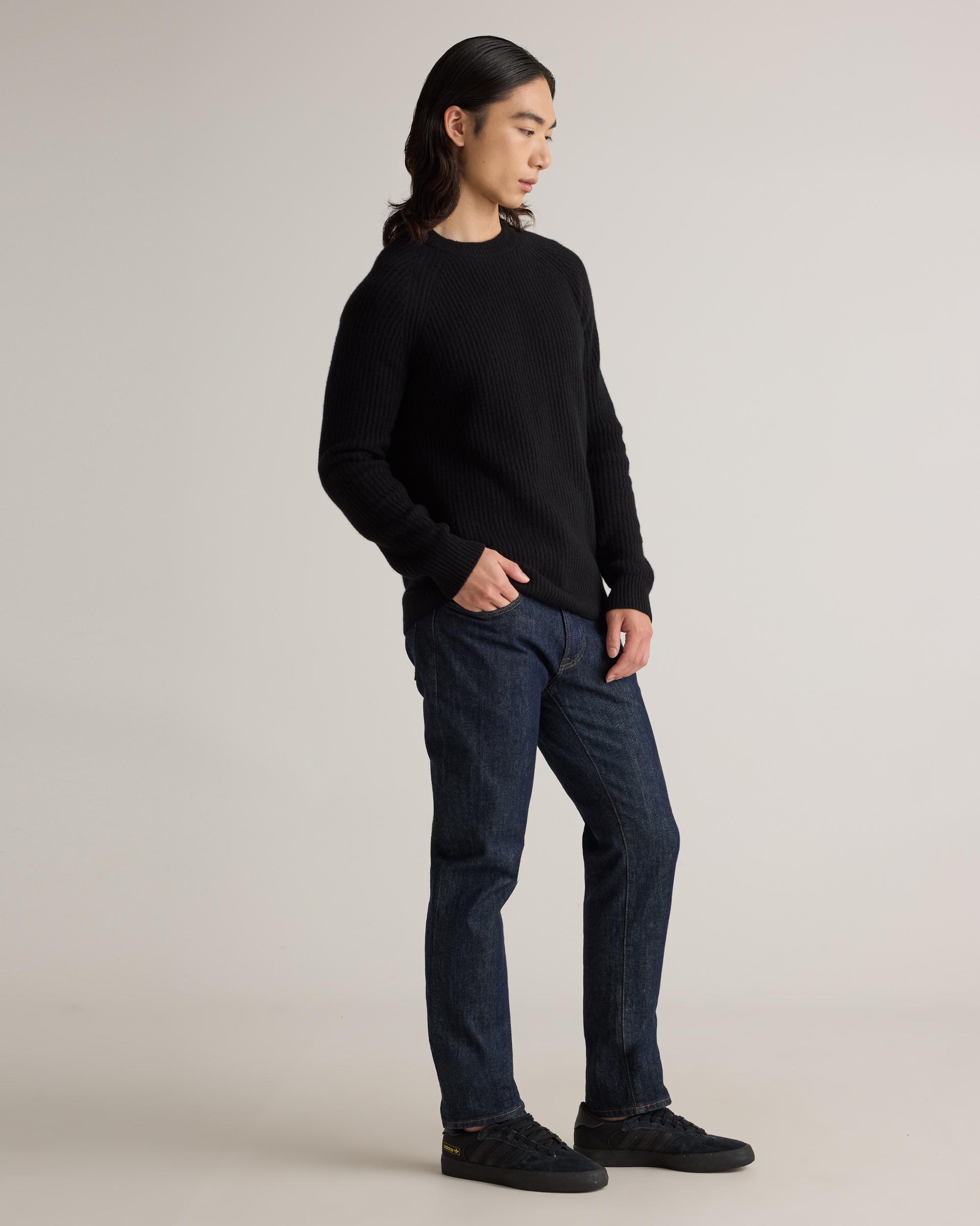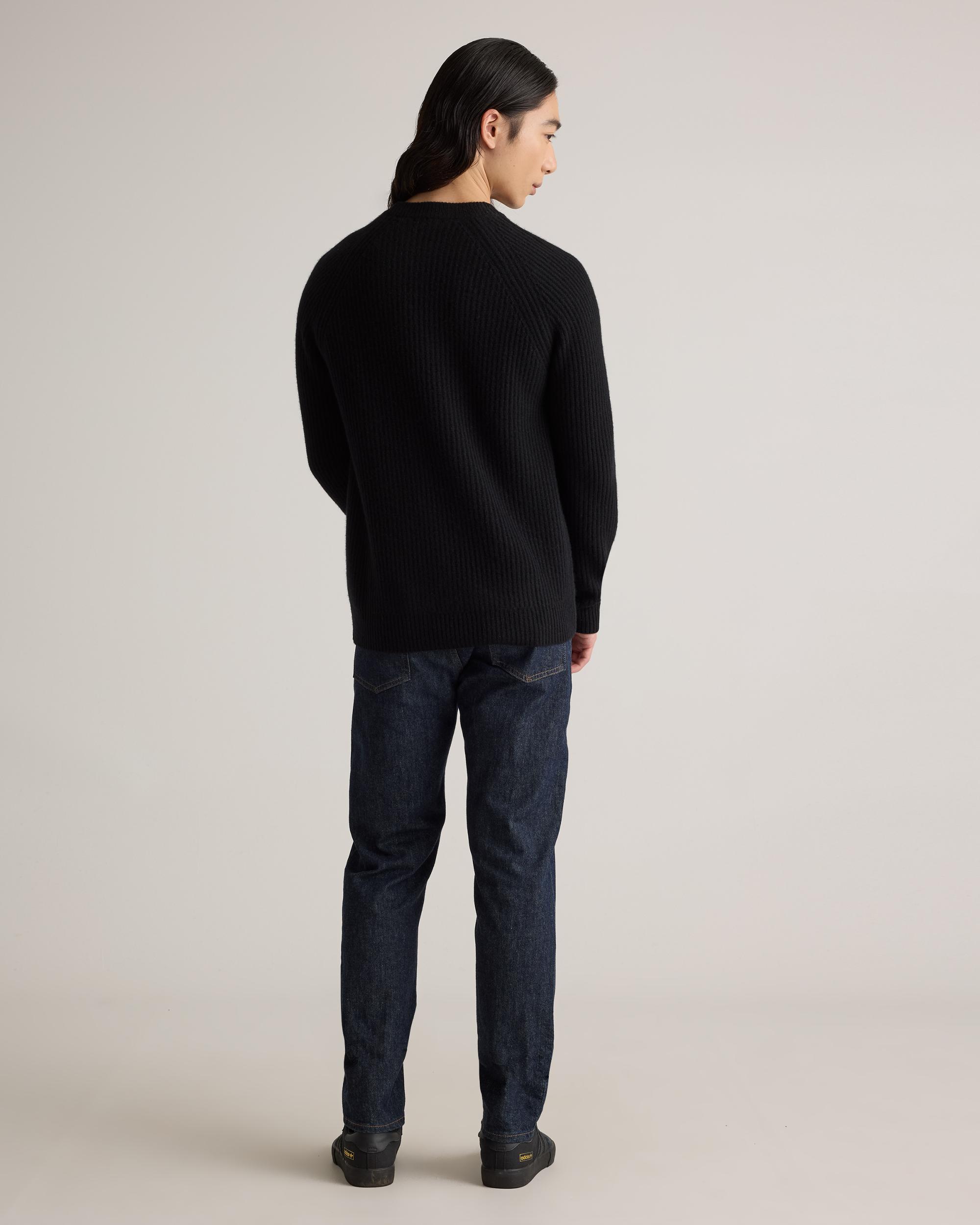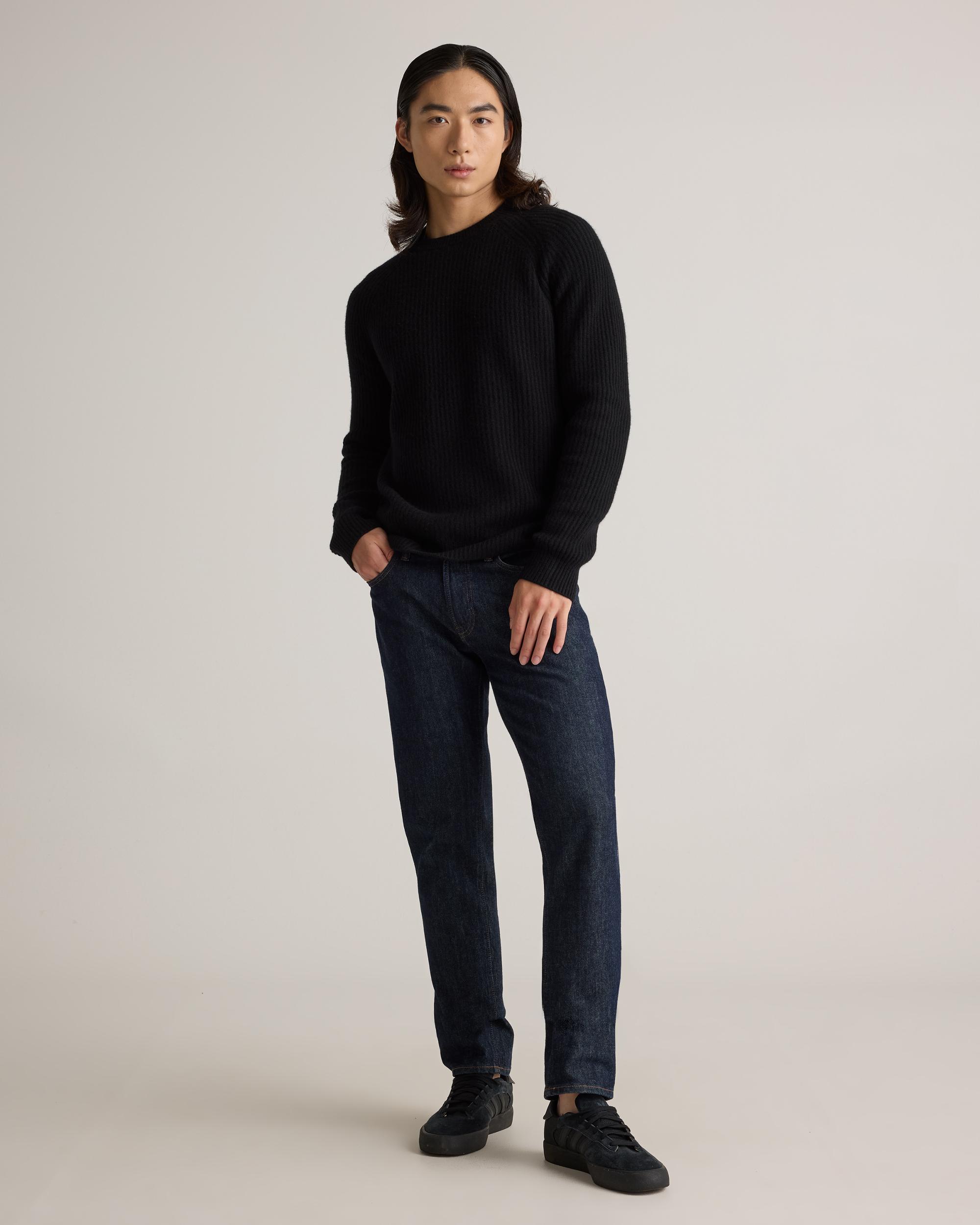 We're a little bit famous for our cashmere crew. And rightly so. For this style, we took the classic cashmere sweater and gave it a premium ribbed look with raglan sleeves for max comfort. Soft, and cozy, it's perfect for just about any occasion. We've upgraded it to be smoother, cozier, and more substantial than ever, with less pilling. | Quince | Men's Mongolian Cashmere Fisherman Crewneck Sweater in Black, Size Large
