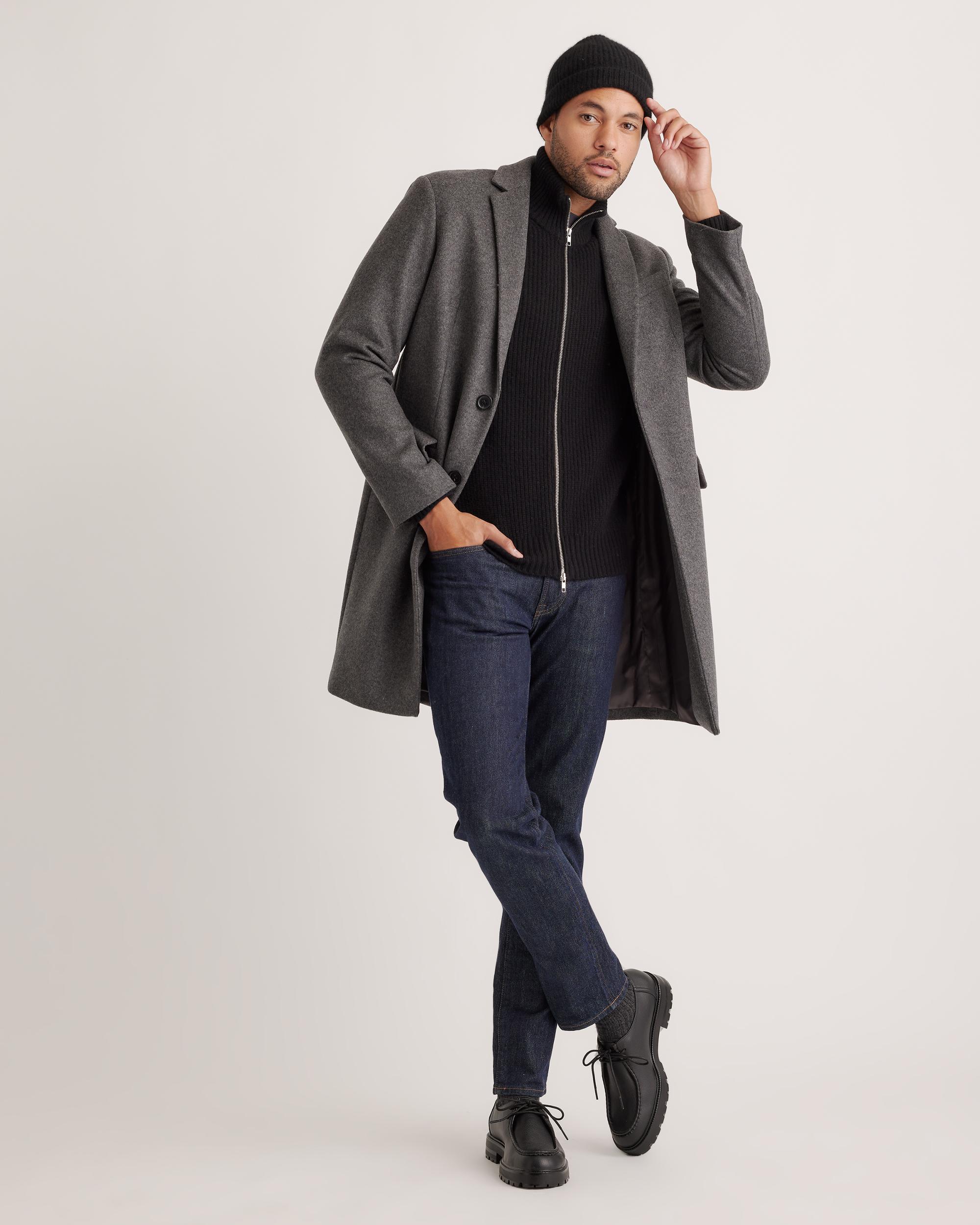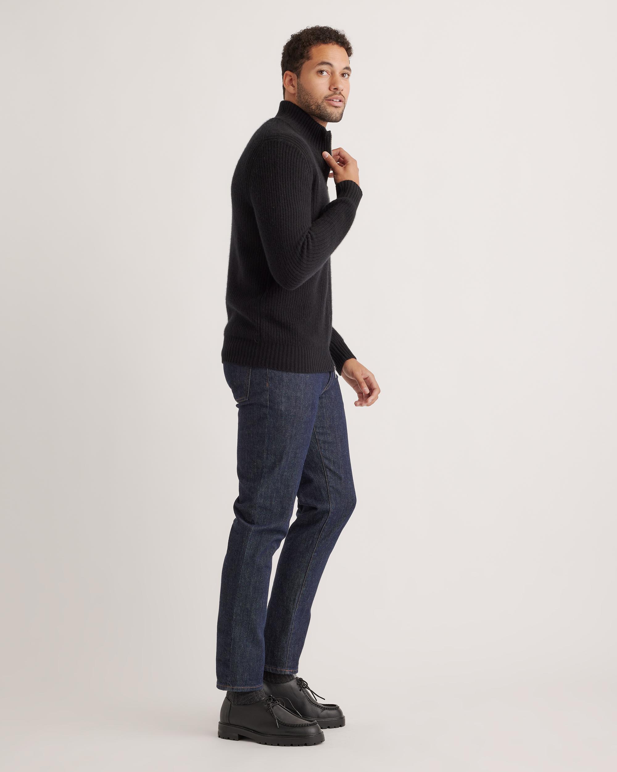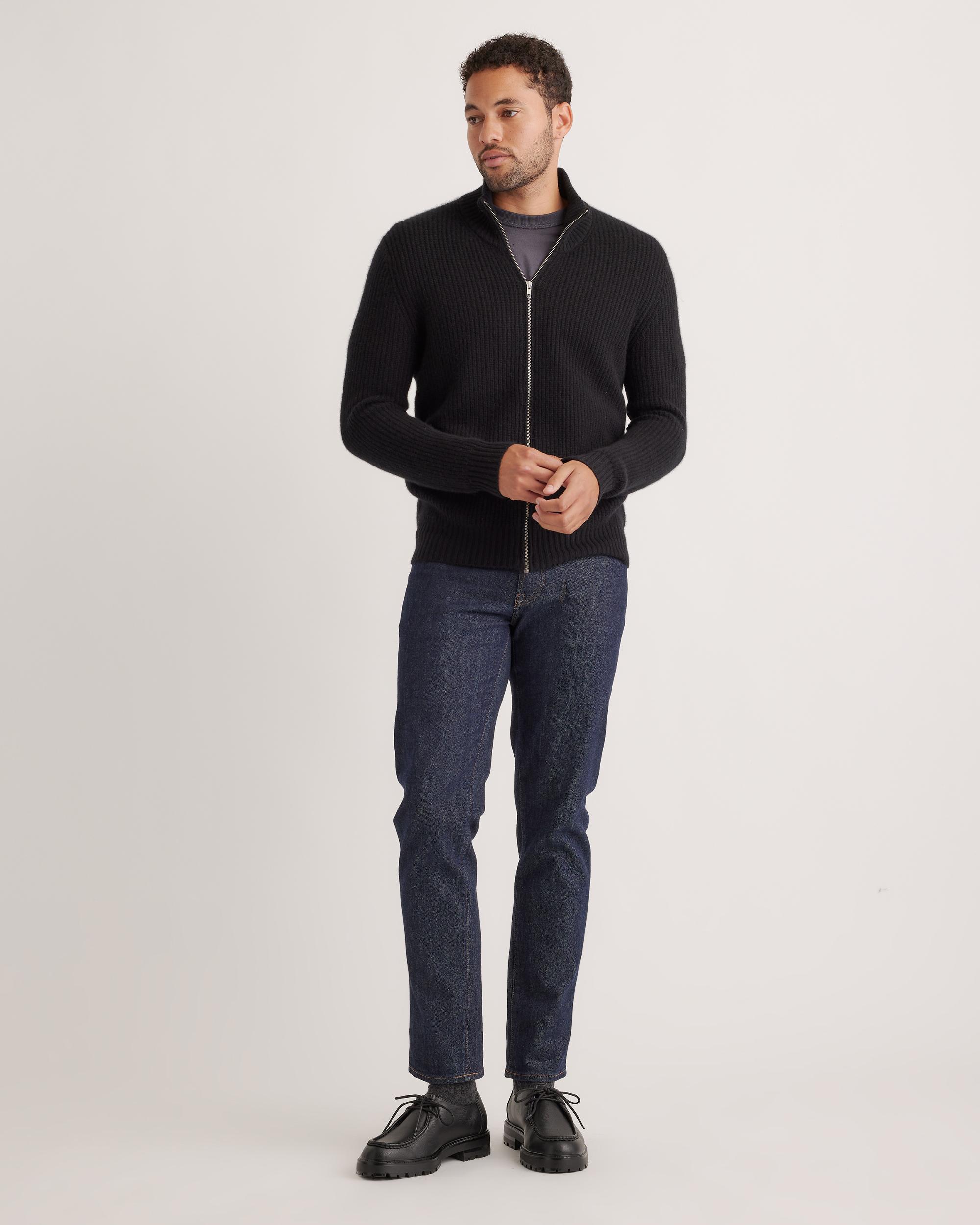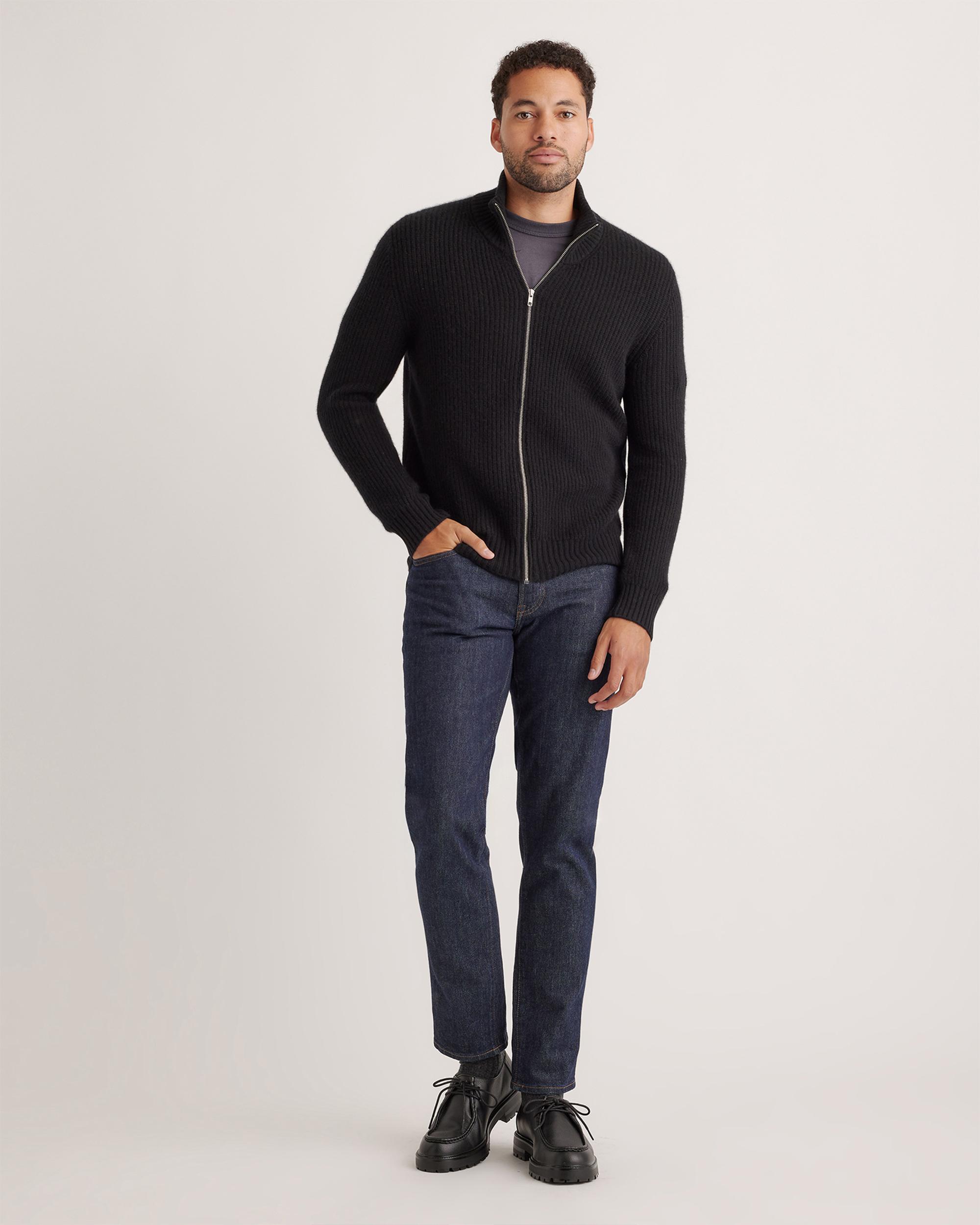 Channel quiet luxury with our Mongolian Cashmere Fisherman Full Zip Sweater. We've upgraded it to be smoother, cozier, and more substantial than ever, with less pilling. It's incredibly soft, supremely cozy, and made to last, giving off that casually cool vibe. Easy to layer, it pairs perfectly over your favorite t-shirt or under a jacket as the temperature starts to drop. Designed with the classic fisherman ribbed texture, this thick-gauge knit looks good and feels even better. | Quince | Men's Mongolian Cashmere Fisherman Full Zip Sweater in Black, Size Medium