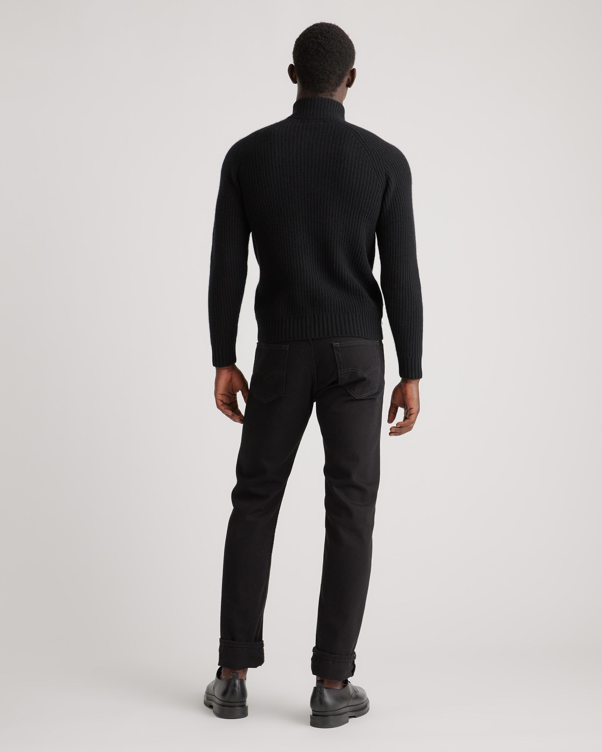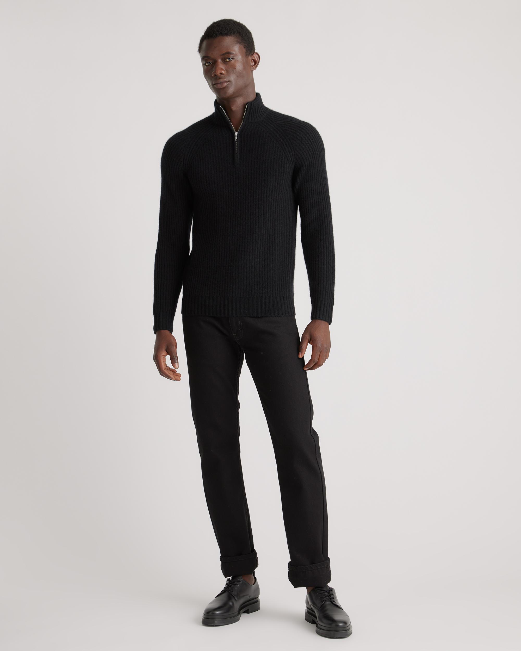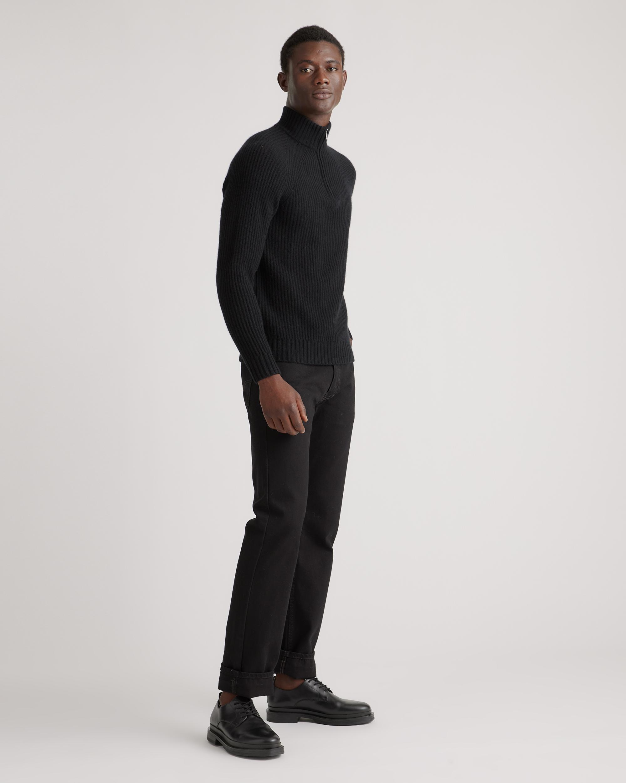 Channel a coastal classic vibe with our Mongolian Cashmere Fisherman Quarter Zip Sweater—it's ultra soft, cozy, and made to last. Plus it's just right over your favorite t-shirt or under a jacket when the temps starts to drop. We've upgraded our signature cashmere to be smoother, cozier, and more substantial than ever, with less pilling. Designed with that timeless fisherman ribbed texture, this thick-gauge knit will be your go-to all season long. | Quince | Men's Mongolian Cashmere Fisherman Quarter Zip Sweater in Black, Size Medium