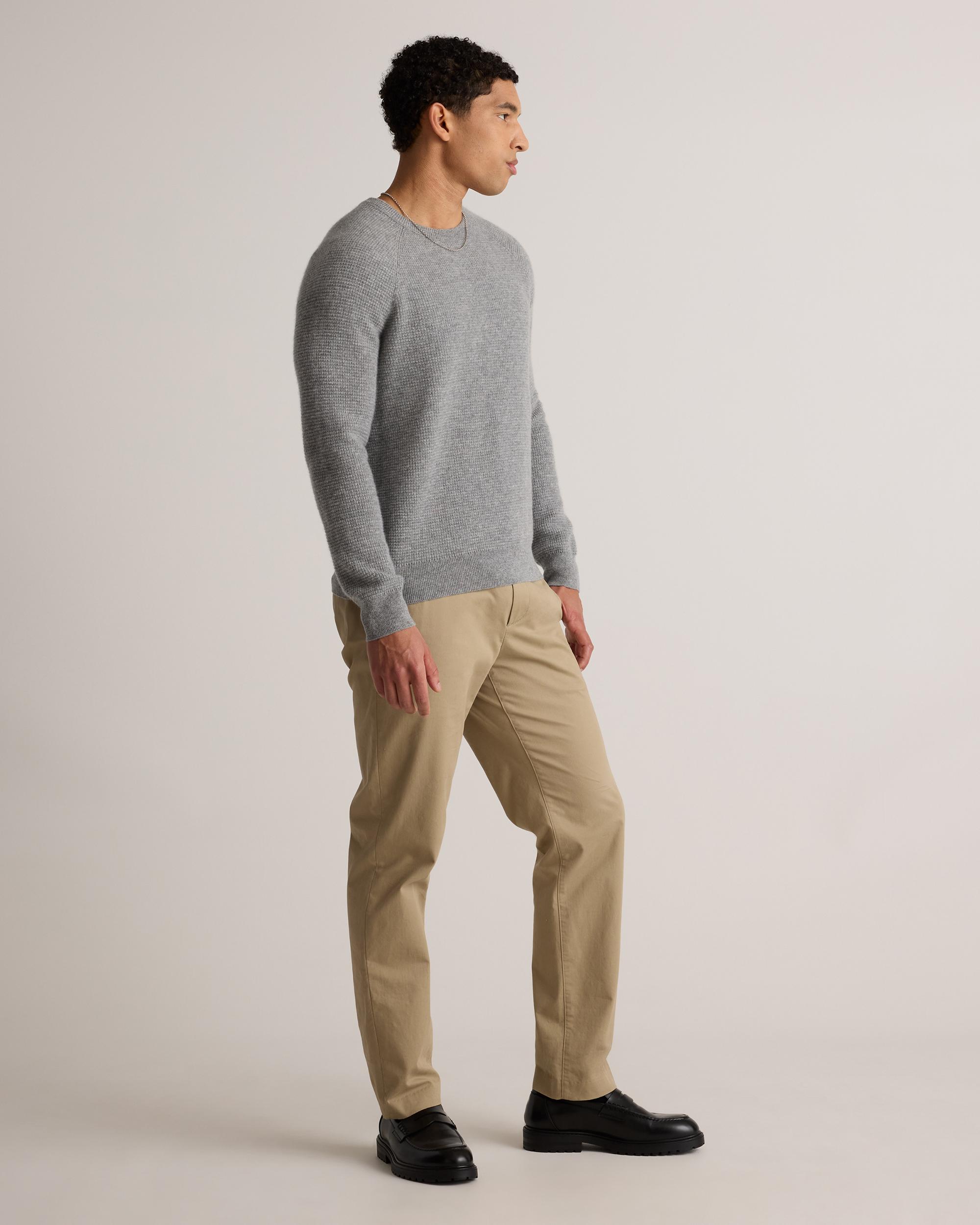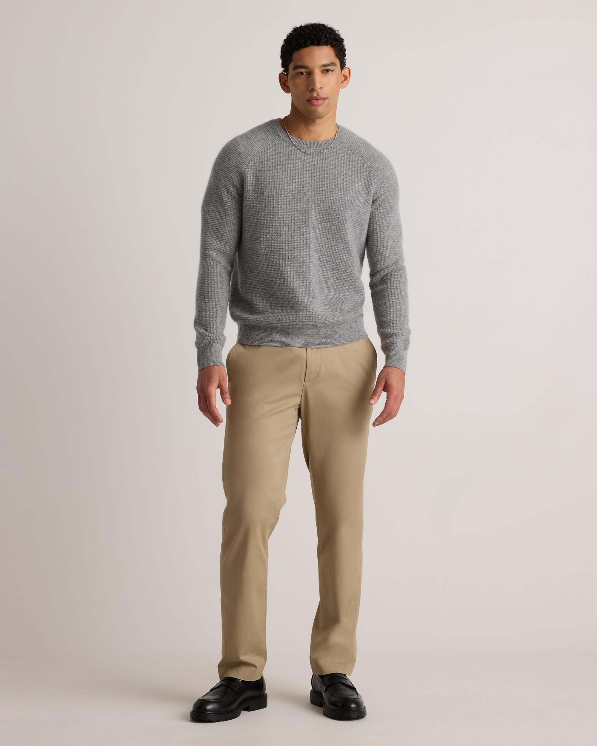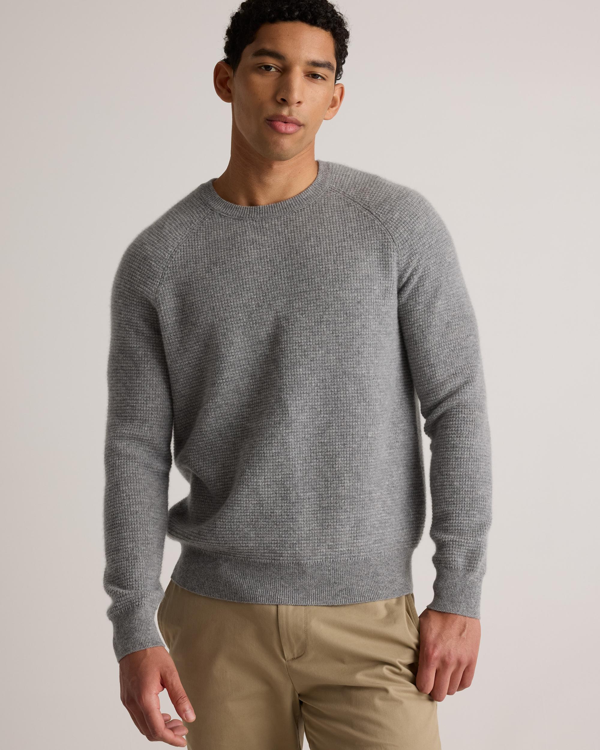 Elevate your everyday wear with our Mongolian Cashmere Waffle Sweatshirt. Dress it up for a night out or down to lounge. Crafted with a denser, more substantial knit, our Signature cashmere offers unmatched warmth and softness for cooler weather. Designed to last and feels smoother and richer with every wear. | Quince | Men's Mongolian Cashmere Waffle Sweatshirt in Heather Grey, Knit Sweaters, Size Small