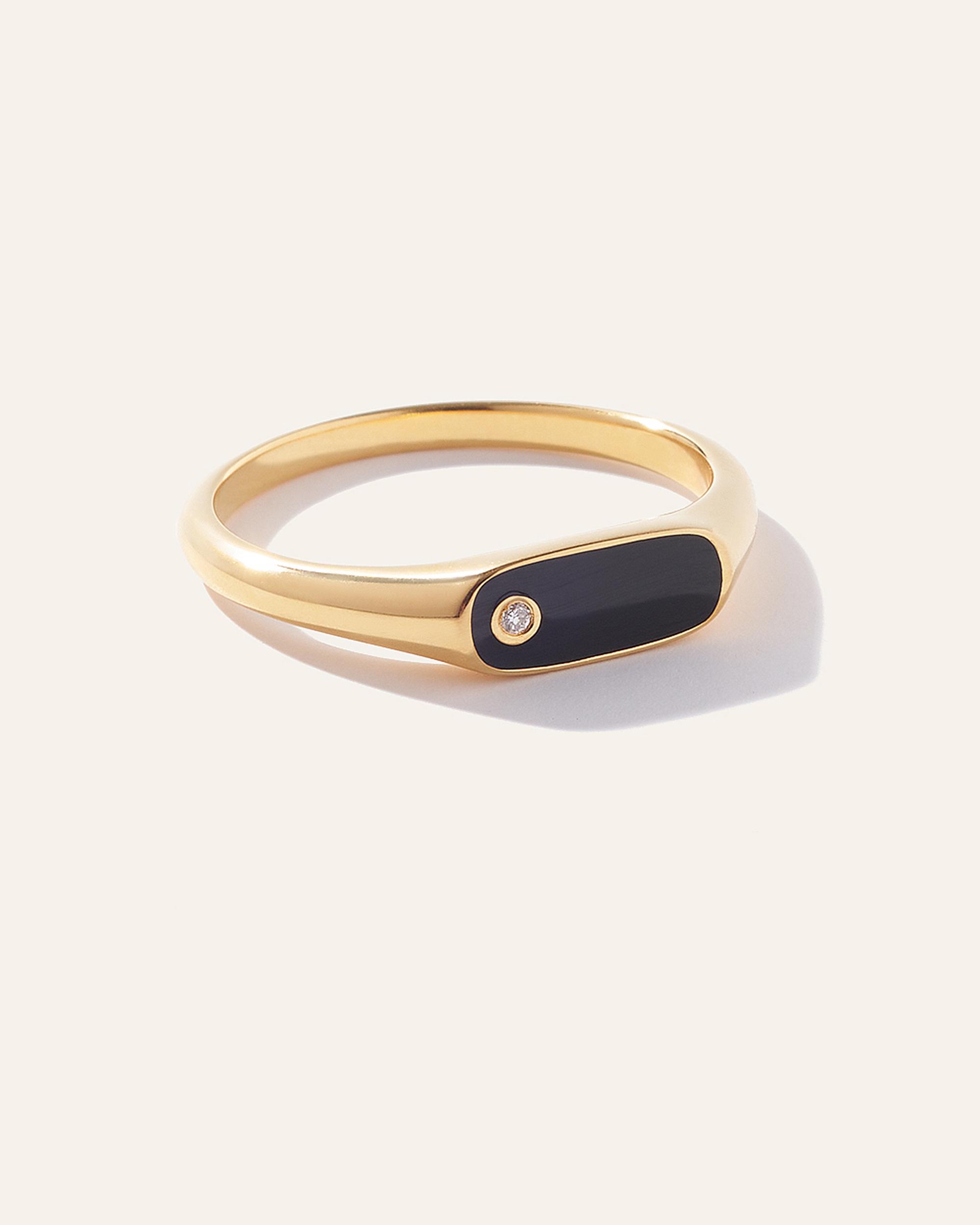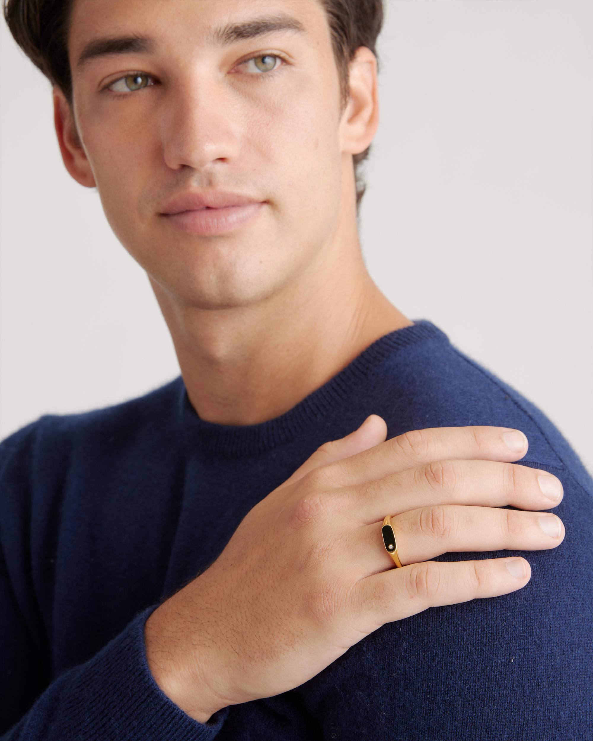Crafted in 18K Gold Vermeil, the Oblong Bezel Diamond Signet Ring features a unique oblong shape that sets it apart from traditional ring designs. The bezel set diamond offers a nice contrast to the black enamel, making this the perfect statement piece. | Quince | Men's Oblong Bezel Diamond Signet Ring in Gold Vermeil, Size 11.5