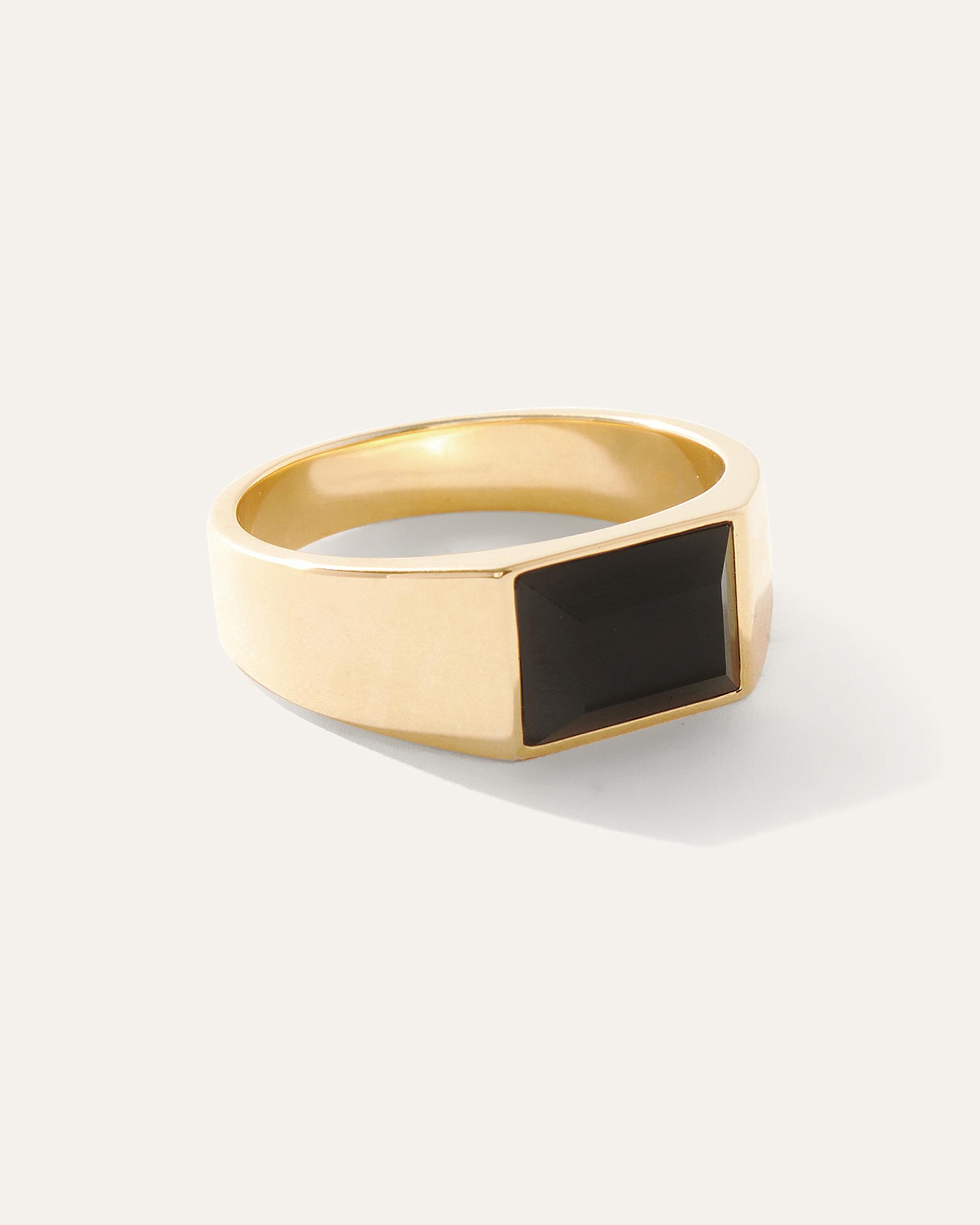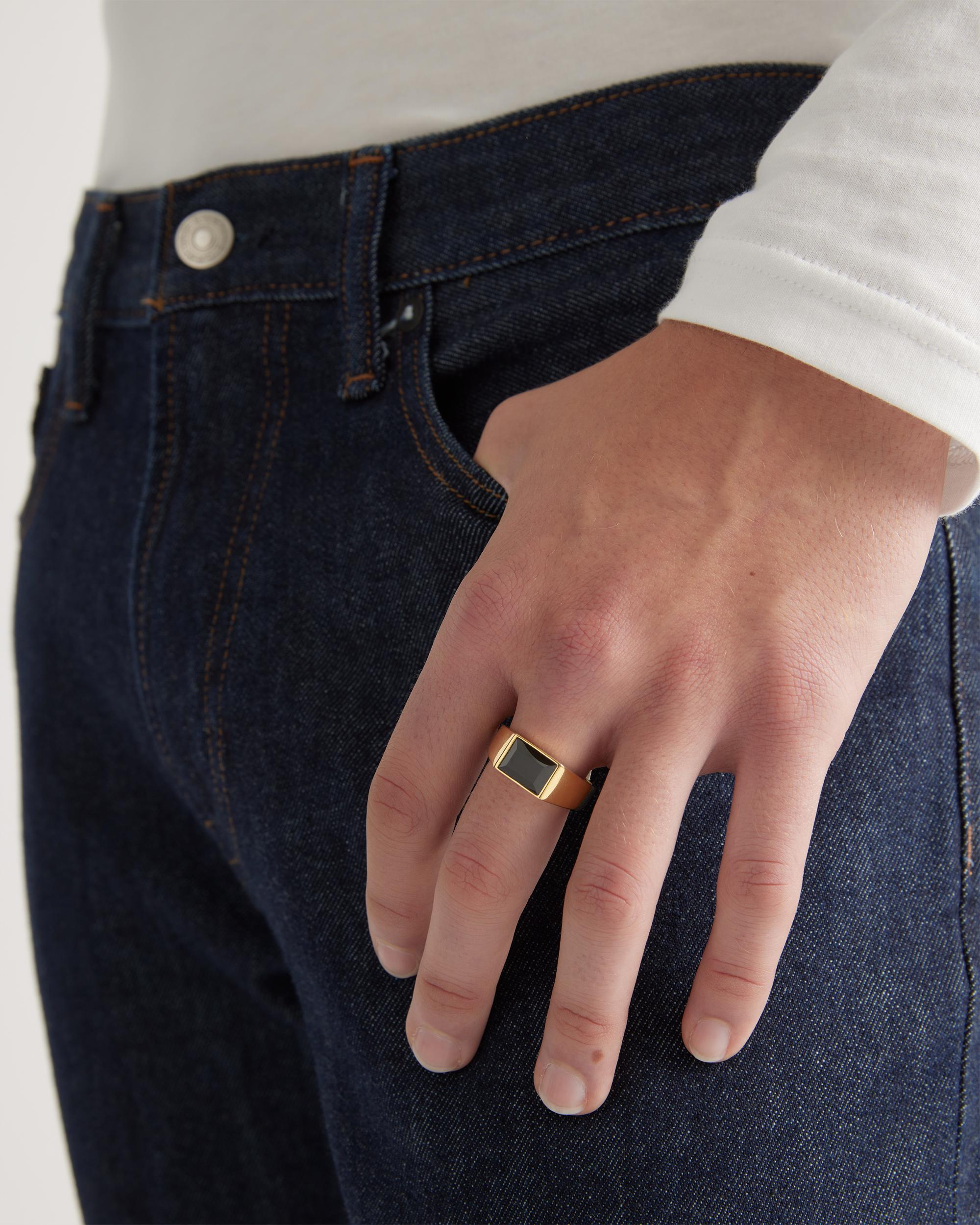 Go back to black with the Onyx Rectangular Ring. Crafted in 18K Gold vermeil, this piece will make a statement with any outfit, day or night. Gold vermeil is sterling silver layered with a thick layer of 18k gold, which is much higher quality than standard gold plating. | Quince | Men's Onyx Rectangular Ring in Gold Vermeil, Size 7.5