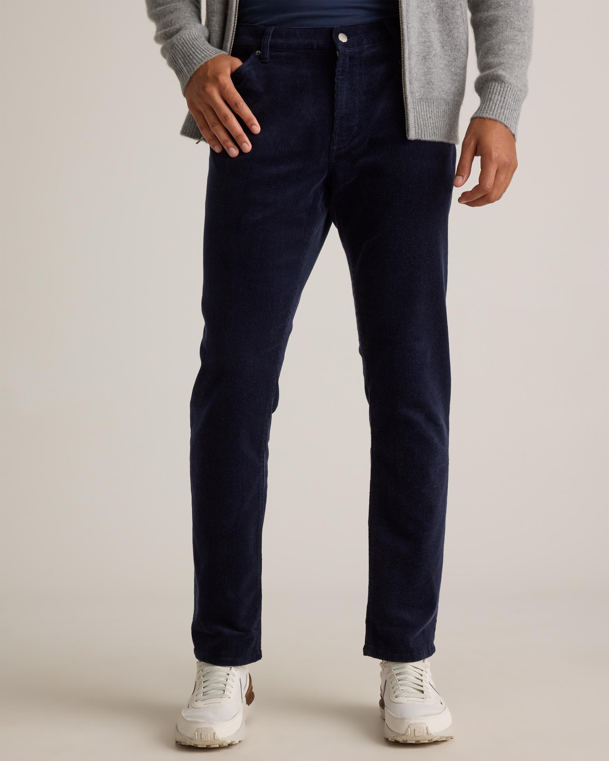 Time to update your pants drawer? Meet our Organic Stretch Corduroy 5-Pocket Pants, made from a premium 11-wale stretch corduroy and designed with a sleek slim fit. This versatile pant makes switching up your look easy: just swap these in for your go-to jeans for a casual-cool spin. | Quince | Men's Organic Stretch Corduroy 5-Pocket Pants in Deep Navy, Size 34X32, Organic Cotton