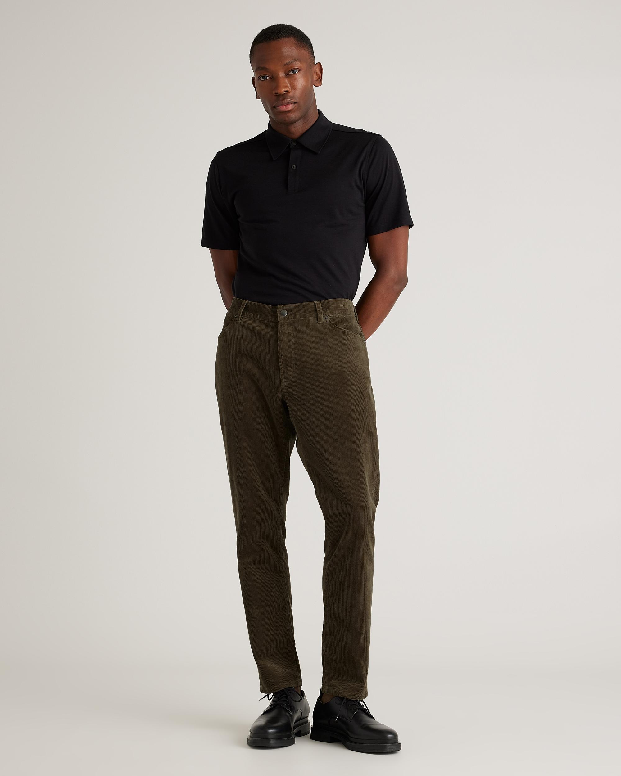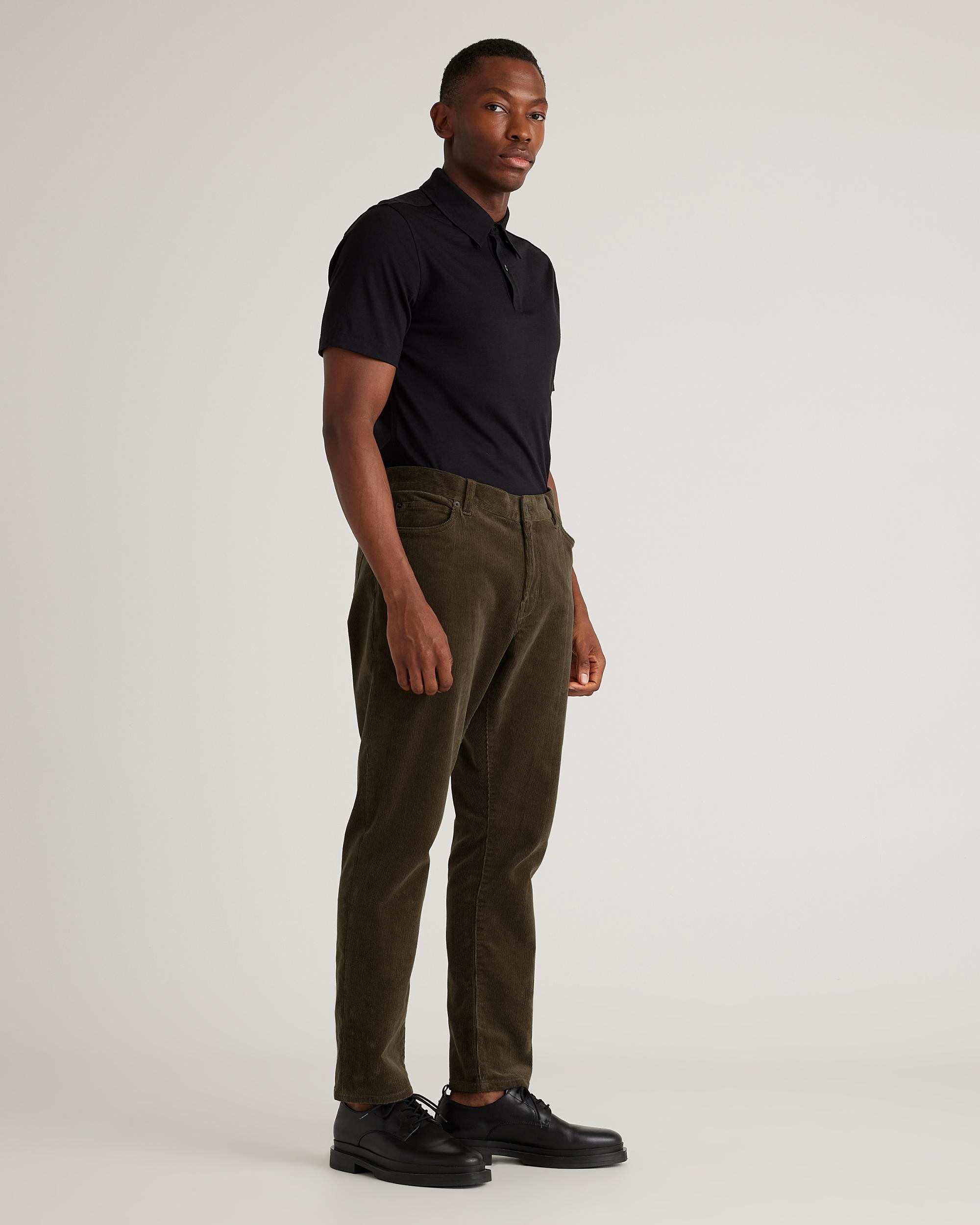 Time to update your pants drawer? Meet our Organic Stretch Corduroy 5-Pocket Pants, made from a premium 11-wale stretch corduroy and designed with a sleek slim fit. This versatile pant makes switching up your look easy: just swap these in for your go-to jeans for a casual-cool spin. | Quince | Men's Organic Stretch Corduroy 5-Pocket Pants in Seaweed, Size 30X30, Organic Cotton