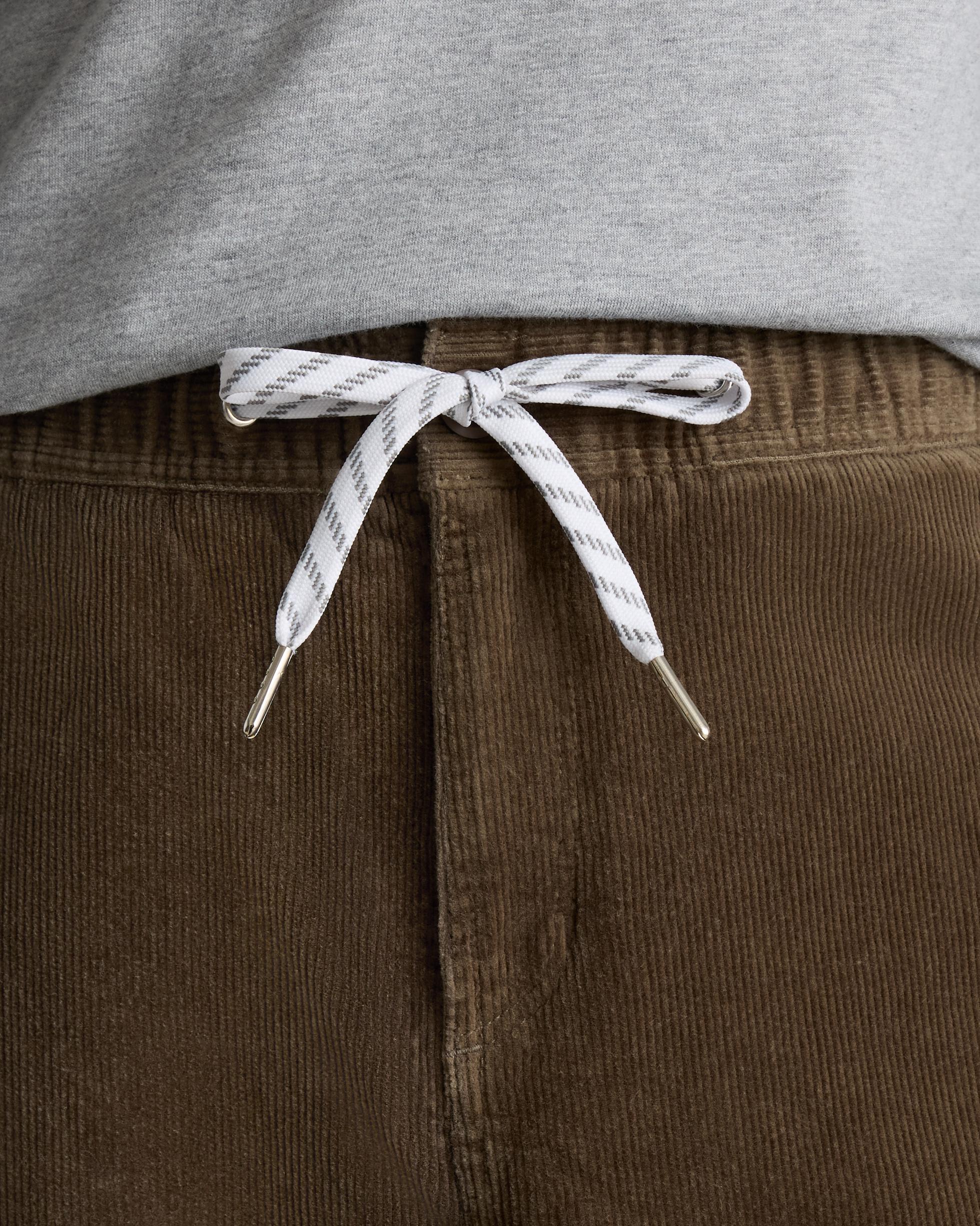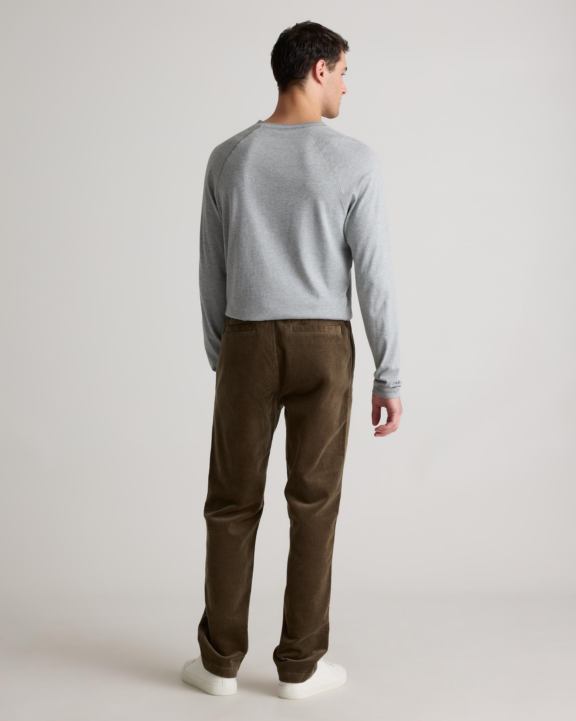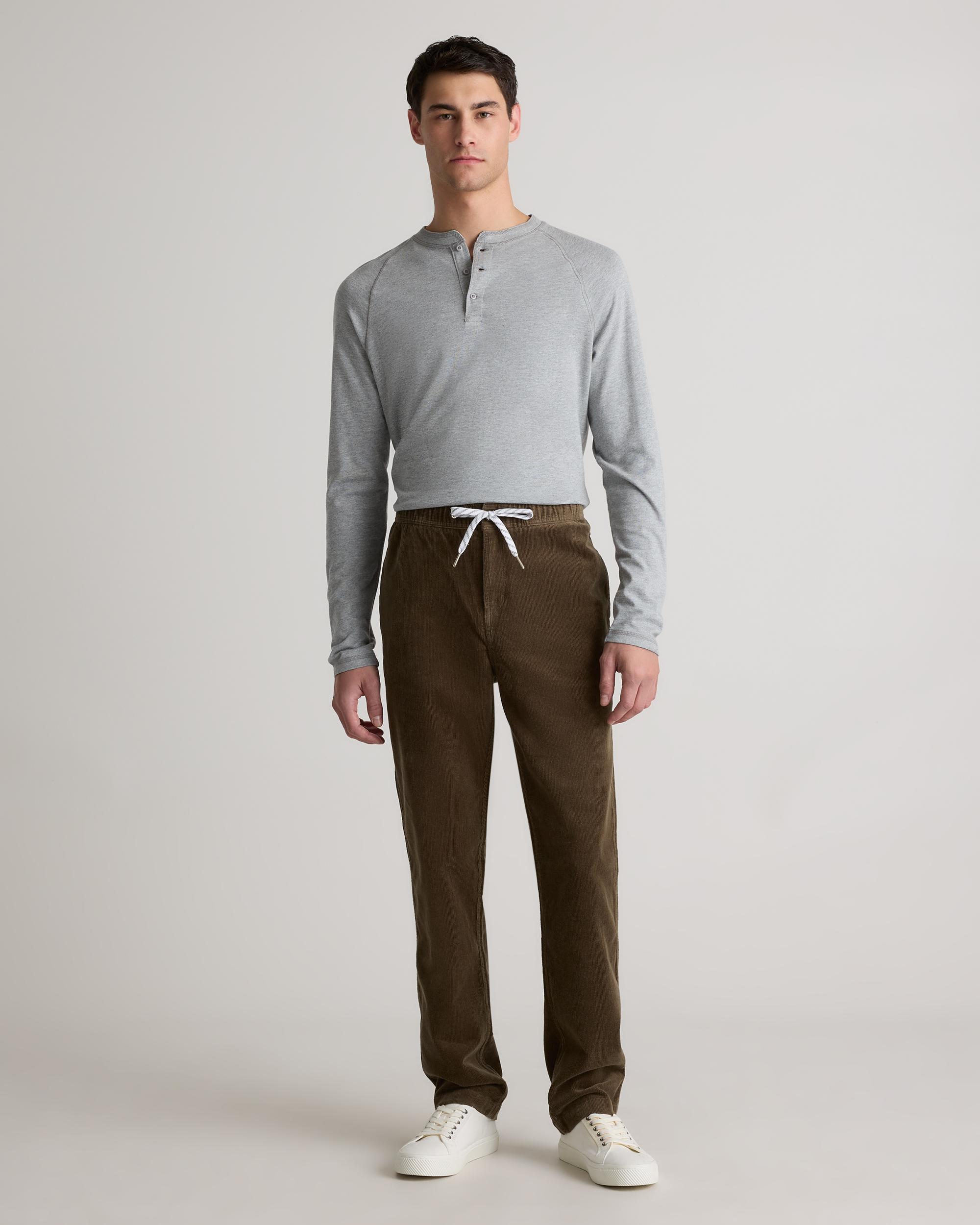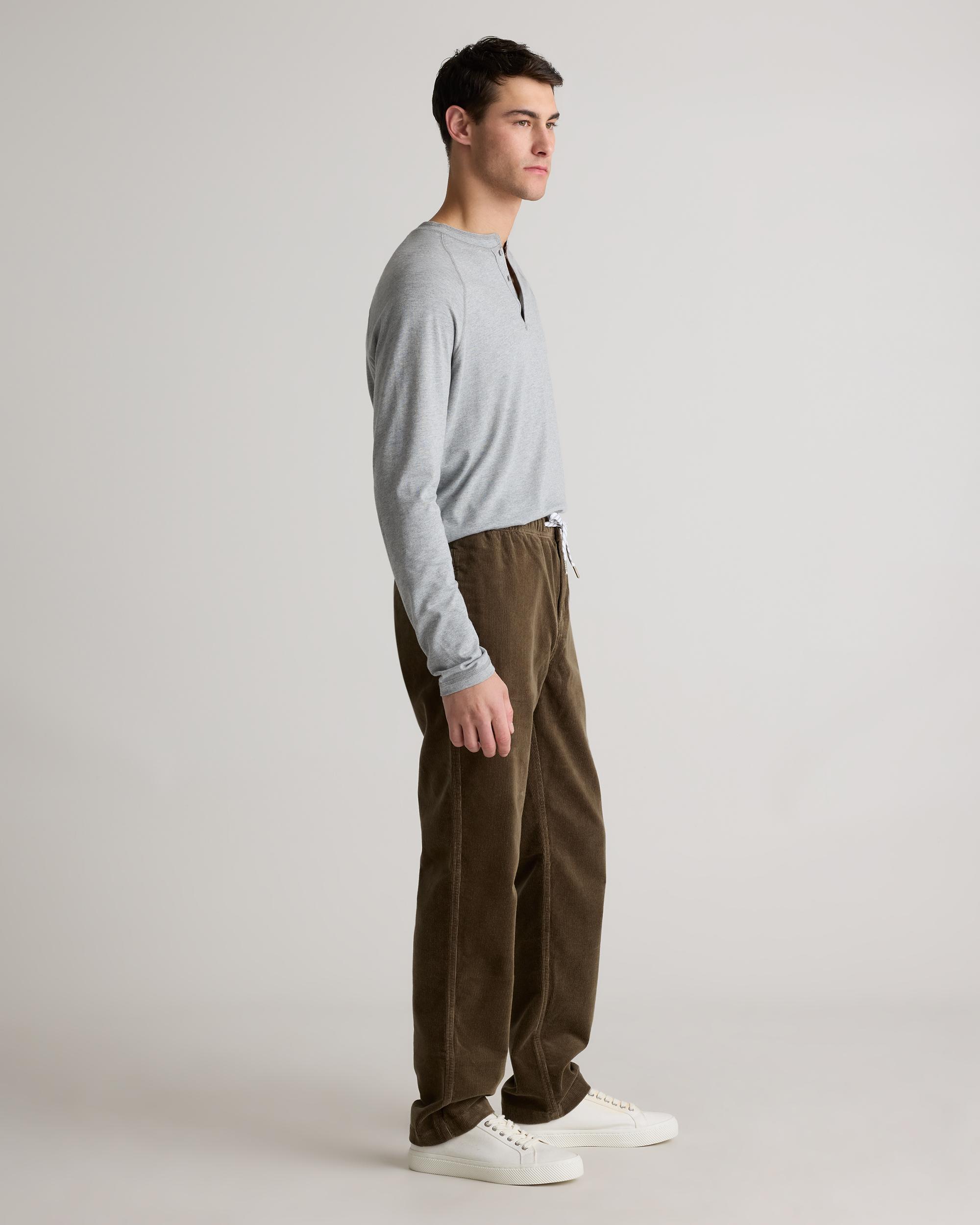 Embrace effortless style and comfort with our Organic Stretch Corduroy Drawstring Trousers. Perfect for both casual outings and laid-back lounging, these trousers combine an elastic waistband and a relaxed, yet modern silhouette, making them a versatile addition to your wardrobe. | Quince | Men's Organic Stretch Corduroy Drawstring Trouser in Seaweed, Size Medium, Organic Cotton