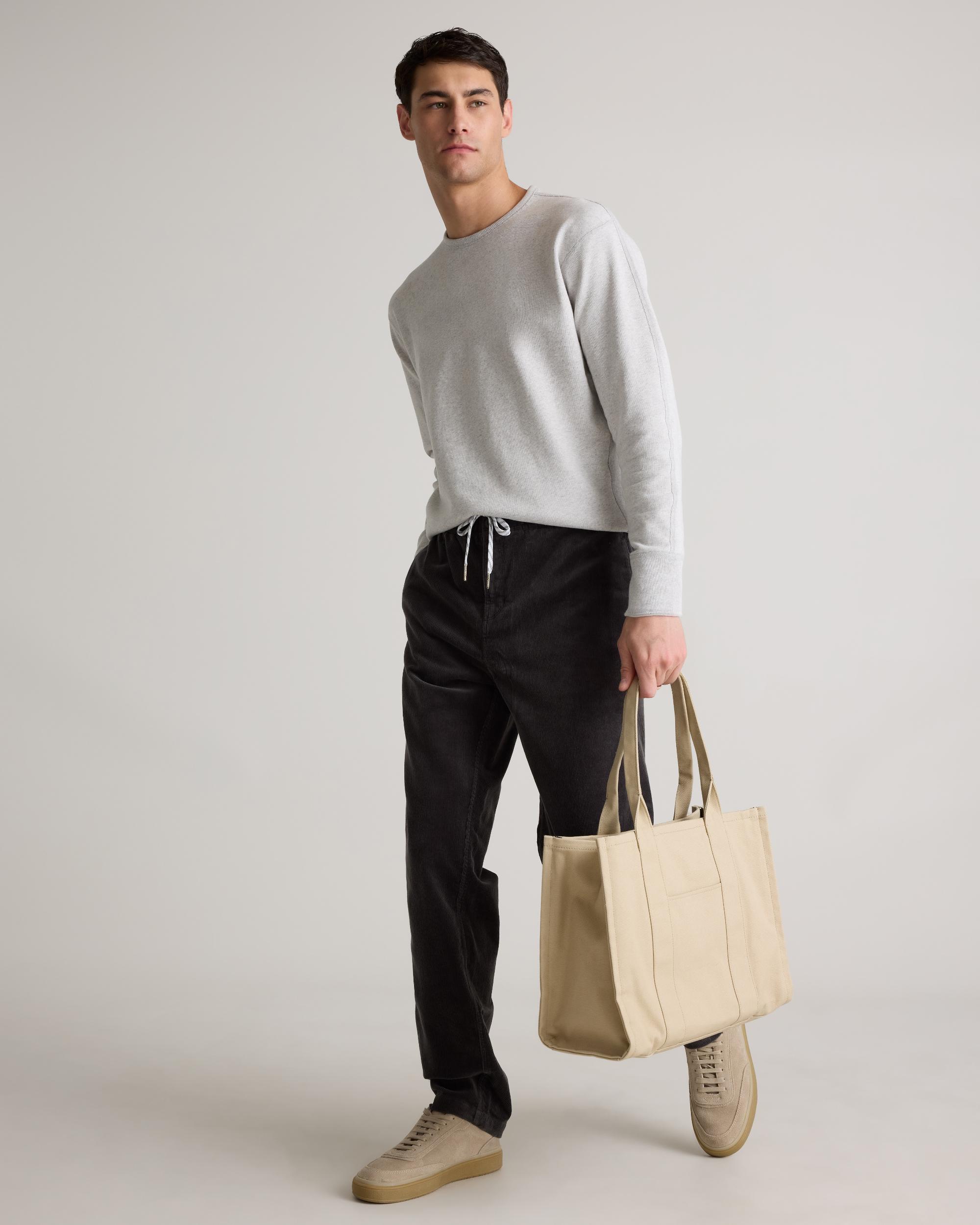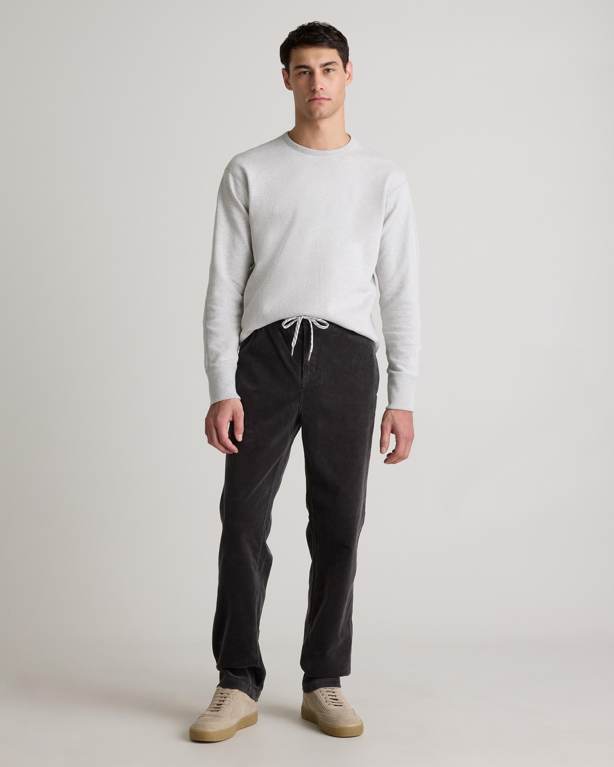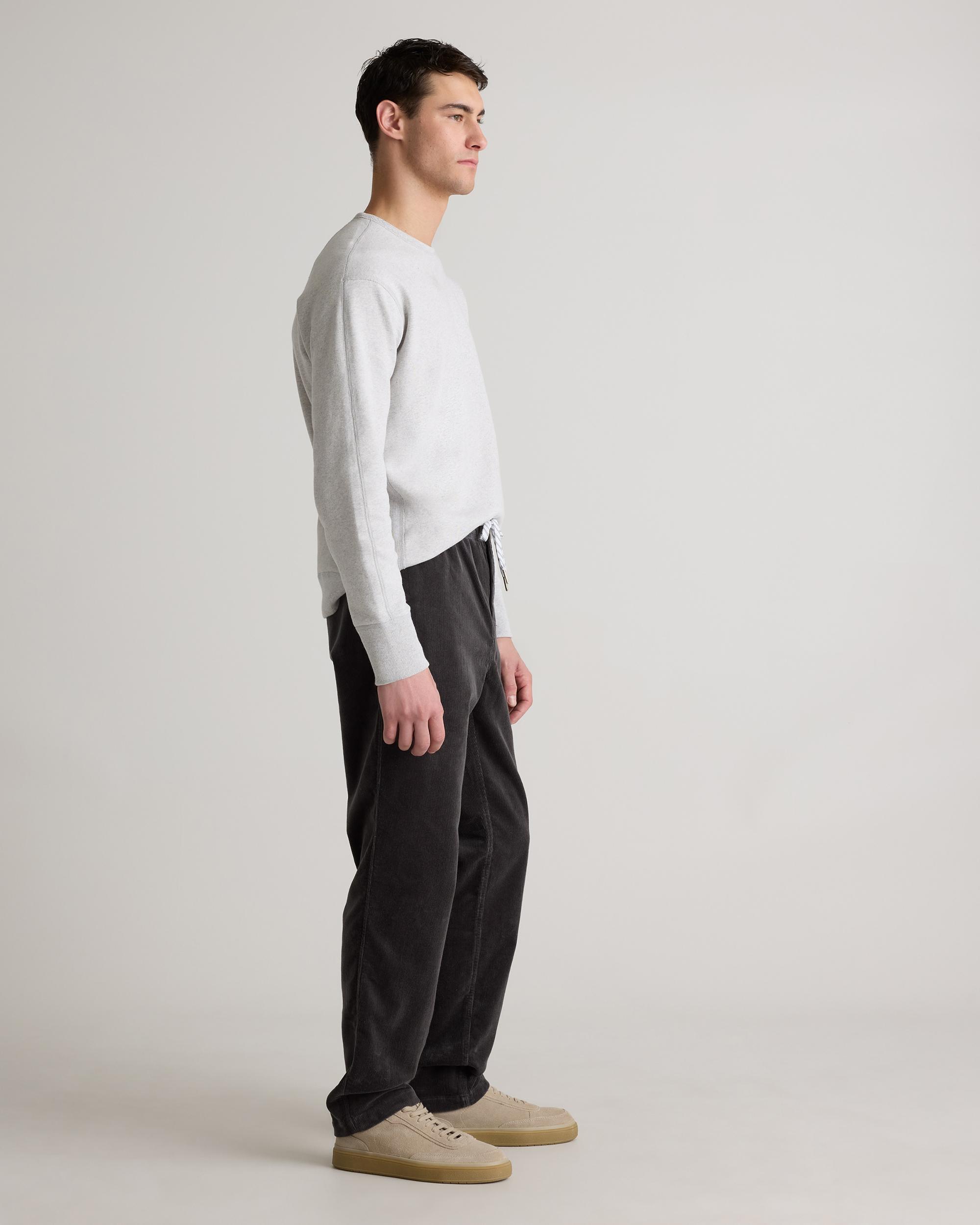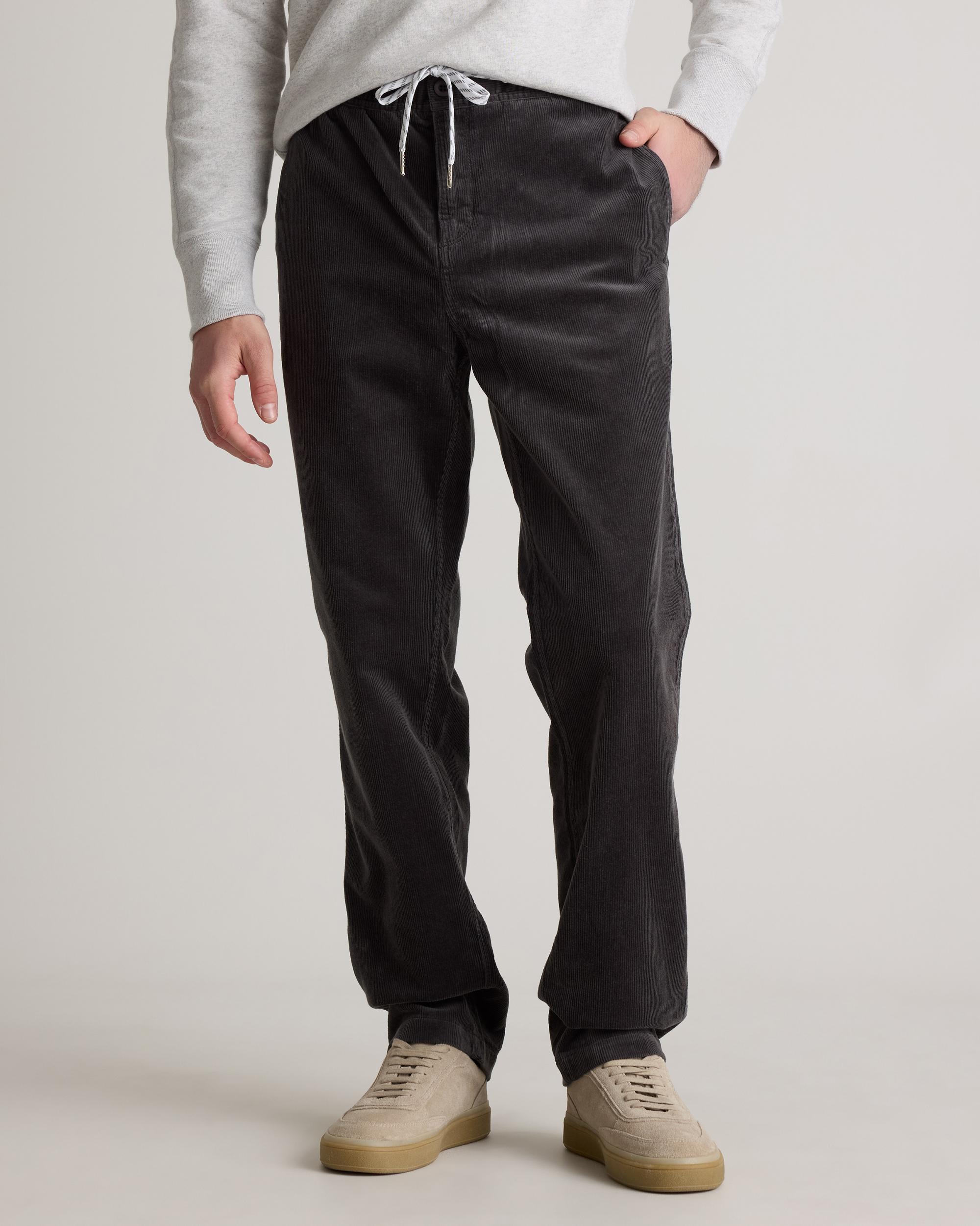 Embrace effortless style and comfort with our Organic Stretch Corduroy Drawstring Trousers. Perfect for both casual outings and laid-back lounging, these trousers combine an elastic waistband and a relaxed, yet modern silhouette, making them a versatile addition to your wardrobe. | Quince | Men's Organic Stretch Corduroy Drawstring Trouser in Dark Coal, Size Small, Organic Cotton