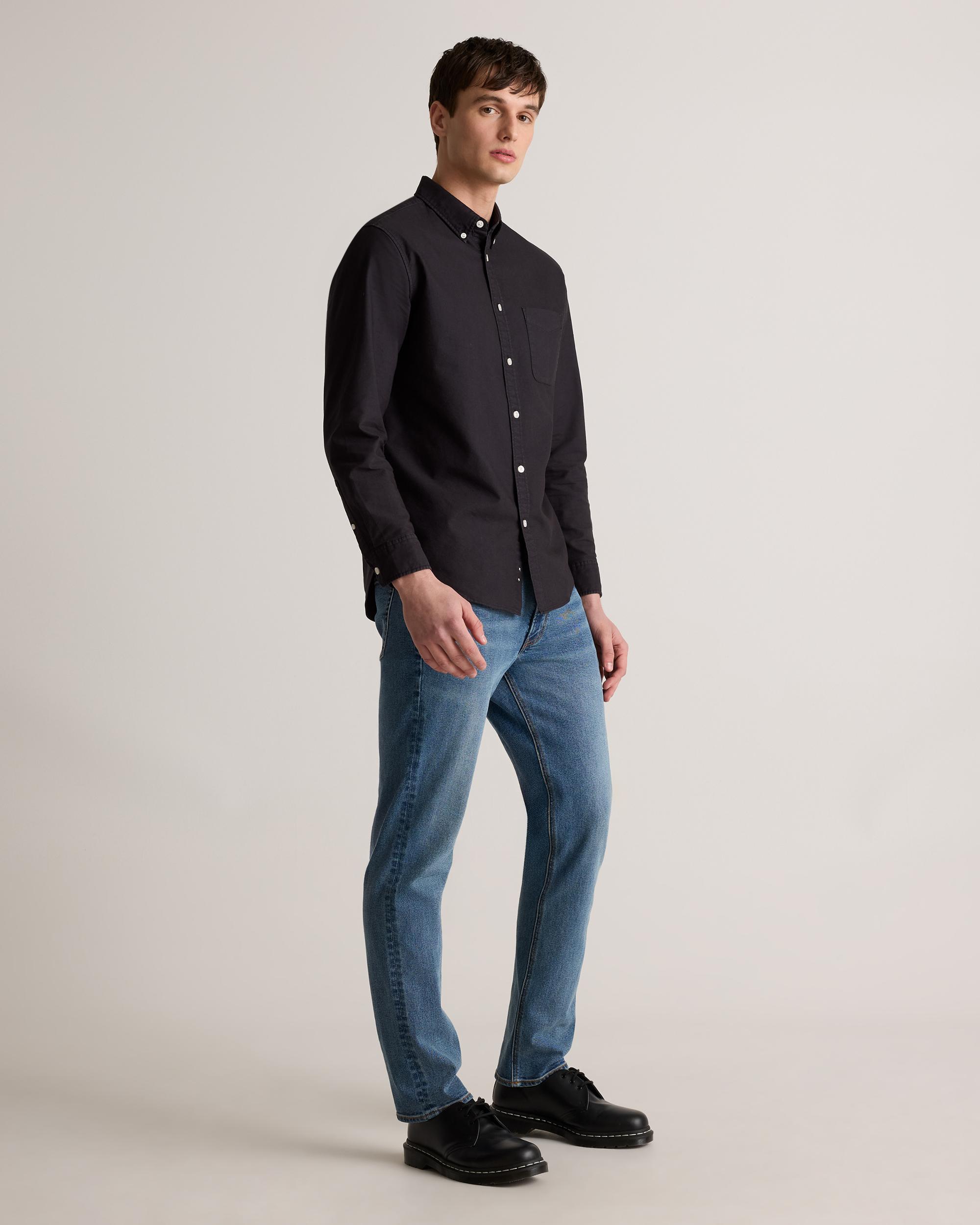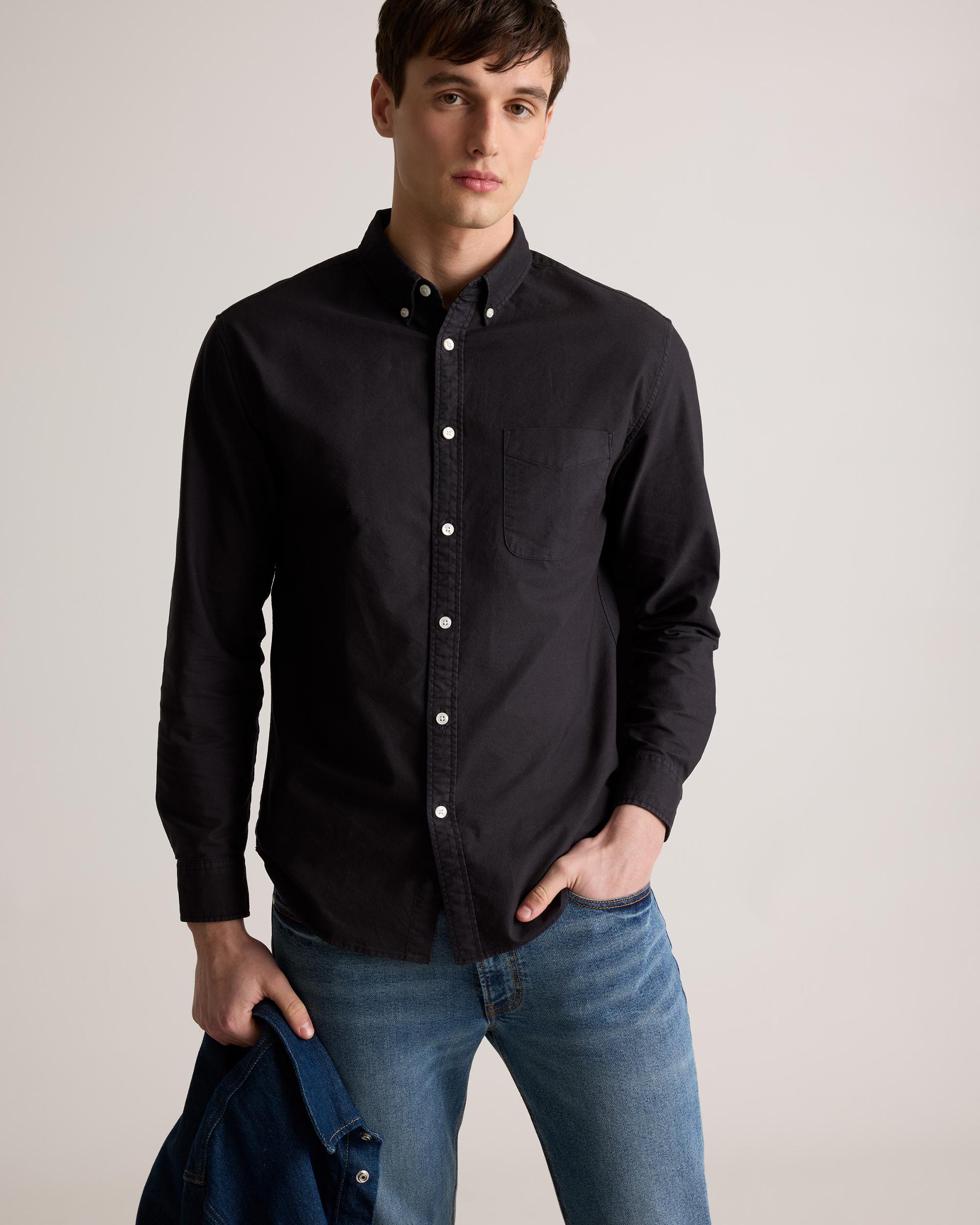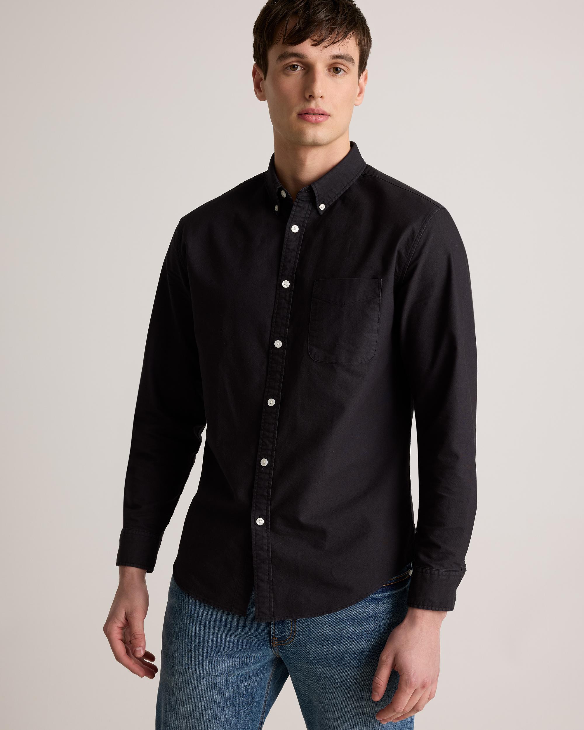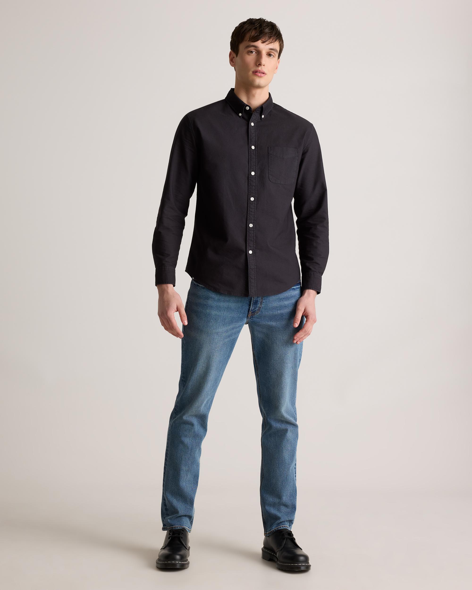 A forever essential, our 100% Organic Cotton Oxford Shirt blends timeless style and everyday comfort. Crafted from premium organic cotton, the special enzyme wash process creates an ultra-soft handfeel so you can feel comfy all day without sacrificing any polish. Its classic look can flex for work or the weekend, making it a must-have for any wardrobe. | Quince | Men's Oxford Shirt in Black, Size XL, Organic Cotton