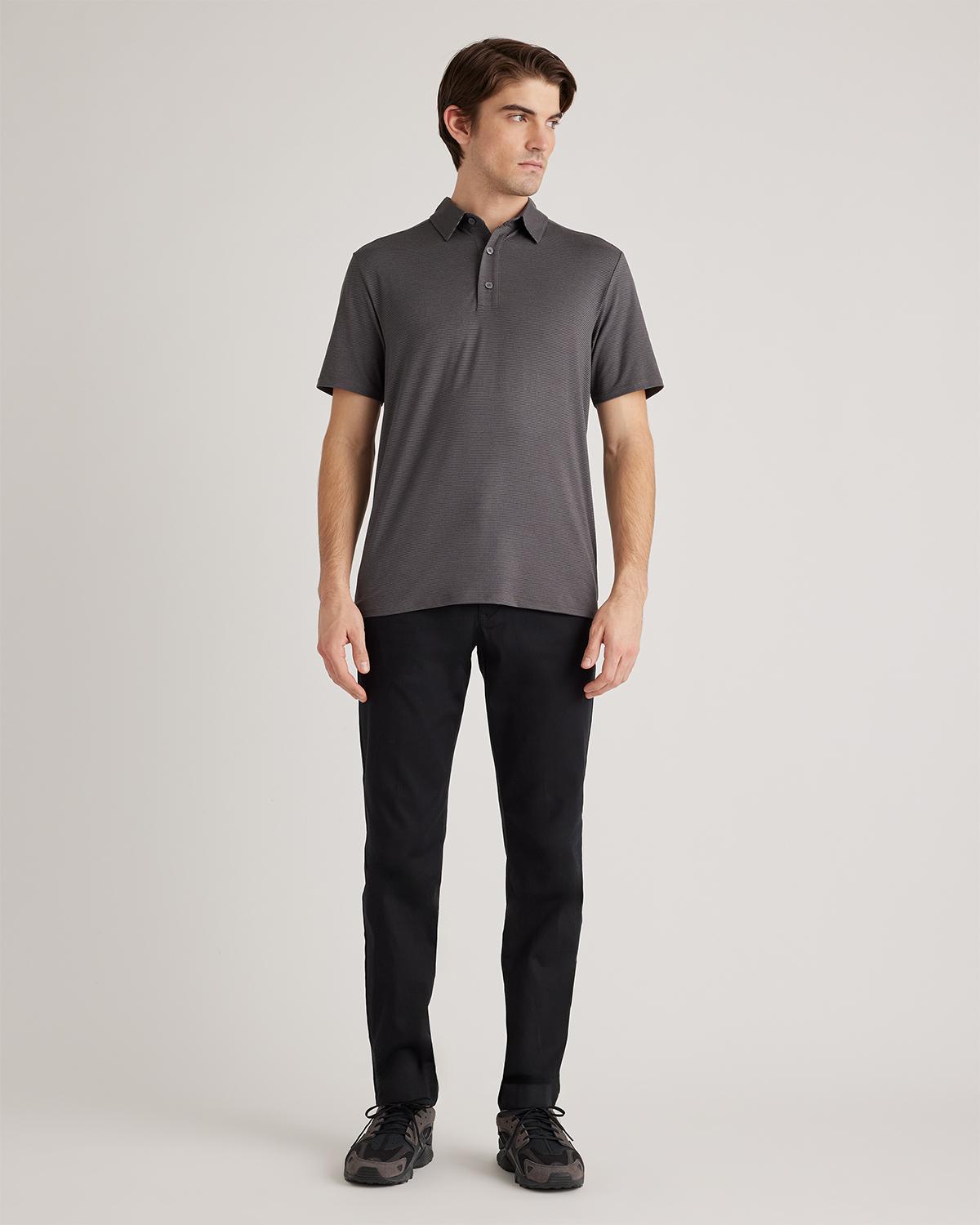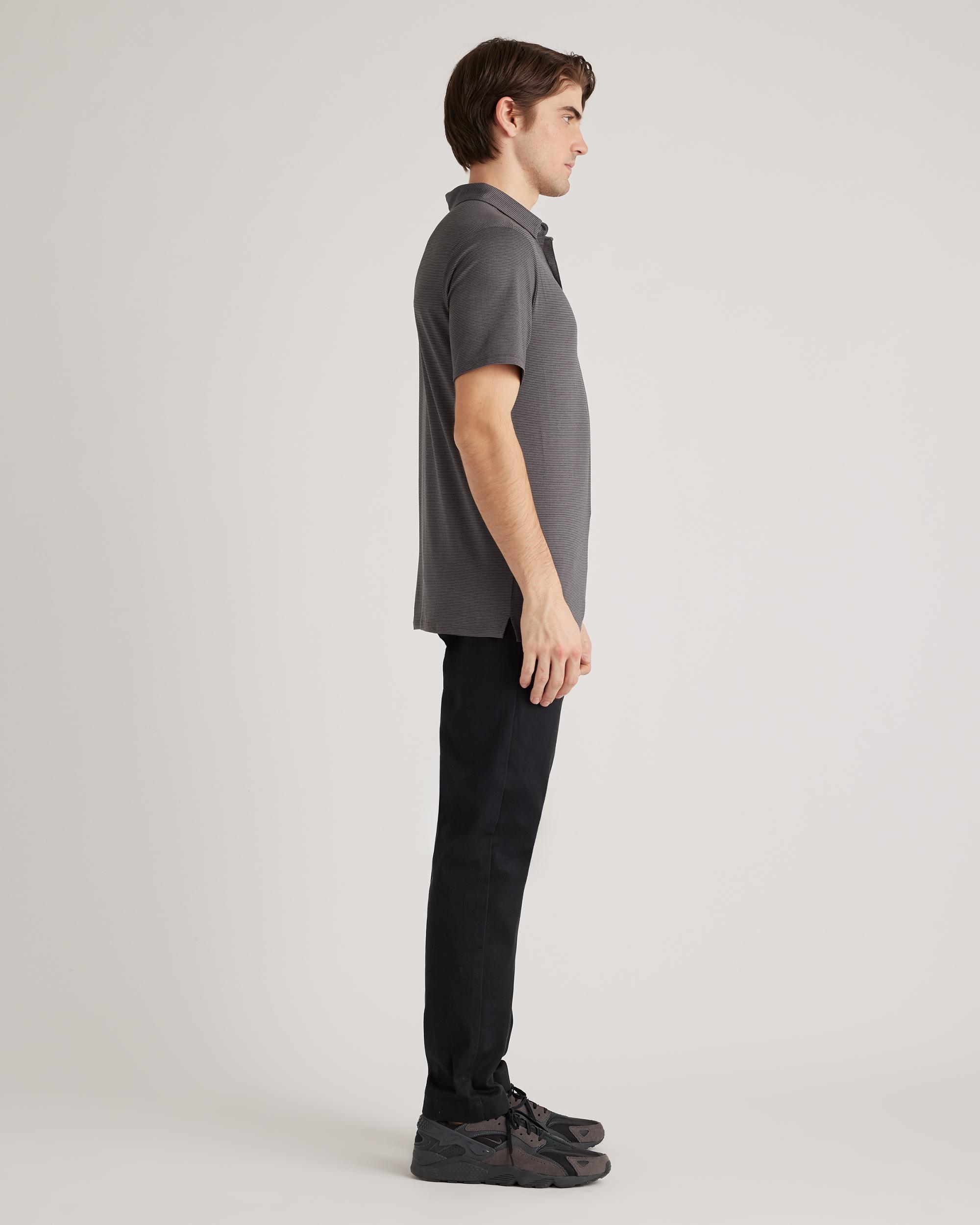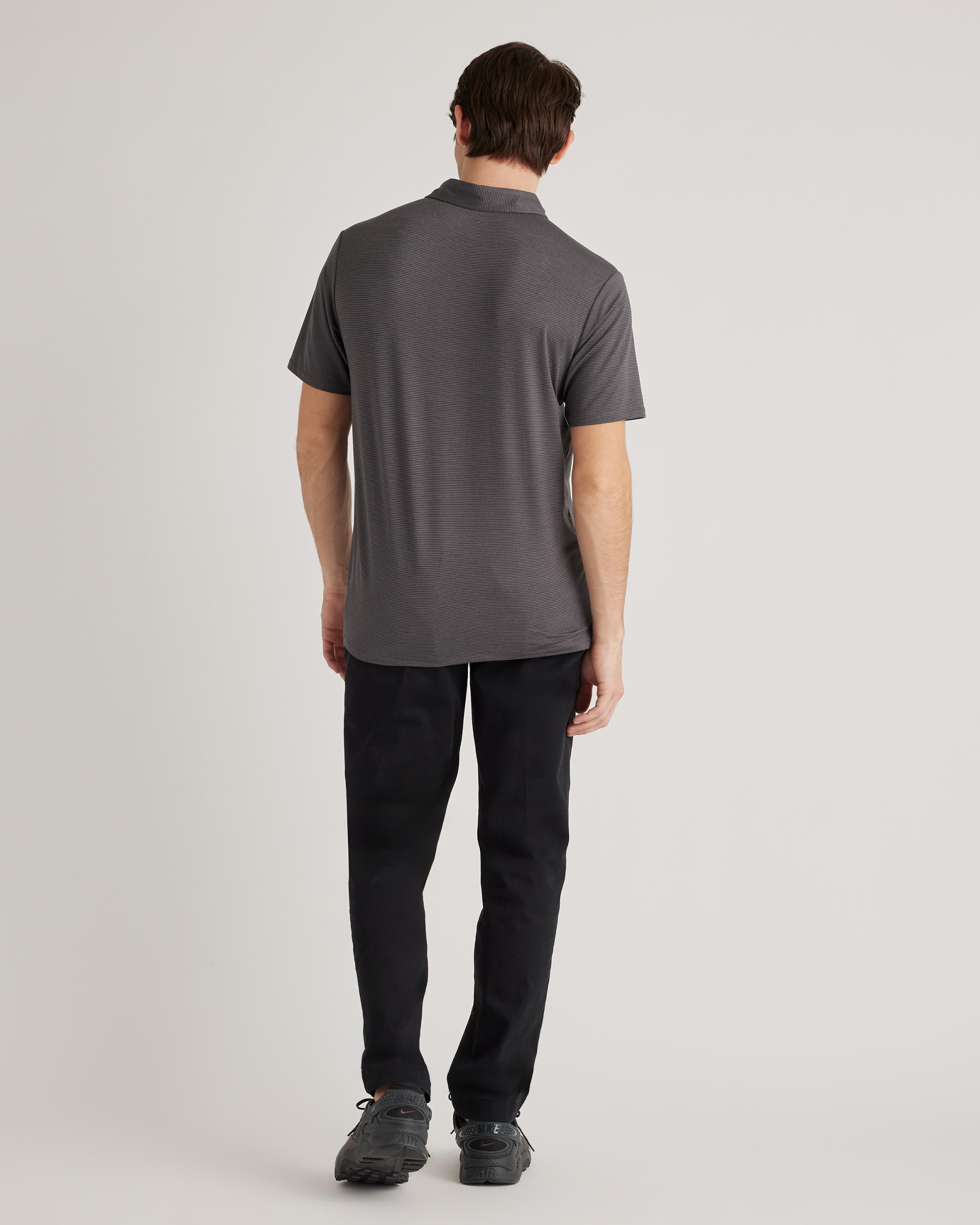 Stay cool and comfortable with our Performance Jersey Golf Polo. Featuring a classic polo collar and three-button placket, this shirt does sporty style flawlessly. Moisture-wicking, lightweight, quick-drying, and outfitted with UV-SPF40 protection, it's ready for whatever the day brings—on or off the golf course. | Quince | Men's Performance Jersey Golf Polo in Black/Light Grey Stripe, Size XL, Recycled Polyester