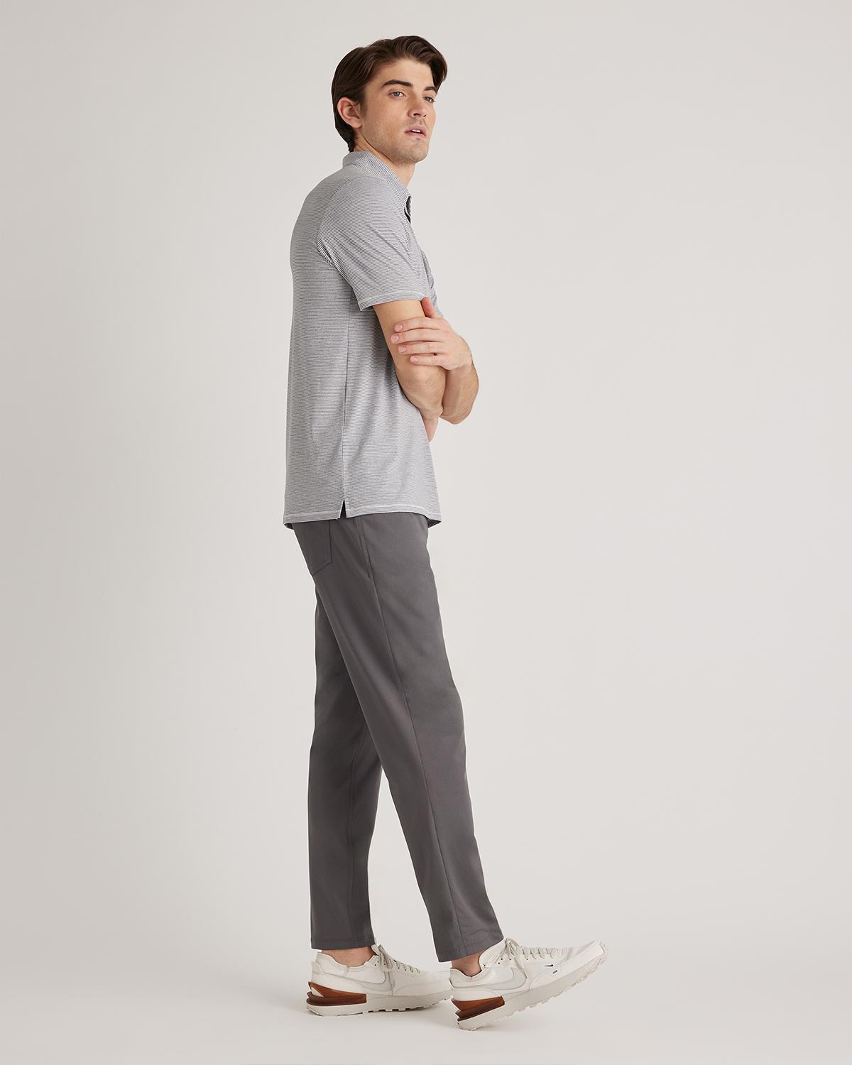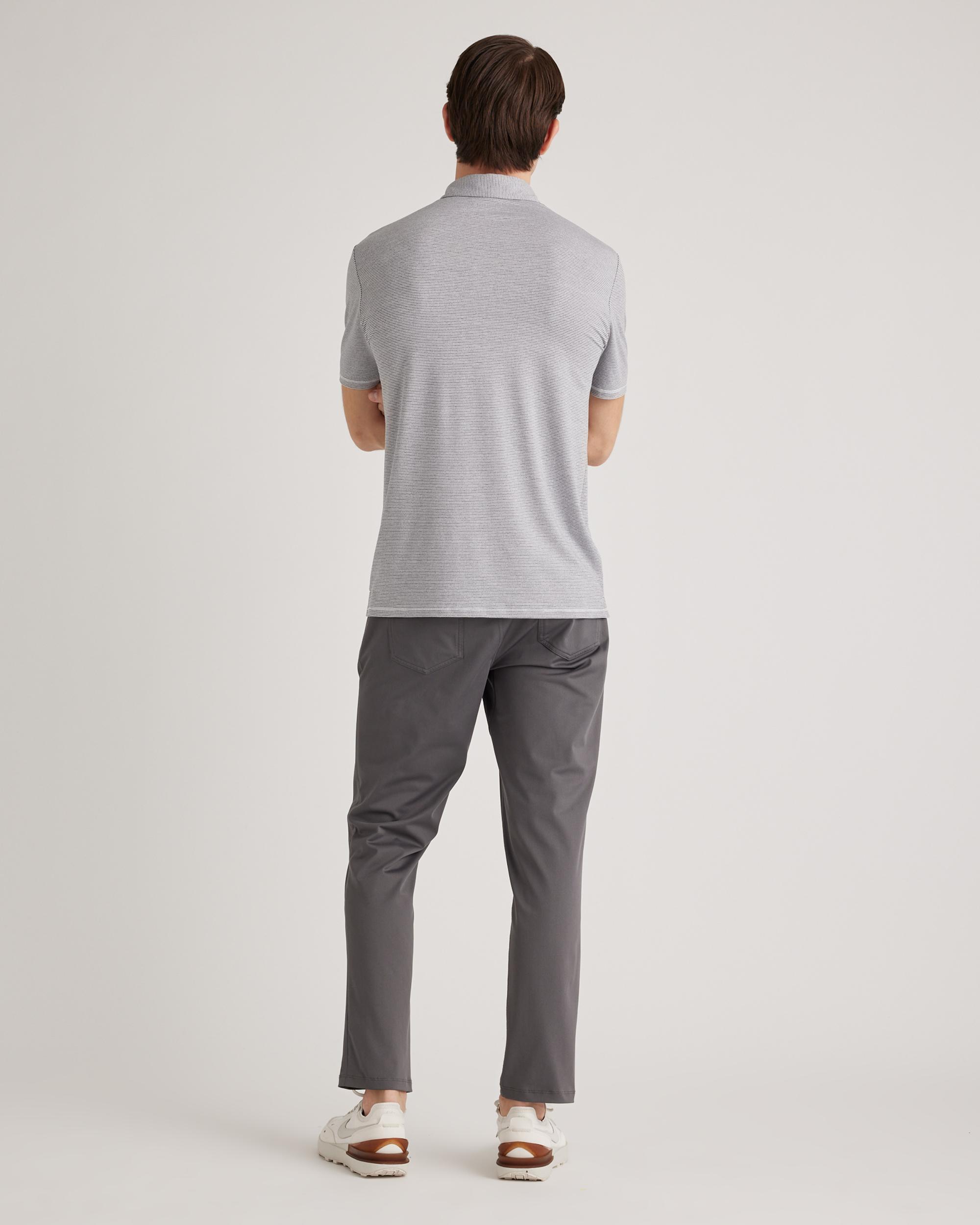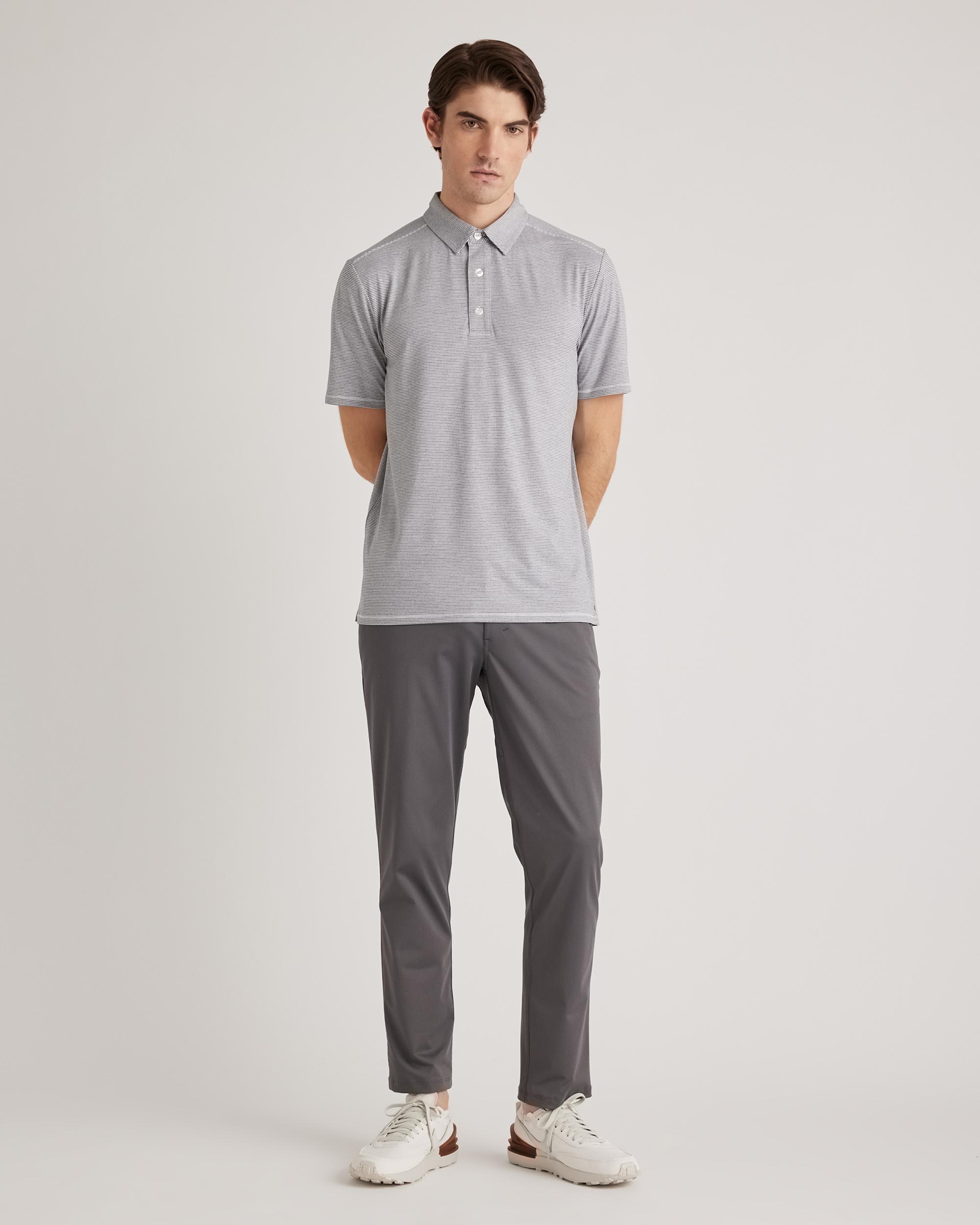 Stay cool and comfortable with our Performance Jersey Golf Polo. Featuring a classic polo collar and three-button placket, this shirt does sporty style flawlessly. Moisture-wicking, lightweight, quick-drying, and outfitted with UV-SPF40 protection, it's ready for whatever the day brings—on or off the golf course. | Quince | Men's Performance Jersey Golf Polo in White/Grey Stripe, Size Medium, Recycled Polyester