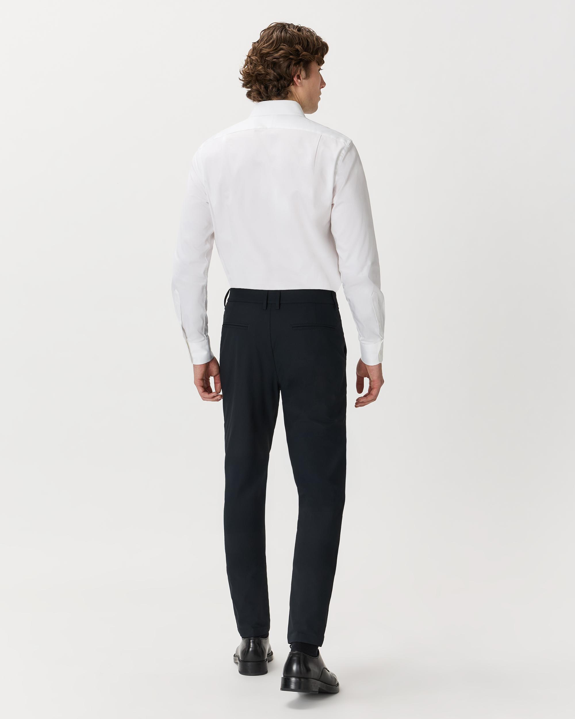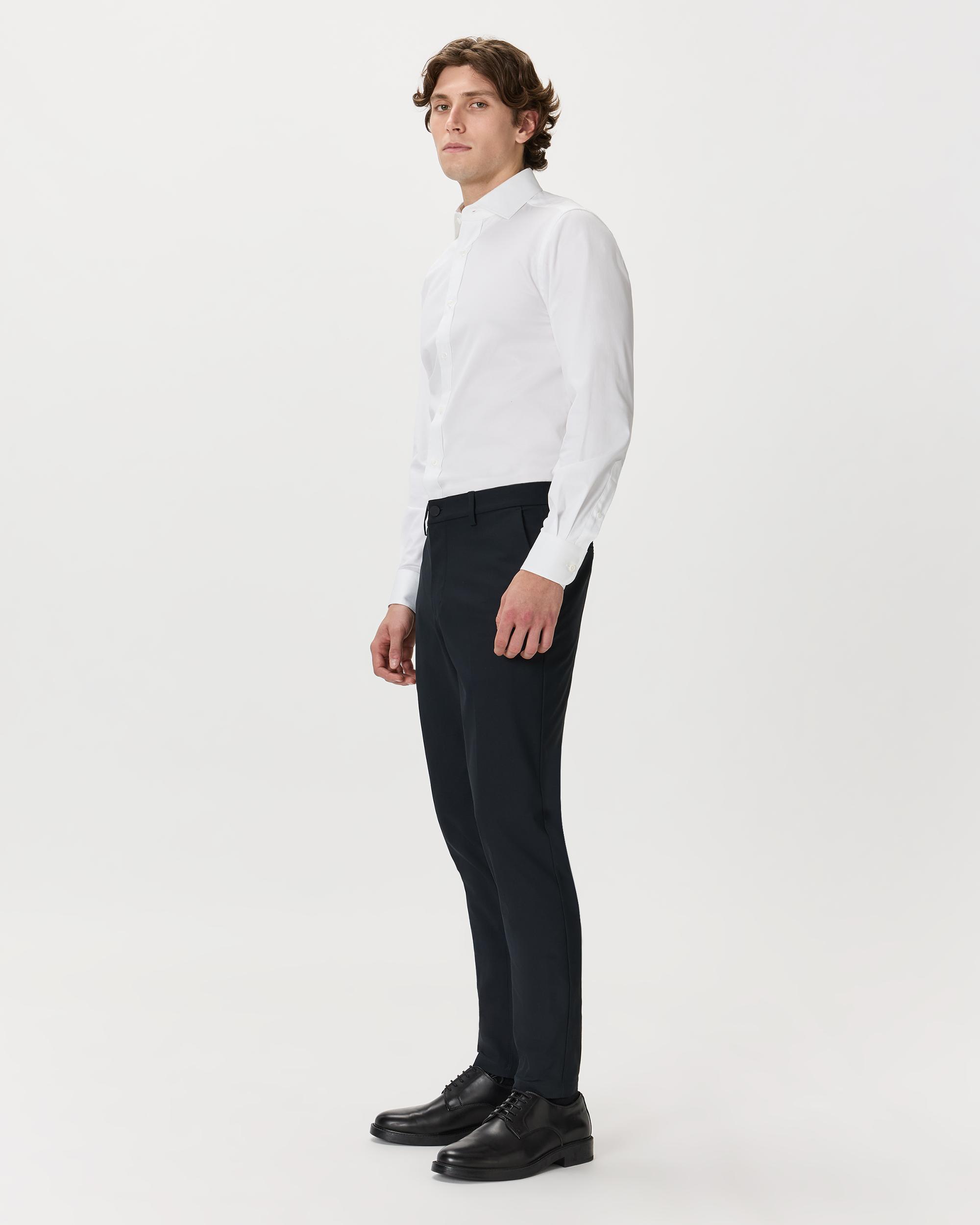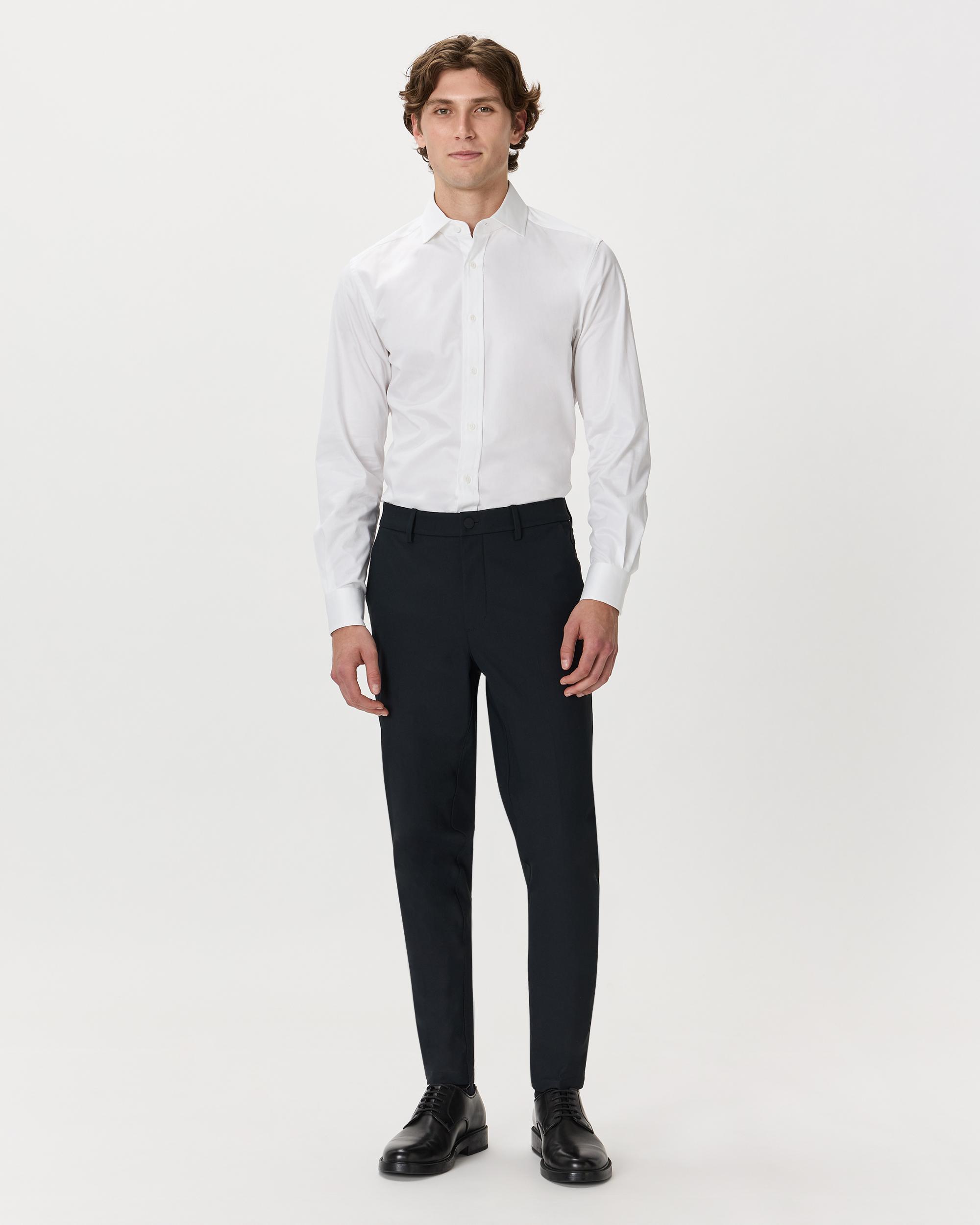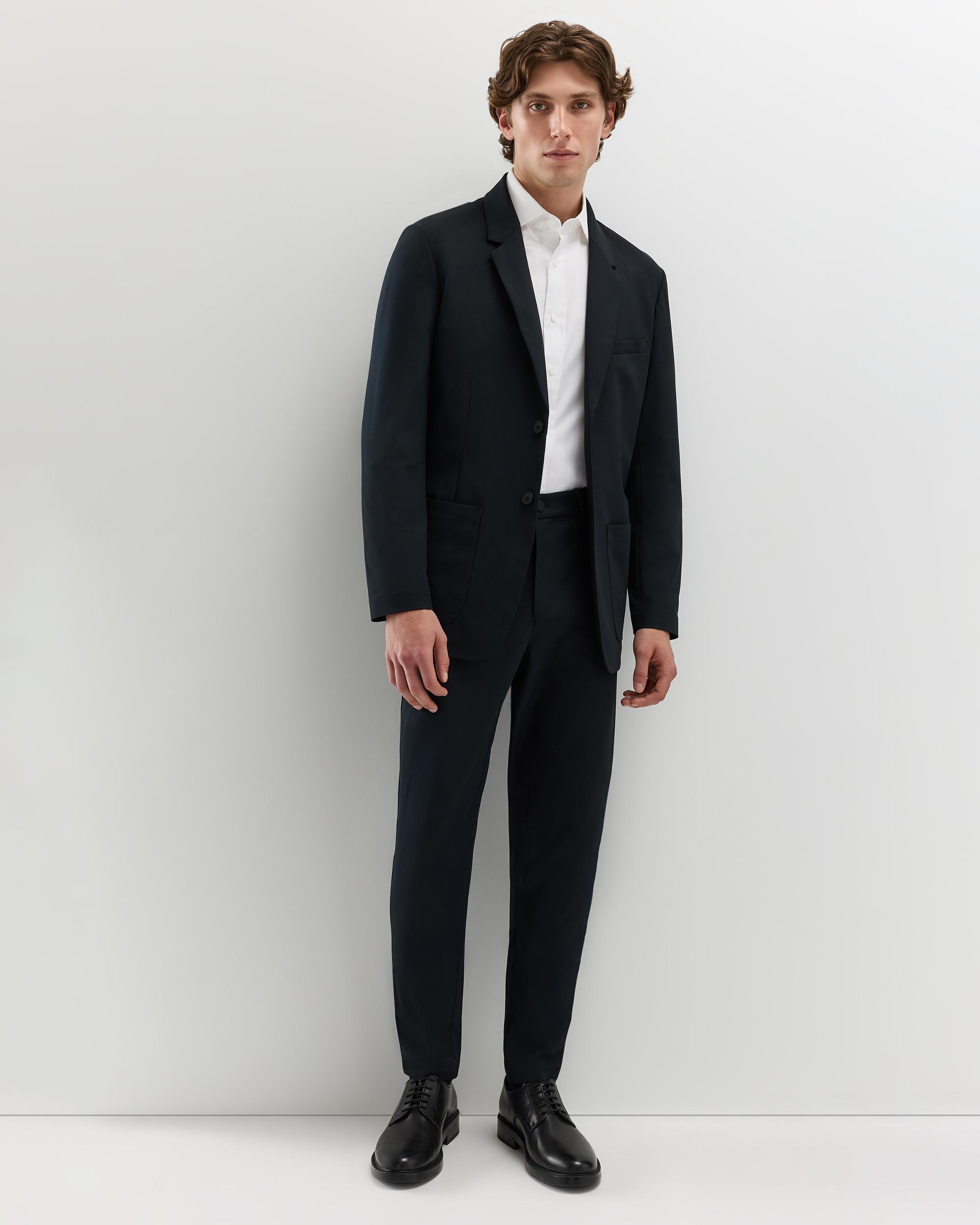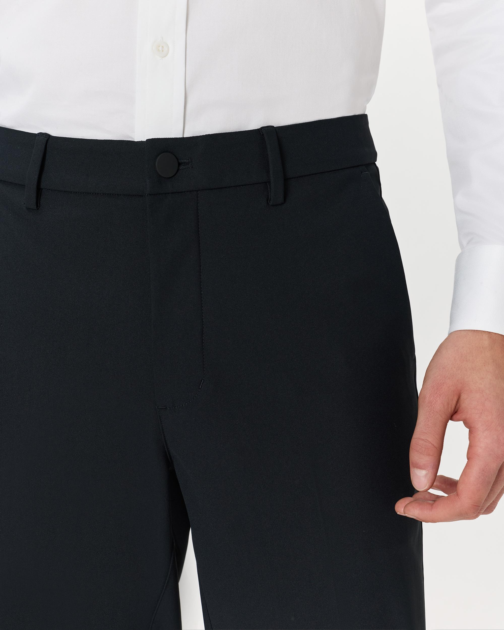 Our Performance Stretch Technical Dress Pants are designed for modern professionals who value both form and function. Crafted from a breathable, high-performance technical fabric, they deliver all-day comfort with a clean, modern look. These pants are cut in a modern, slim fit that is ready to move with you. Perfect for the office, travel, or formal occasions, these versatile dress pants offer elevated style with everyday ease and pairs perfect with our Performance Stretch Technical Blazer. | Quince | Men's Performance Stretch Technical Dress Pants in True Black, Size 36X32, Polyester