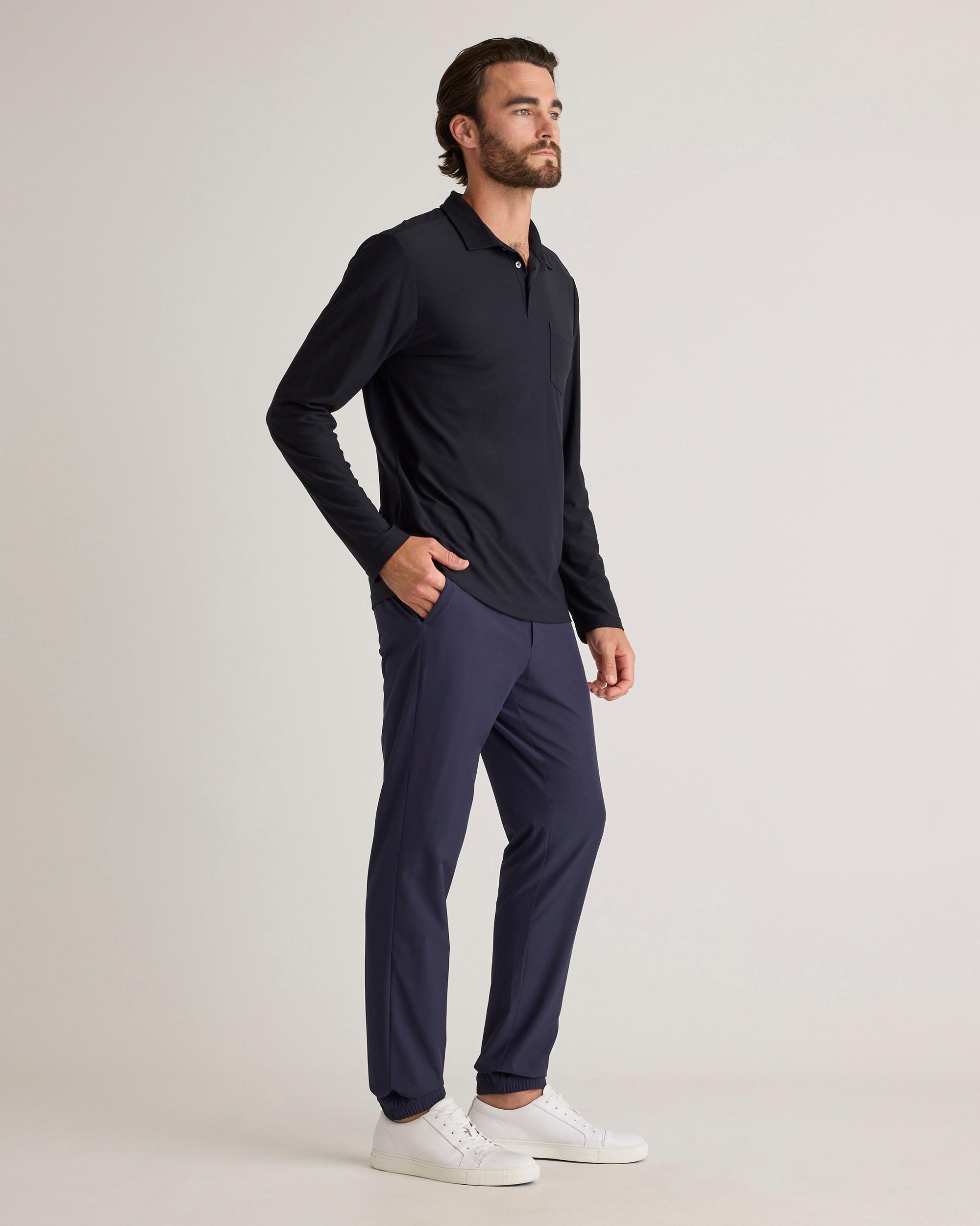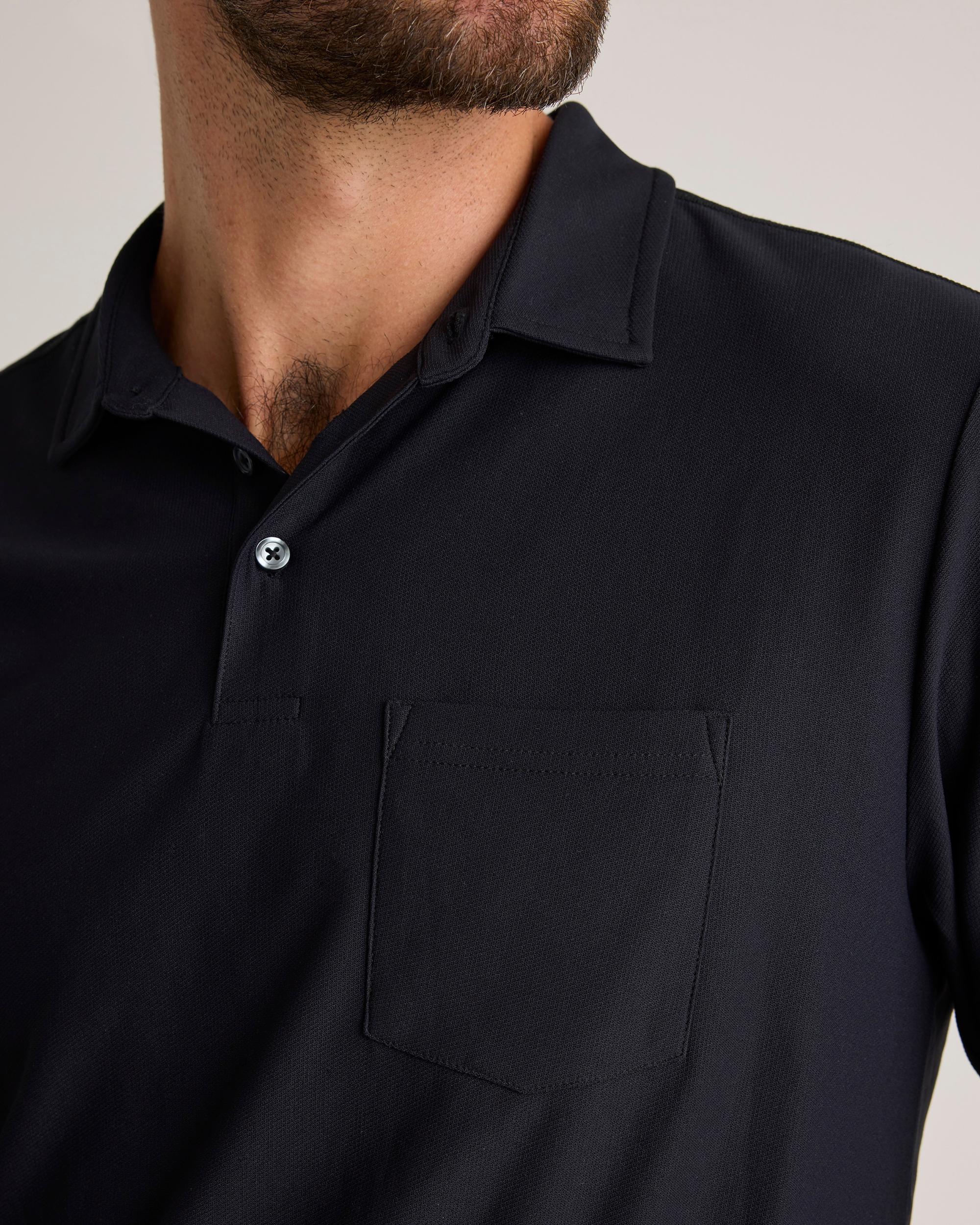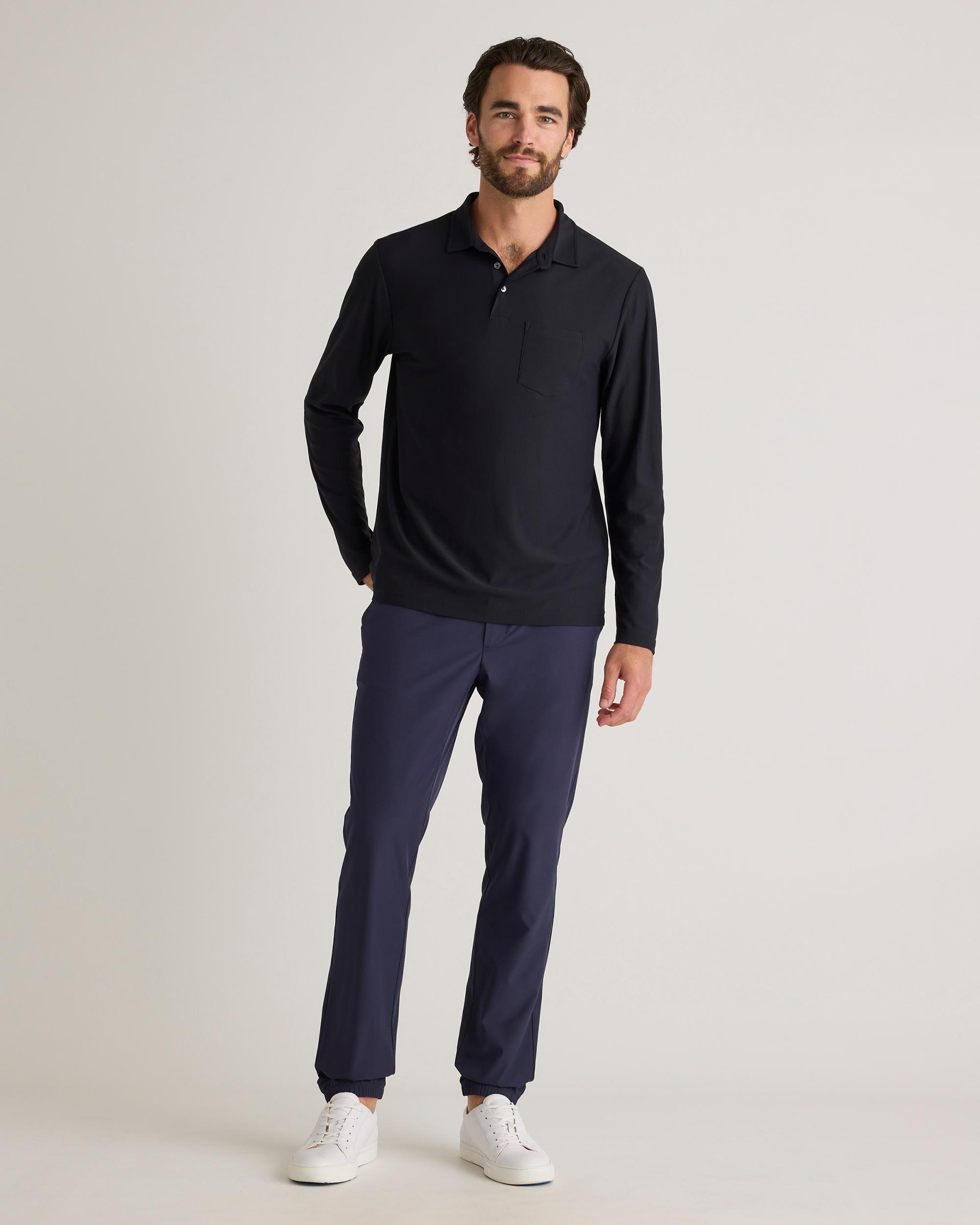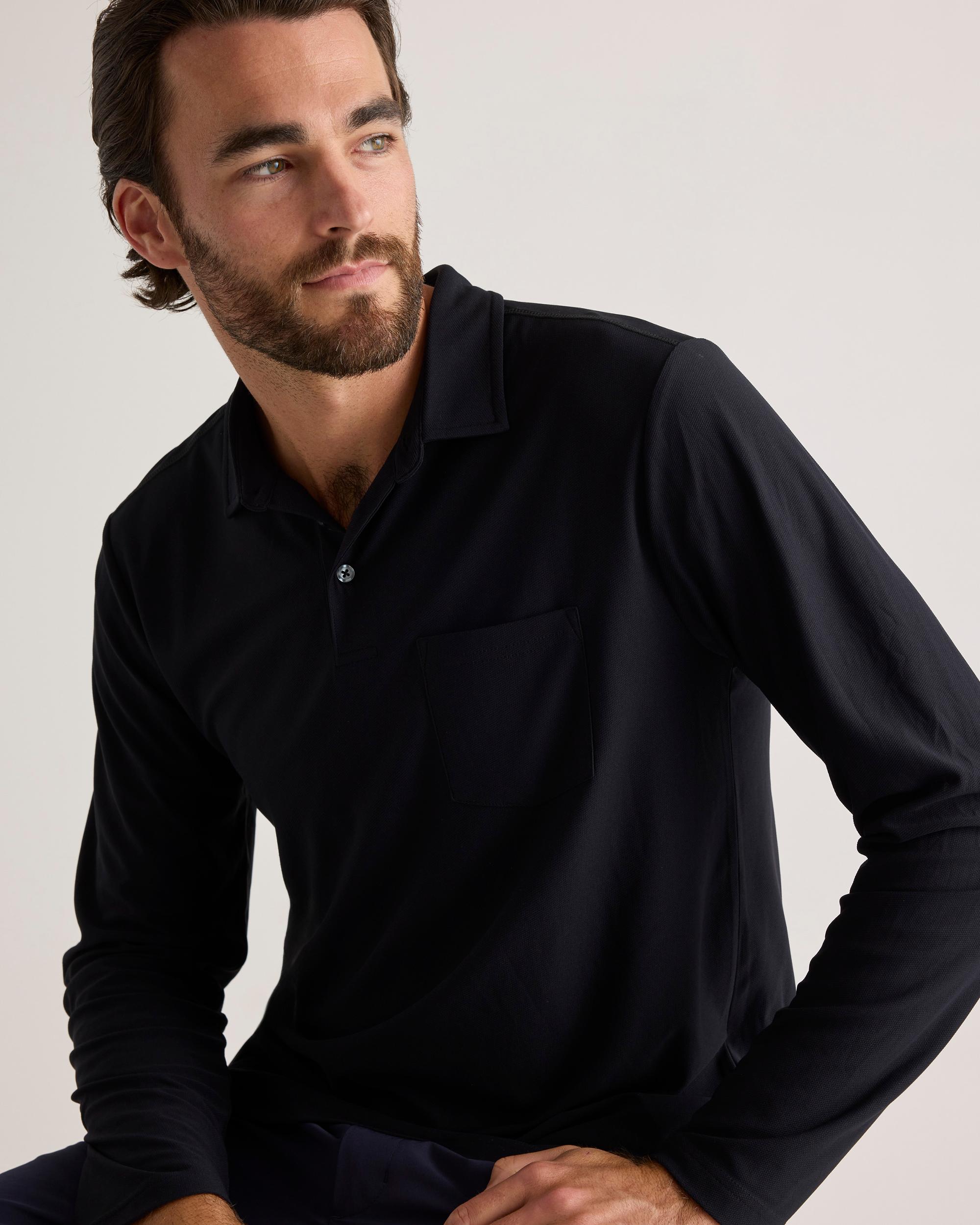 Our ProPique Performance Long Sleeve Polo is as versatile as it is stylish. Perfect for tee time, travel, or date night, it’s made from high-quality, moisture-wicking fabric to keep you cool and comfortable all day long. The UPF40 provides added sun protection for all your adventures. | Quince | Men's ProPique Performance Long Sleeve Polo in Black, Size XXL, Recycled Polyester