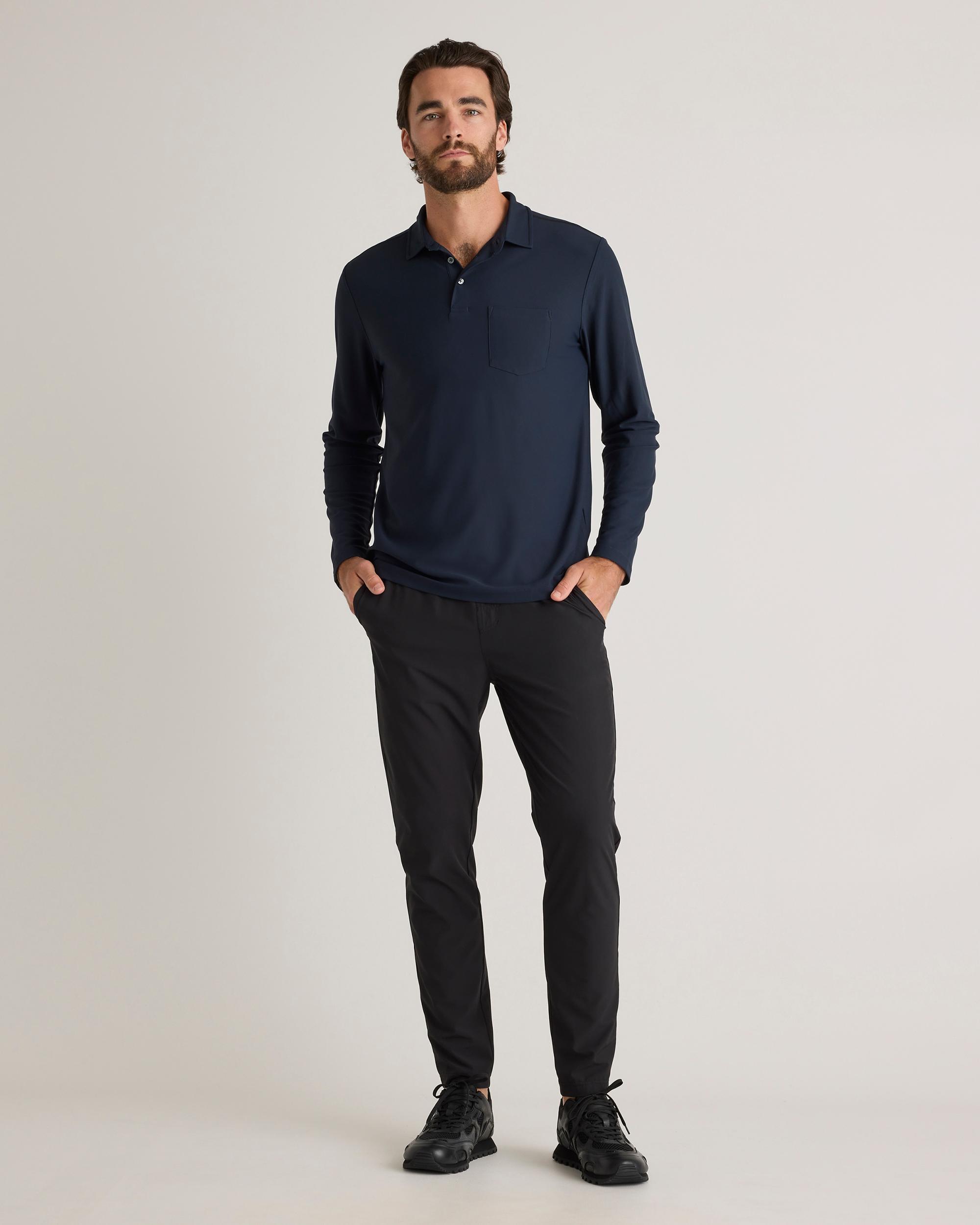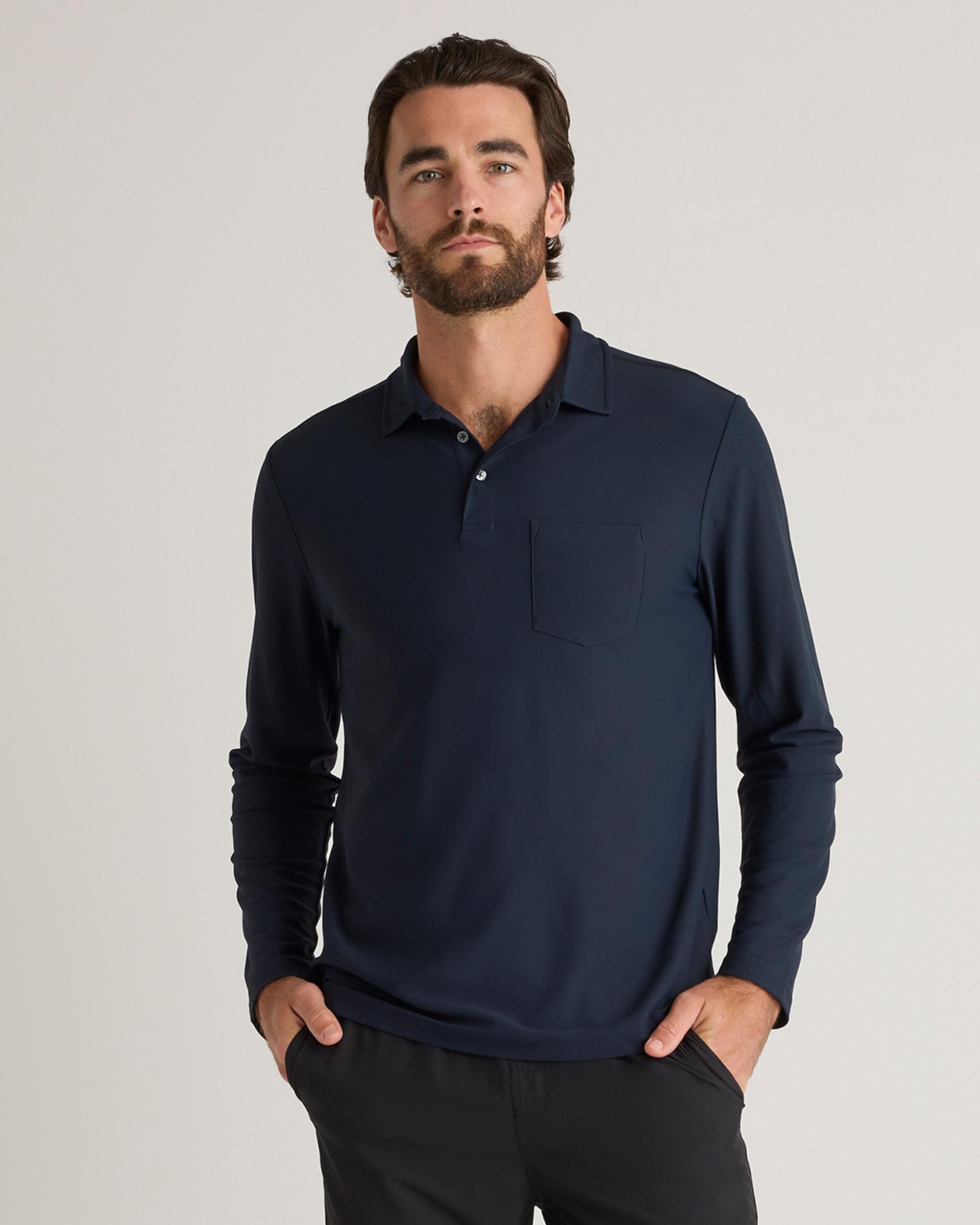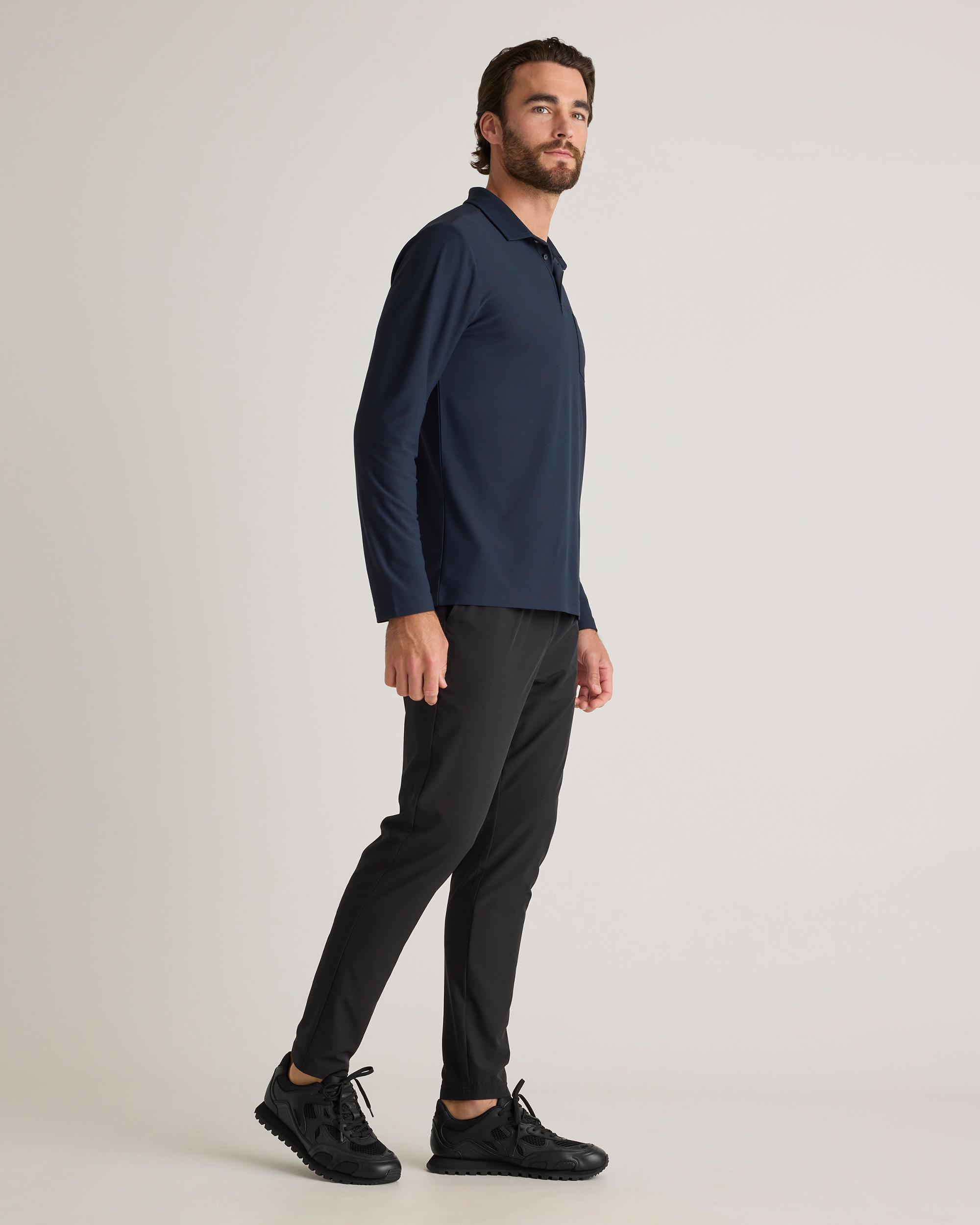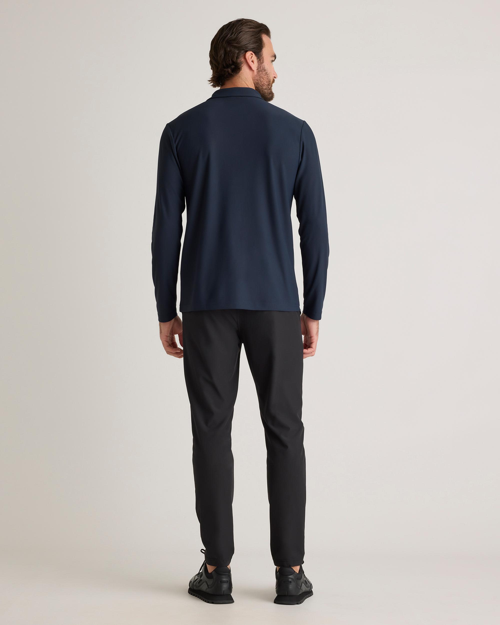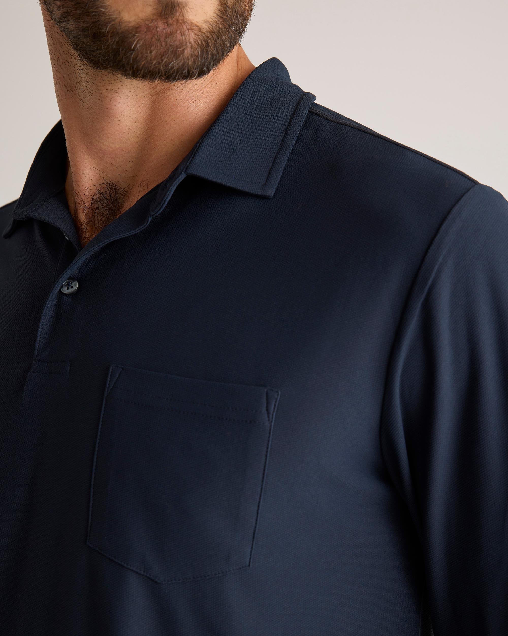 Our ProPique Performance Long Sleeve Polo is as versatile as it is stylish. Perfect for tee time, travel, or date night, it’s made from high-quality, moisture-wicking fabric to keep you cool and comfortable all day long. The UPF40 provides added sun protection for all your adventures. | Quince | Men's ProPique Performance Long Sleeve Polo in Navy, Size XL, Recycled Polyester