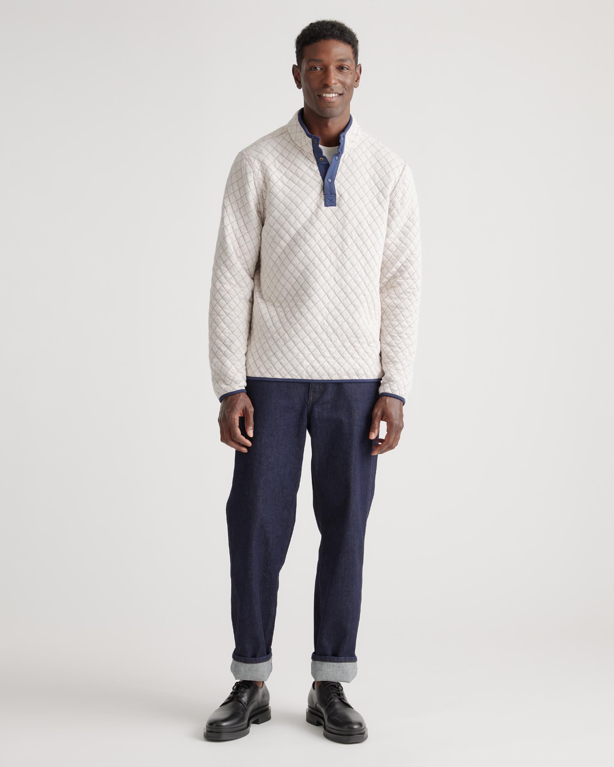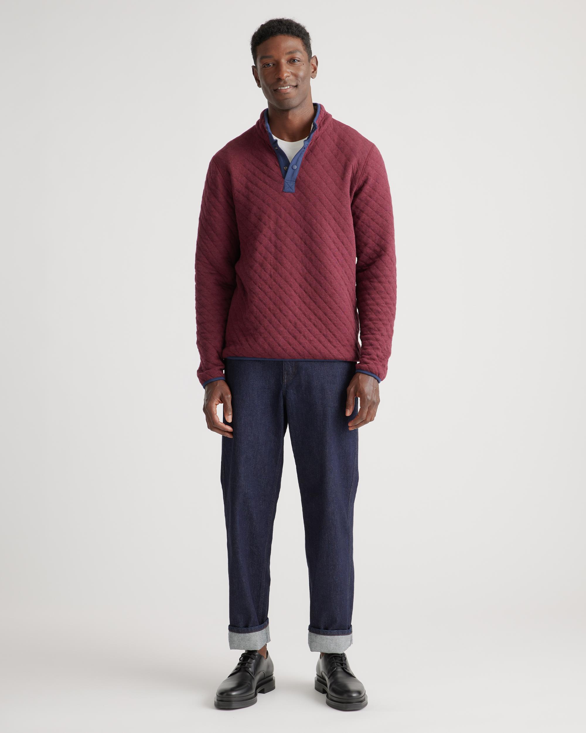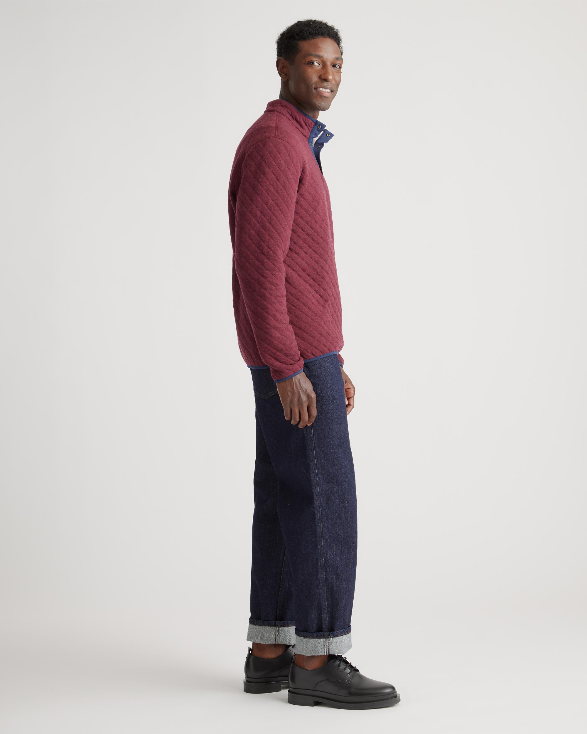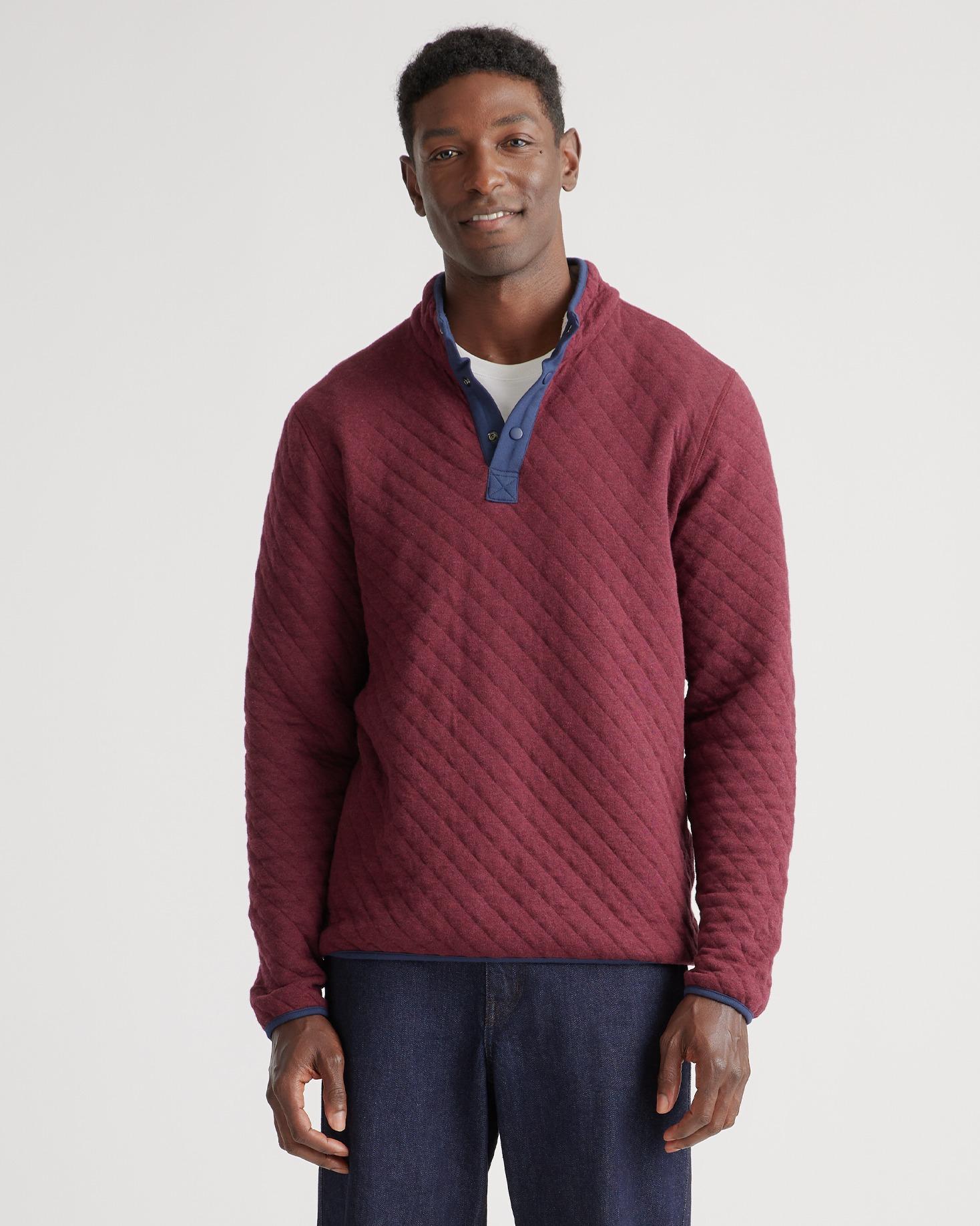 Our Reversible Quilted Pullover combines soft comfort and casual style. Made with organic cotton and recycled polyester, this pullover is gentle on the skin and on the environment. Featuring diamond quilting details and double-layered fabric, this mid-weight layer provides extra warmth and comfort for those chilly days. Fully reversible so you can switch up your look effortlessly, this pullover is sure to be your go-to layering piece for years to come. | Quince | Men's Reversible Quilted Pullover in Burgundy/Ivory, Size XXL, Organic Cotton