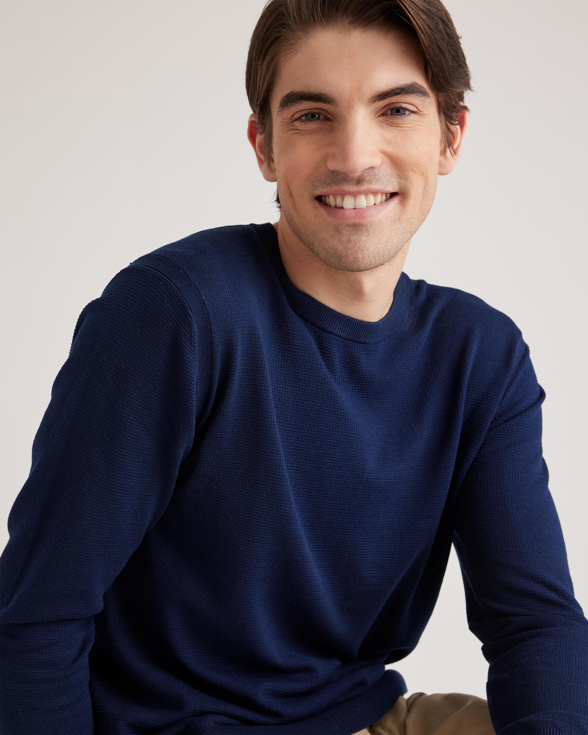Things are about to take an ultra-cozy turn: Meet our Organic Cotton-Silk Pique Crewneck Sweater. Knit from a luxe blend of mulberry silk and organic cotton, this style feels lightweight and buttery soft. Dress it up with a tailored trouser or keep it comfy and lowkey. | Quince | Men's -Silk Pique Crewneck Sweater in Navy, Size XL, Organic Cotton