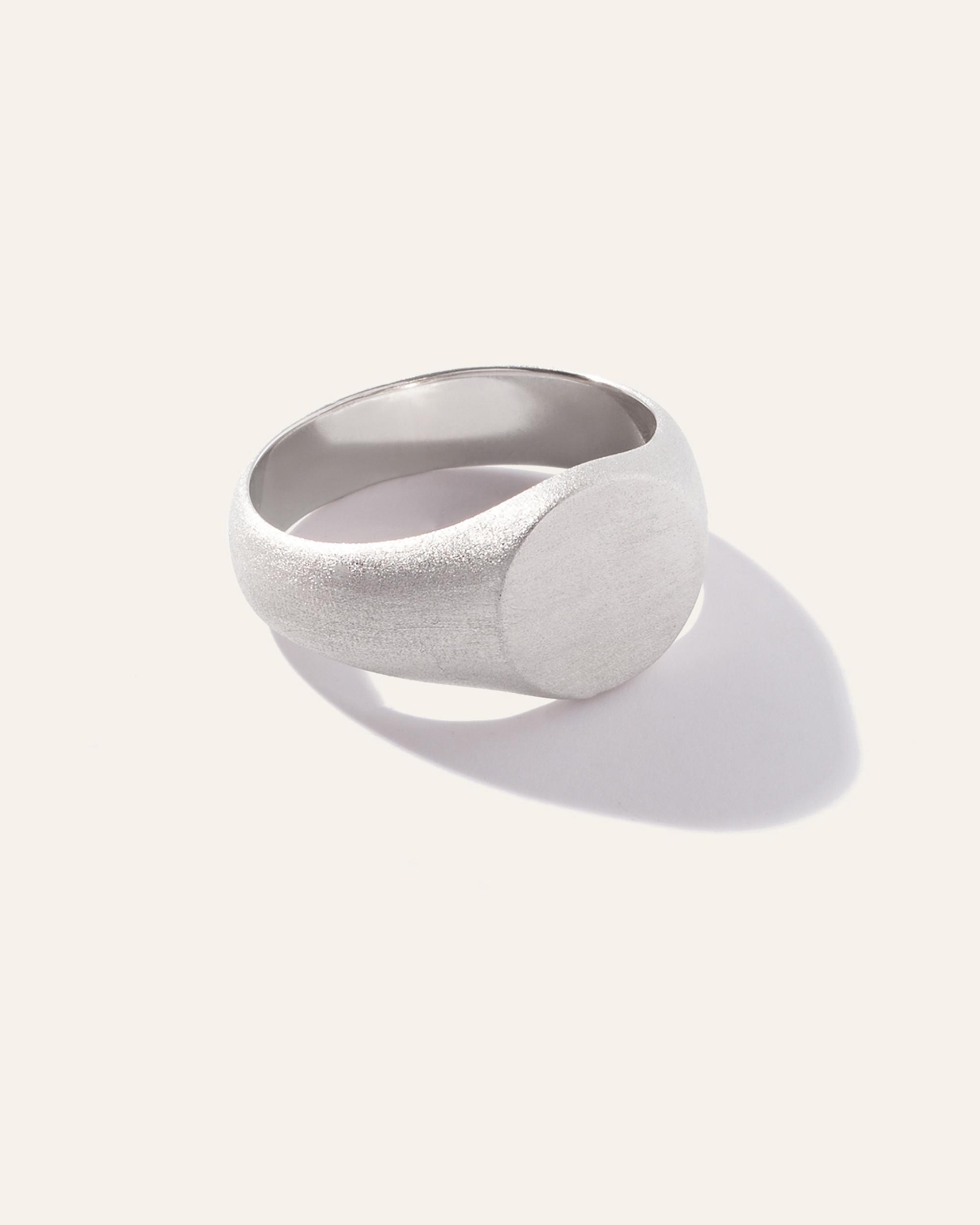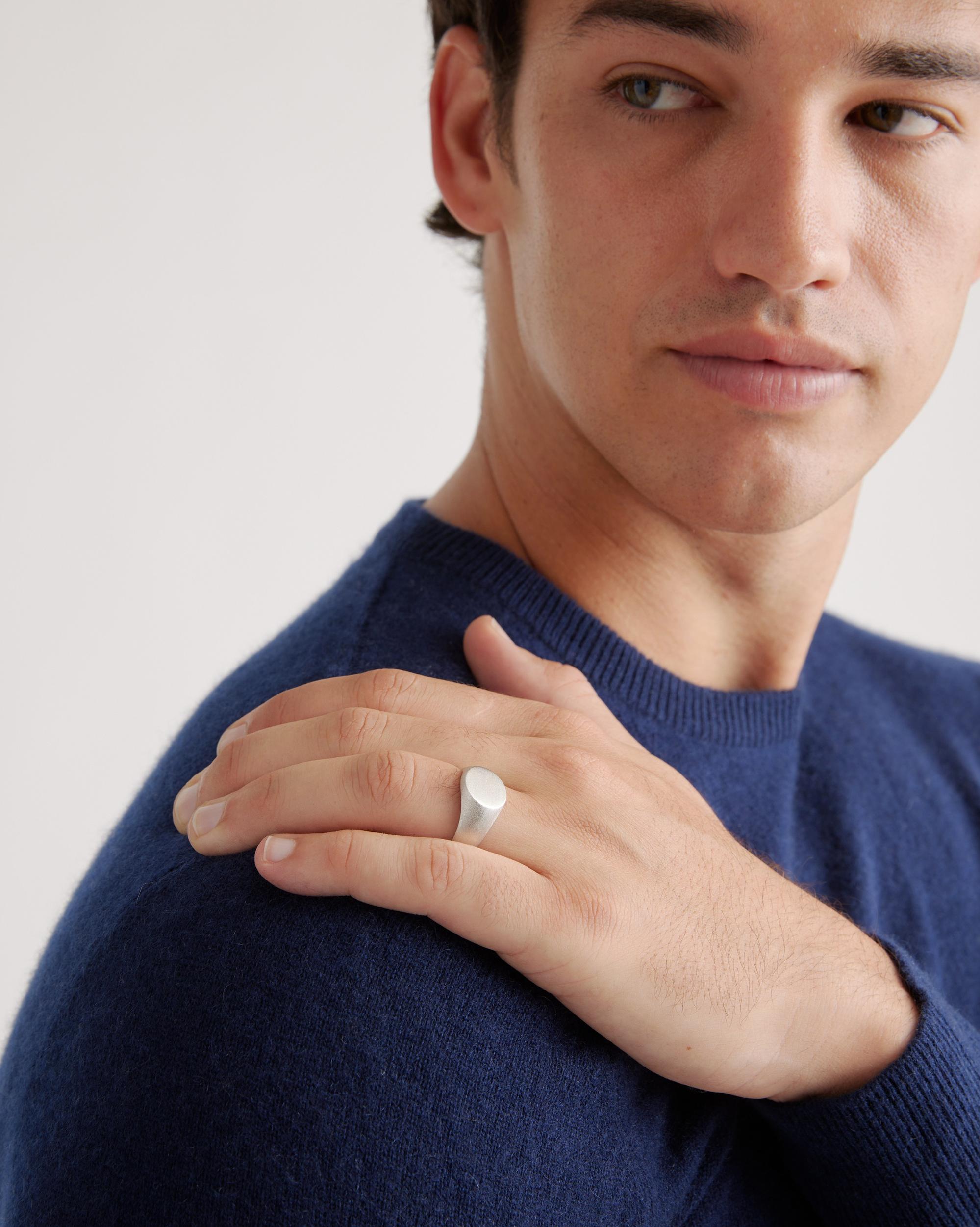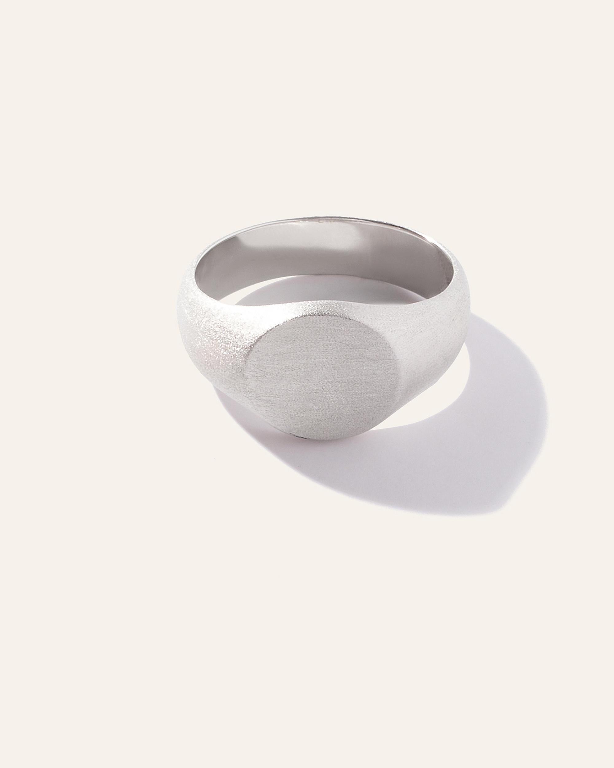 The Silver Bold Round Signet Ring is the perfect classic statement piece. The brushed finish adds flair for a unique look. Style this contemporary ring on its own or mix and match with other pieces. | Quince | Men's Silver Bold Round Signet Ring in Sterling Silver, Size 9.5